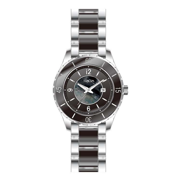 SAGA世家手表 精钢间陶瓷手表带女表