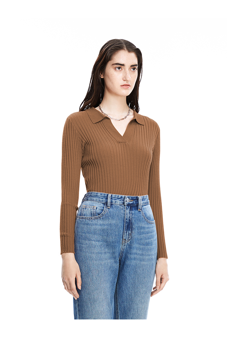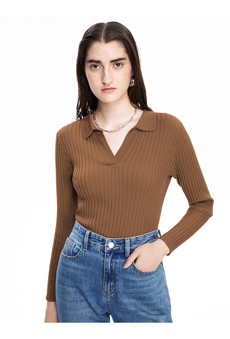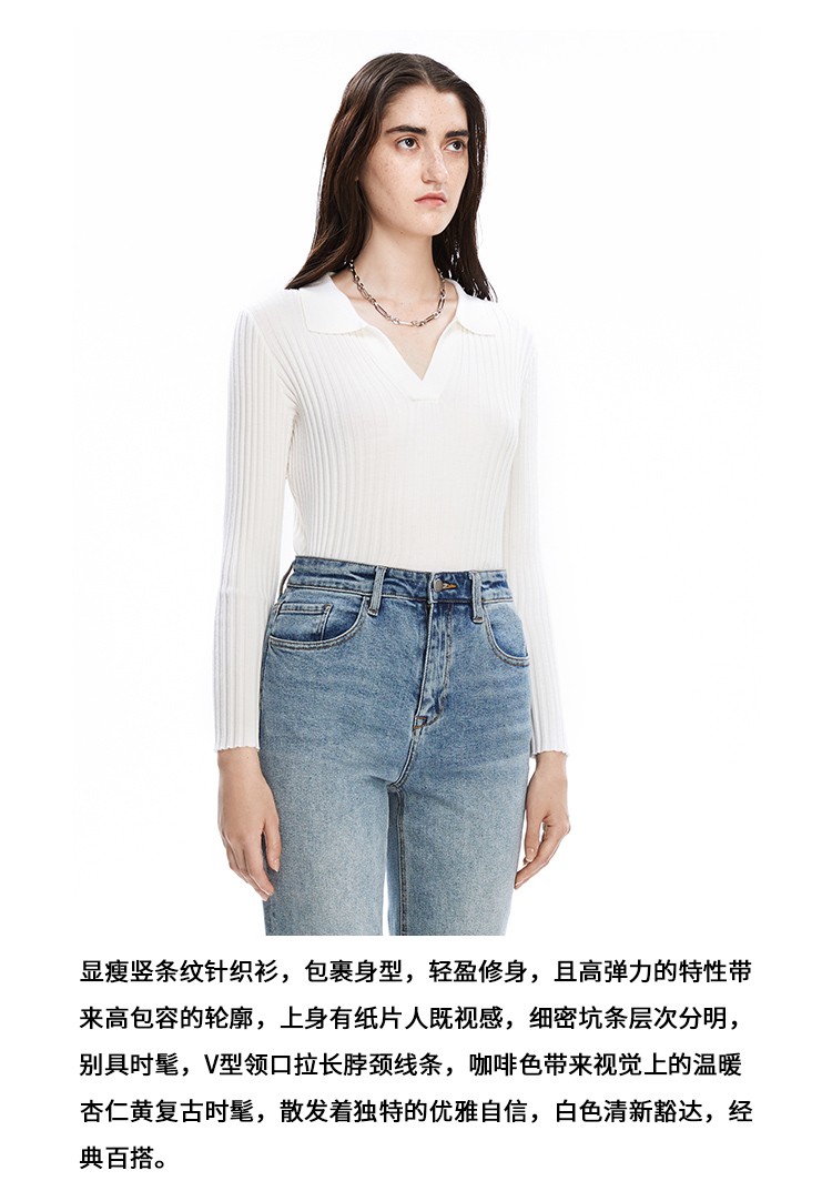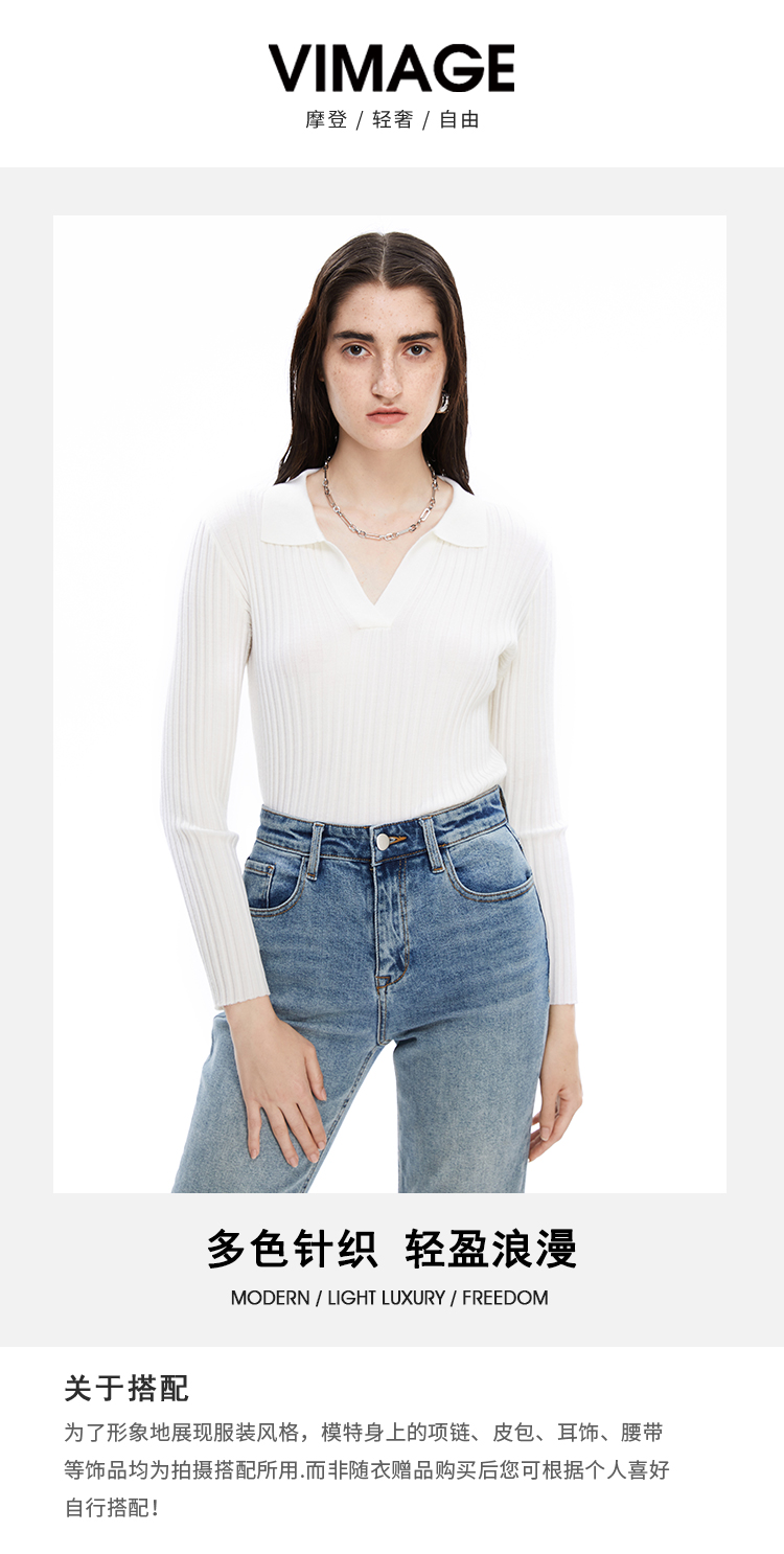 VIMAGE纬漫纪秋季新款款时尚百搭纯色V领针织衫女上衣套头V1601214
