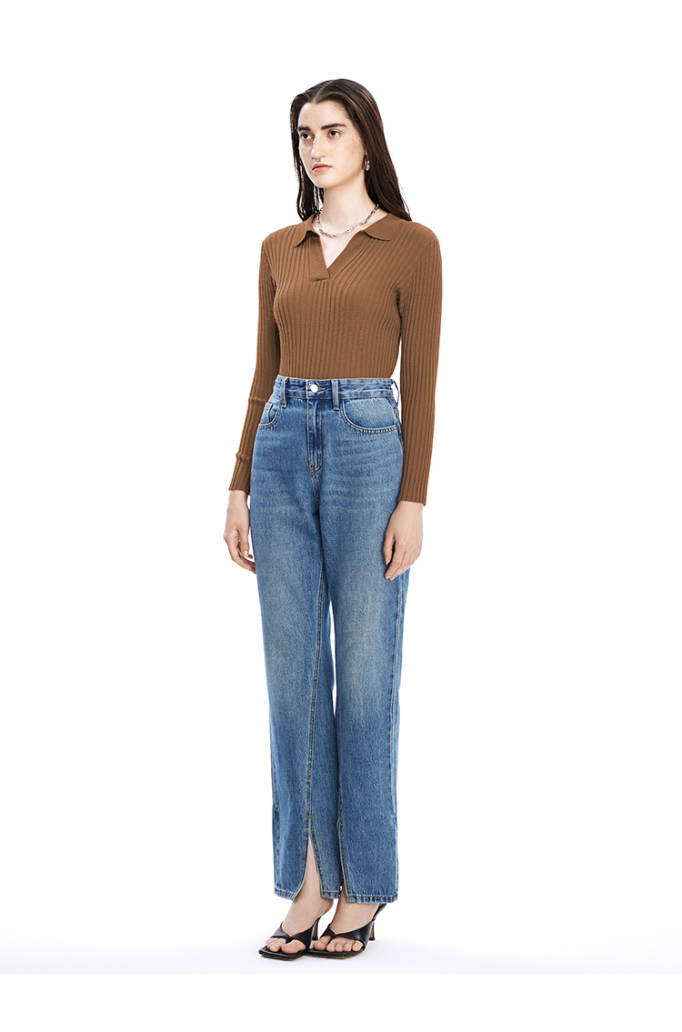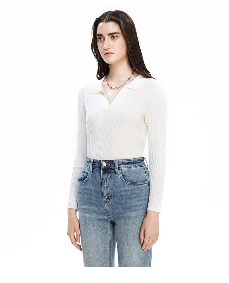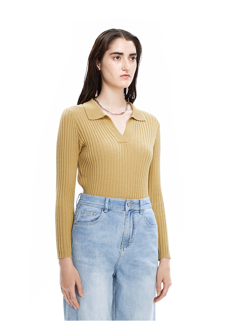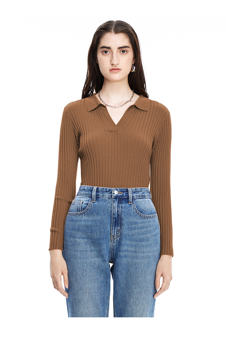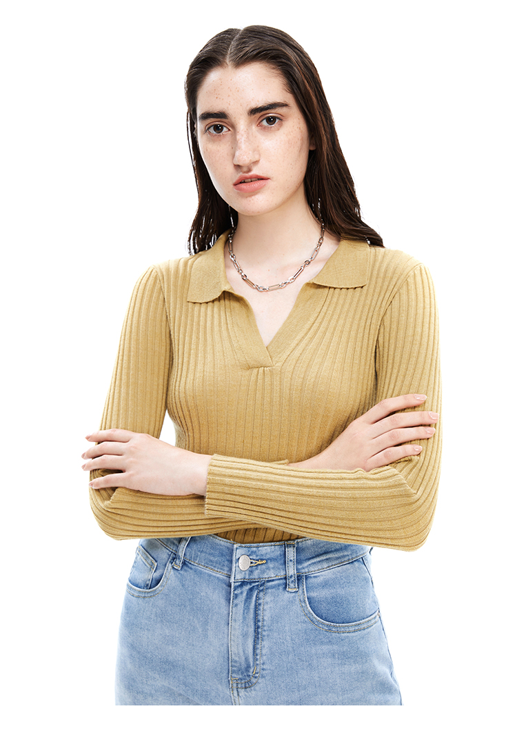 VIMAGE纬漫纪秋季新款款时尚百搭纯色V领针织衫女上衣套头V1601214