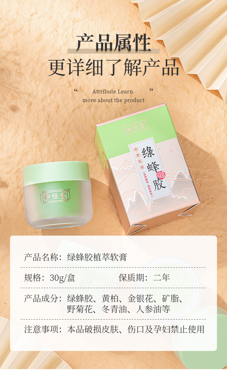 【买2送1买3送2】御恒堂绿蜂胶植萃软膏巴西绿蜂胶提取物天然草本清肤方抹一抹皮肤好30g/盒