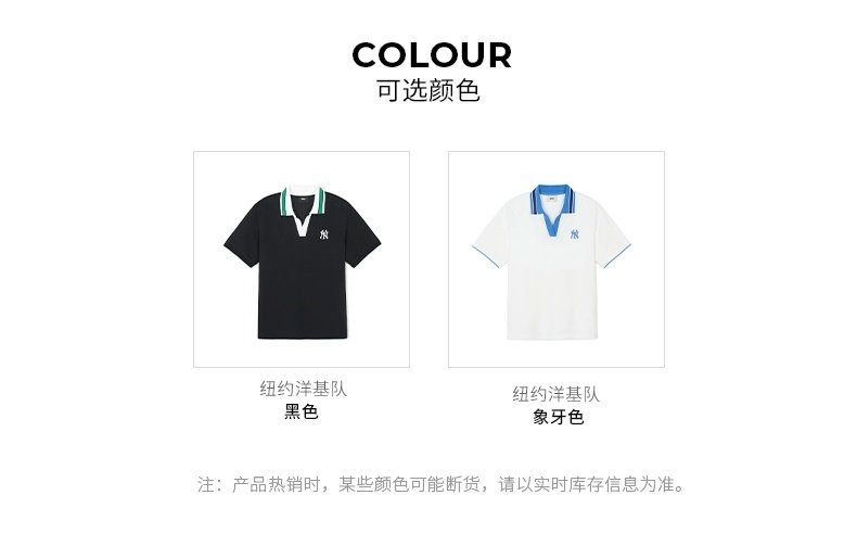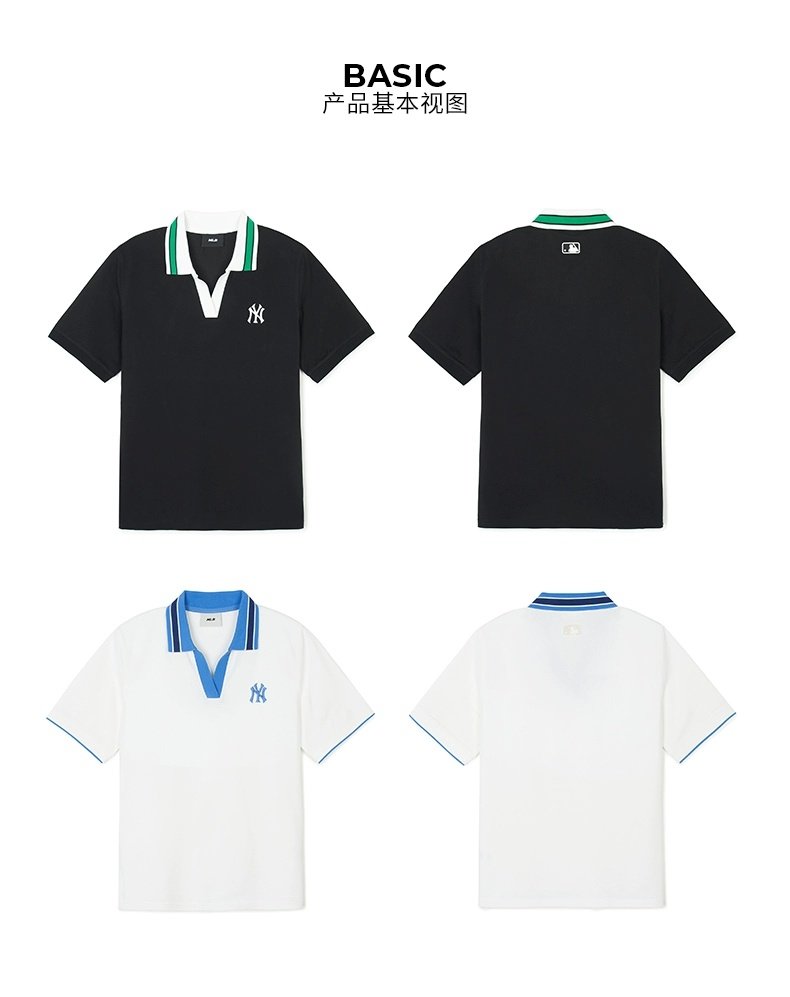MLB男女同款立领撞色小标基础款T恤3FPQB0343【无货退款】