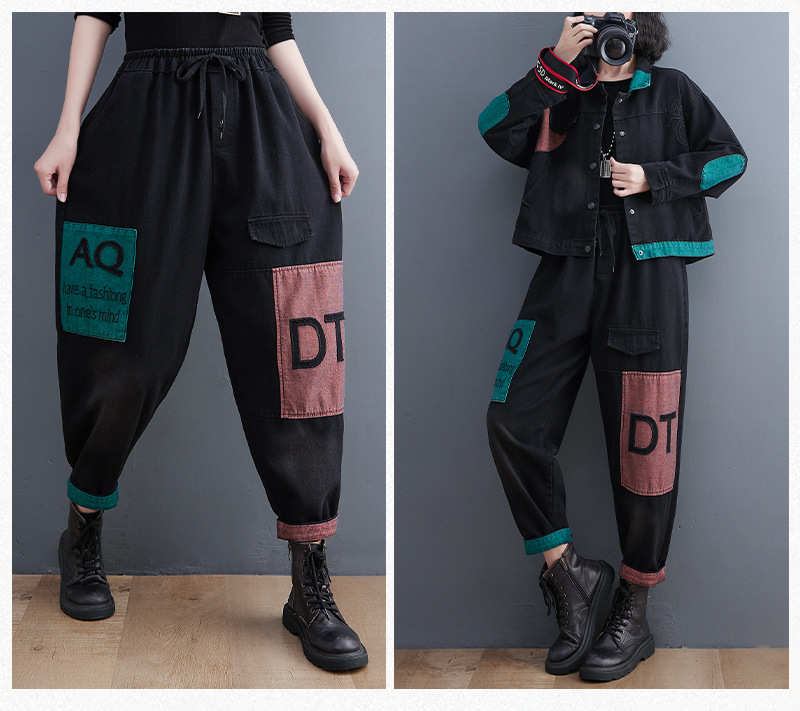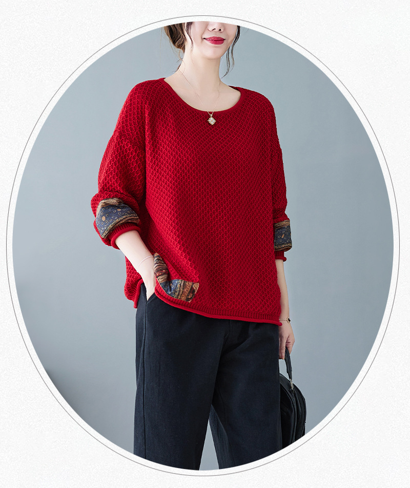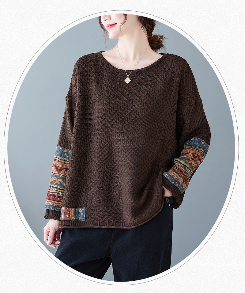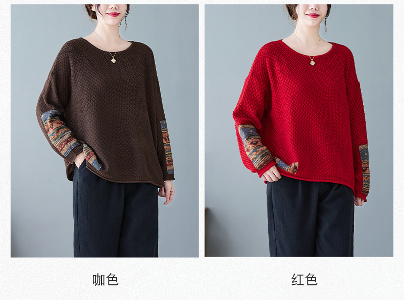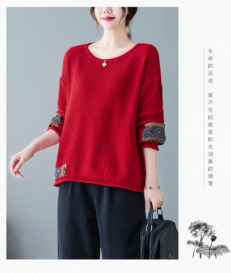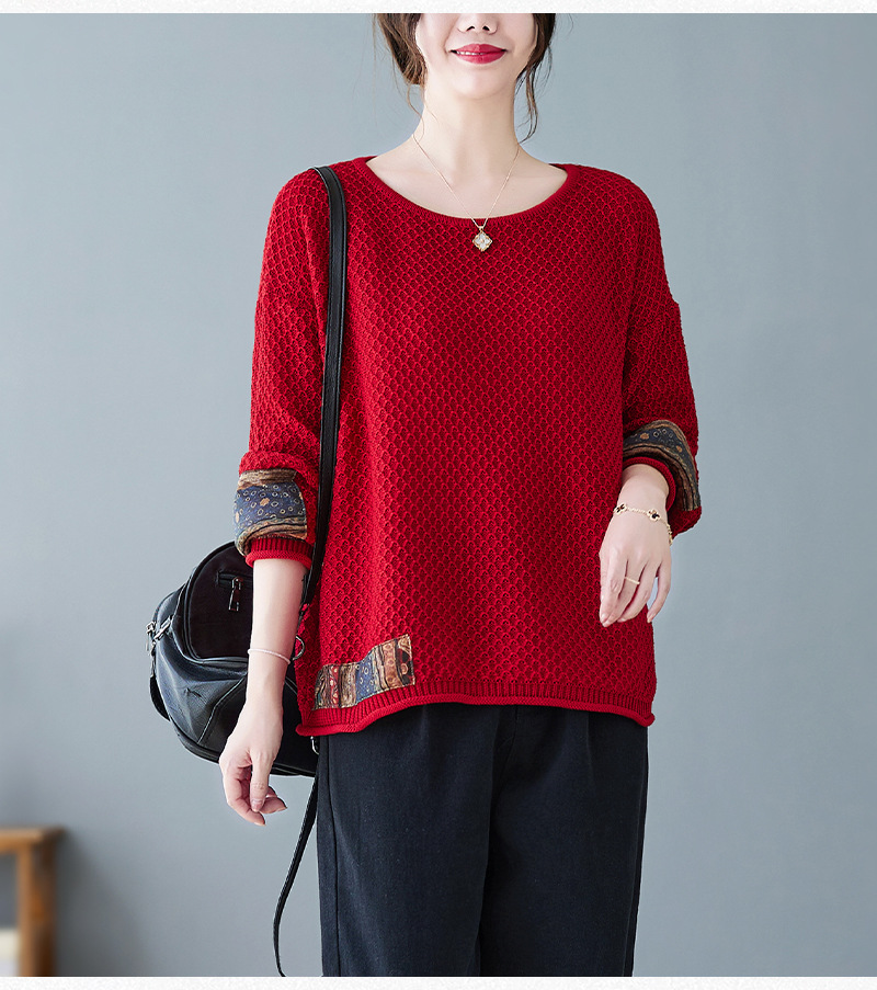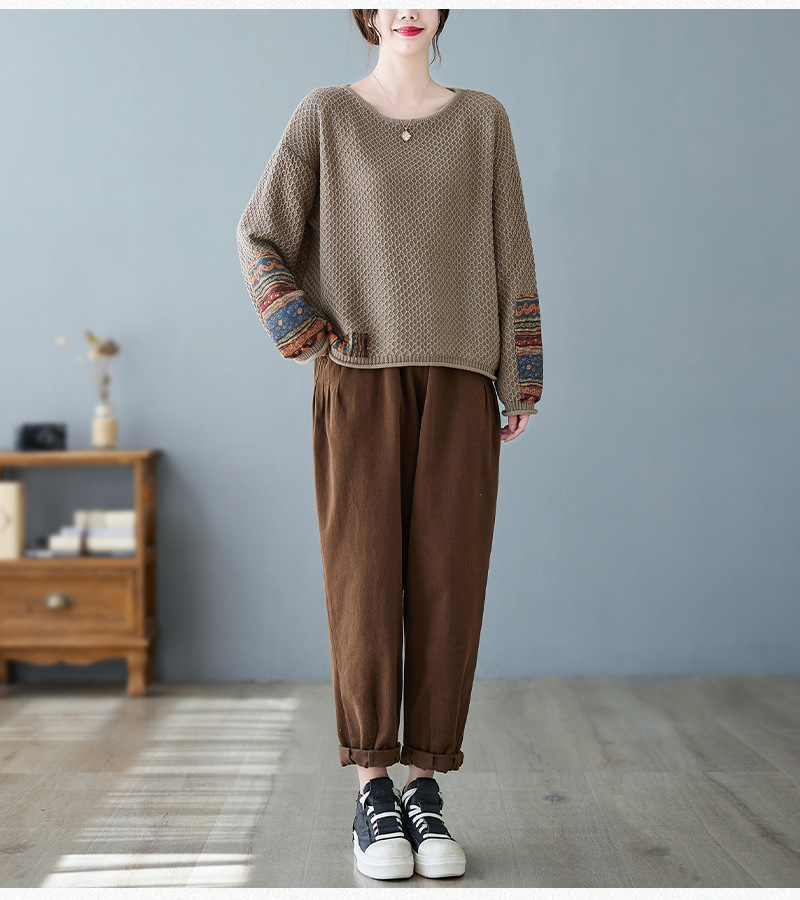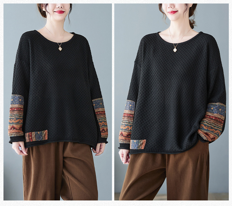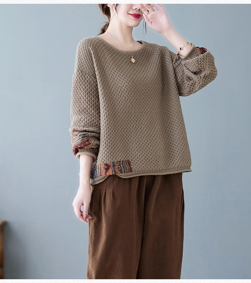 GYH 8528复古民族风贴布棉线针织毛衣圆领套头