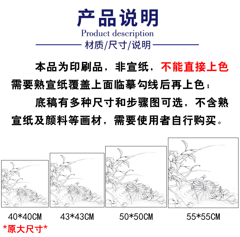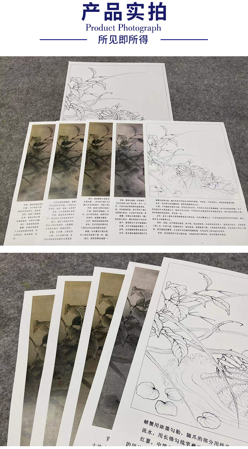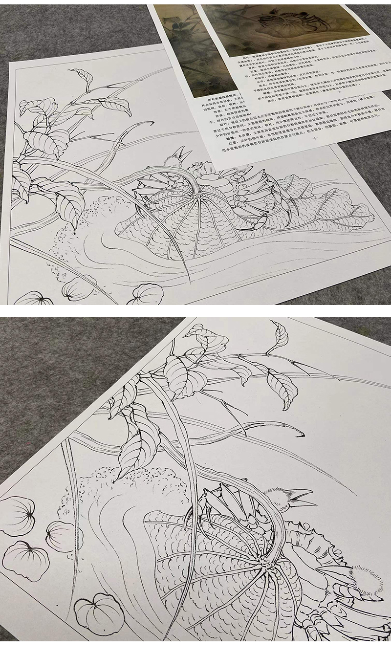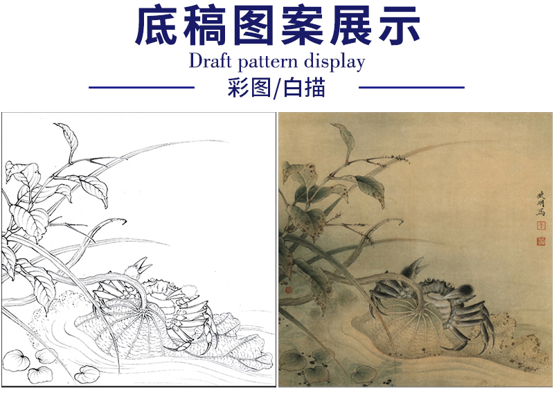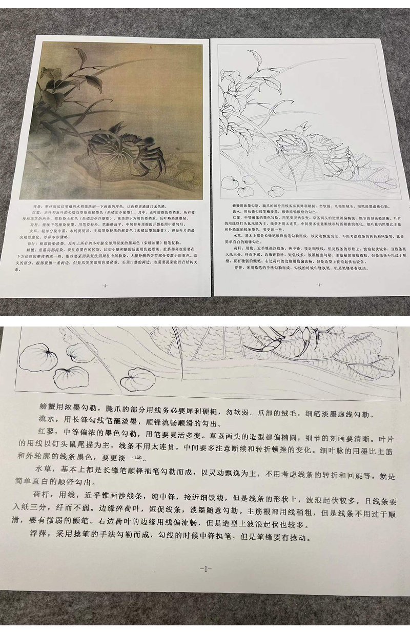 【有步骤、大彩图】李晓明工笔画白描底稿斗方小品《临宋荷蟹图》荷花螃蟹初学者临摹花鸟线稿KL03