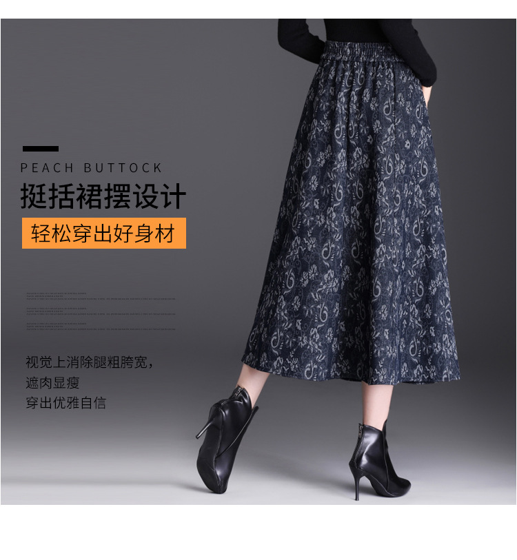 QYM 3510-Y毛呢半身裙厚款高腰口袋印花裙中长款气质优雅A字裙 商品图4