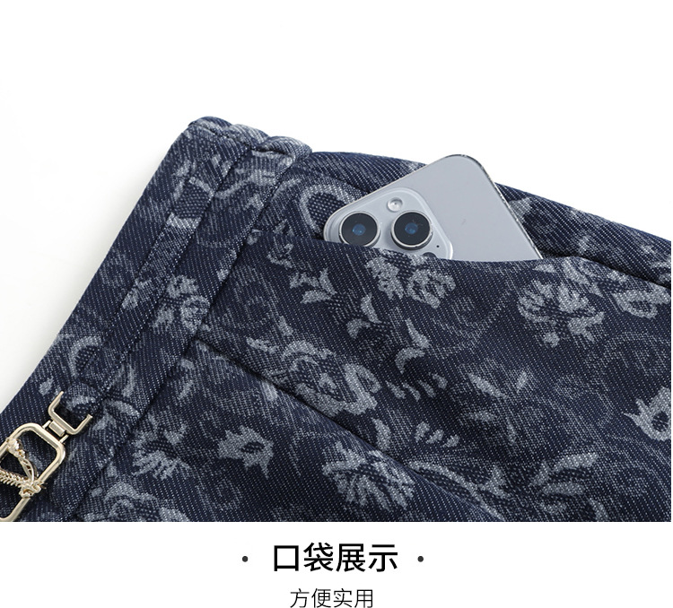 QYM 3510-Y毛呢半身裙厚款高腰口袋印花裙中长款气质优雅A字裙 商品图3