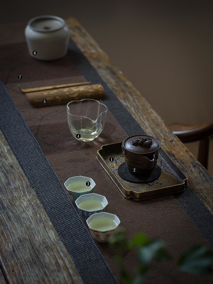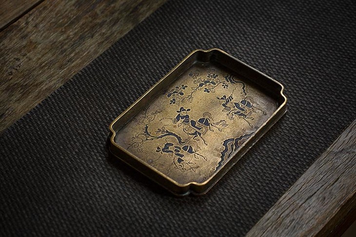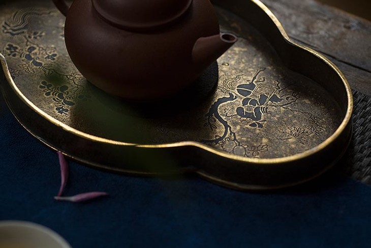 能够提升茶席整体审美格调的仿古铜漆绘茶盘。