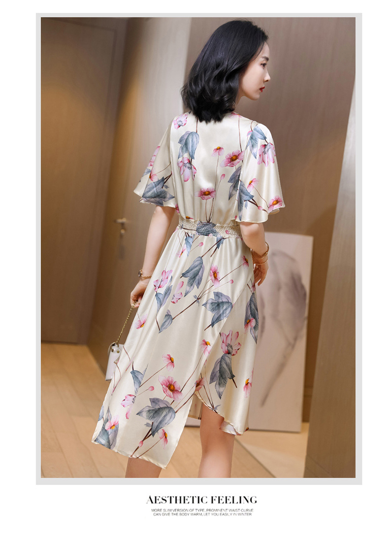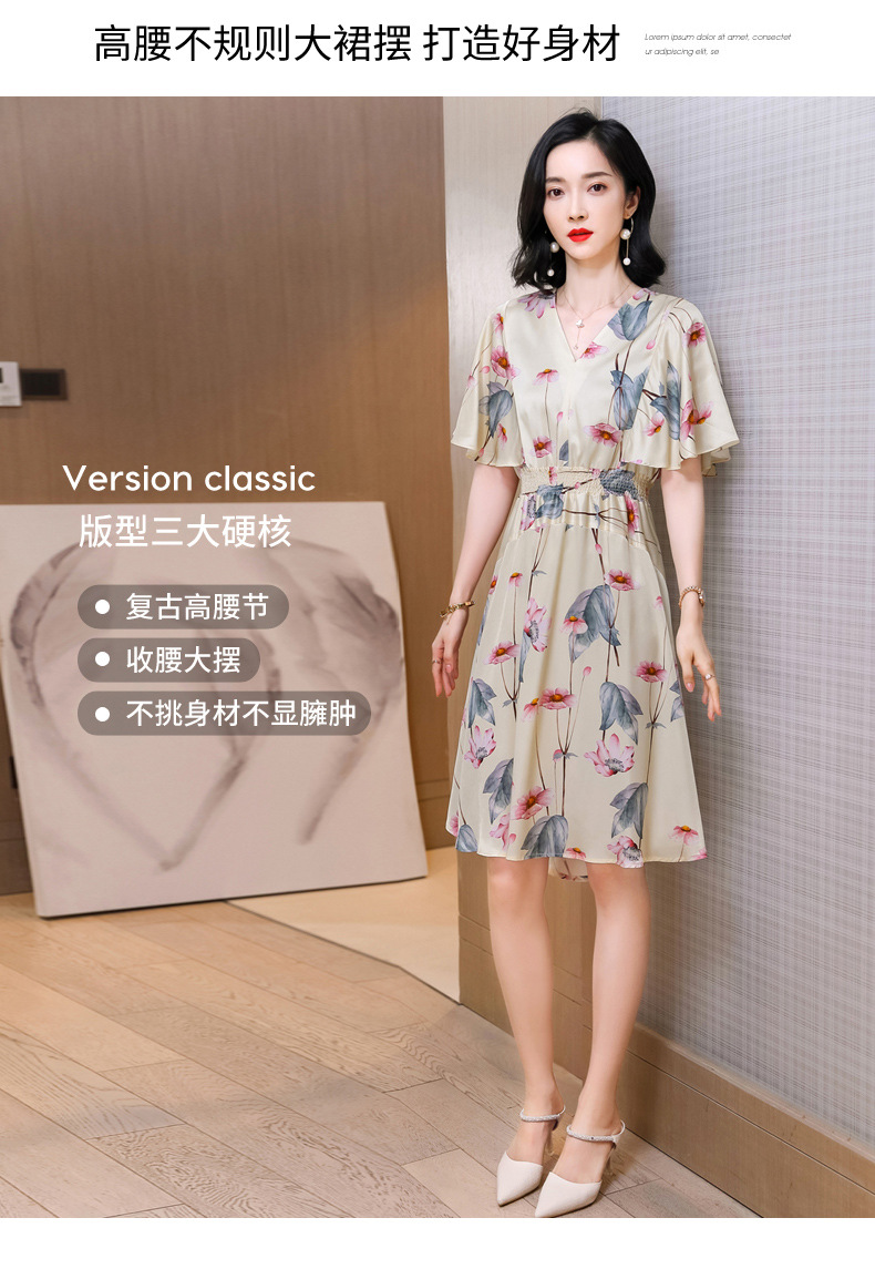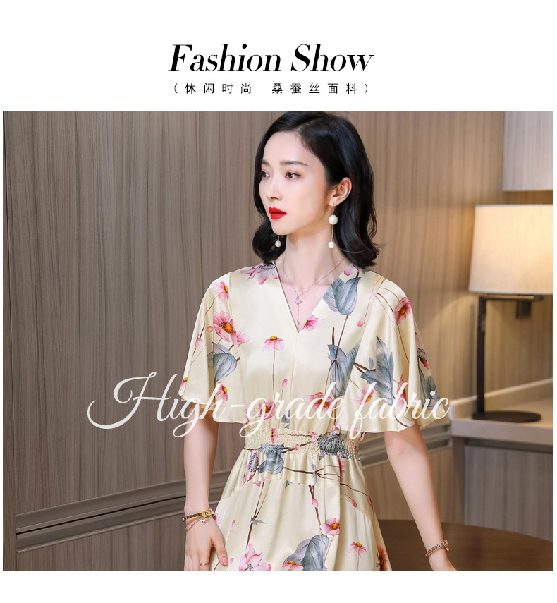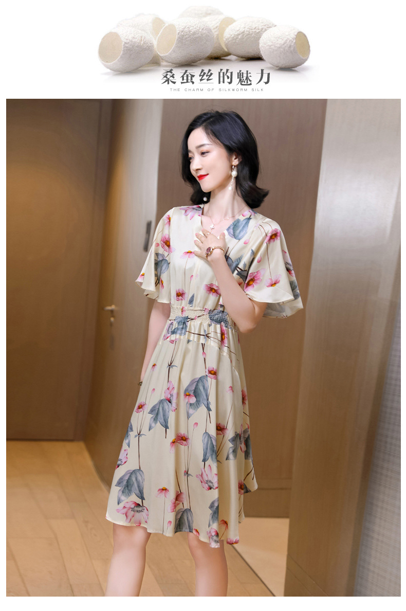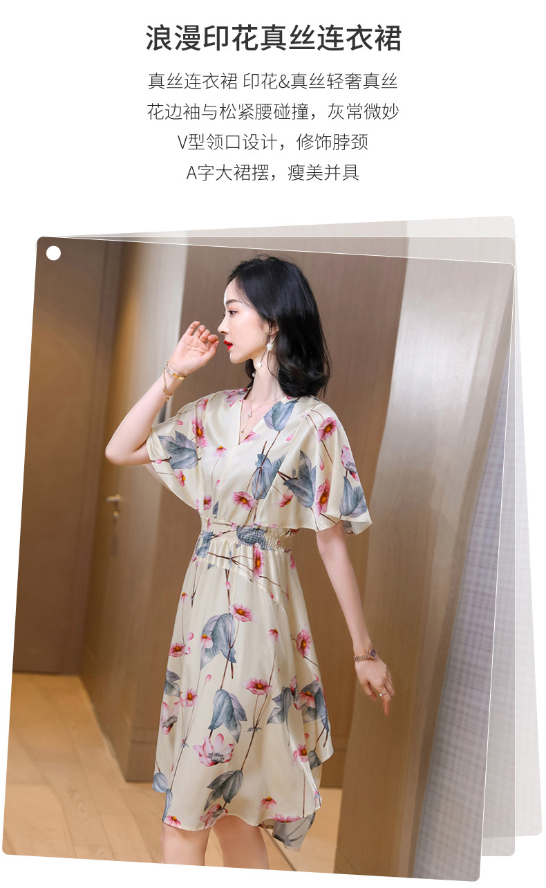 上海旗袍厂ASE-2305 V领印花知性真丝连衣裙桑蚕丝