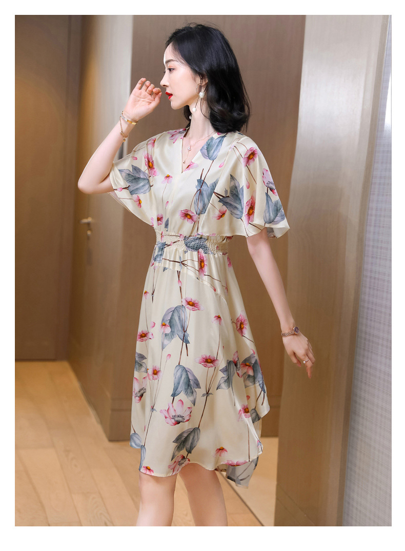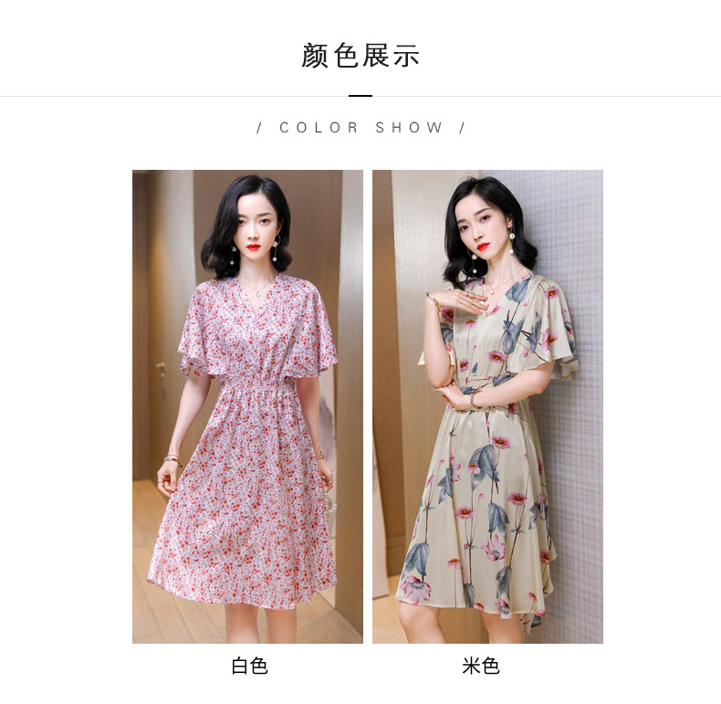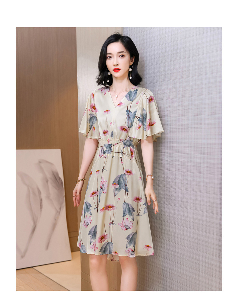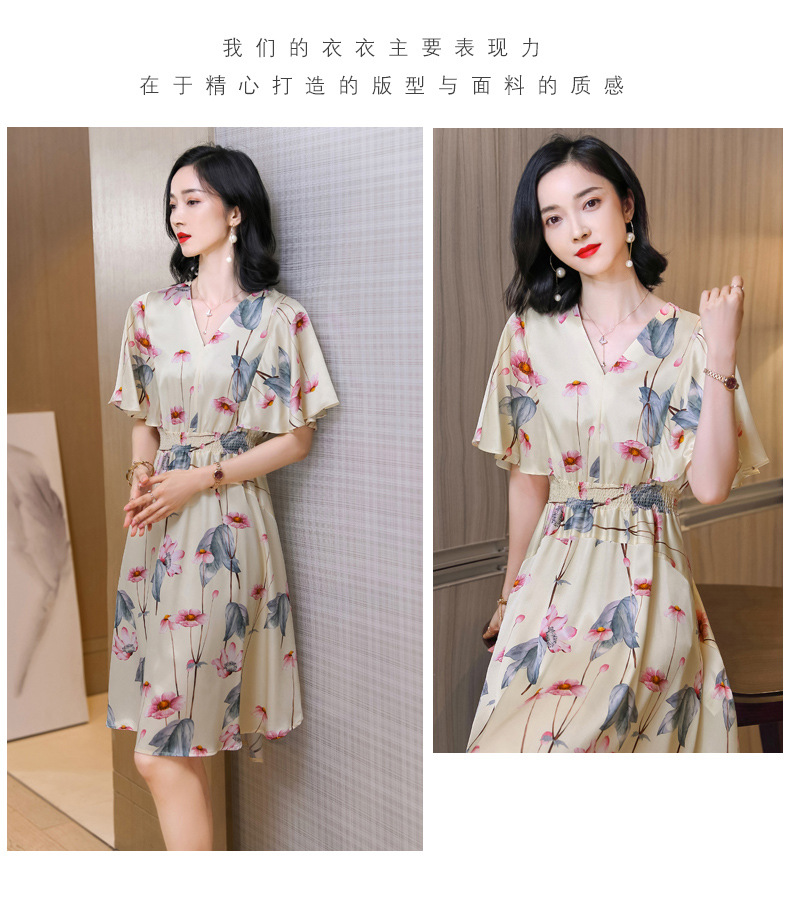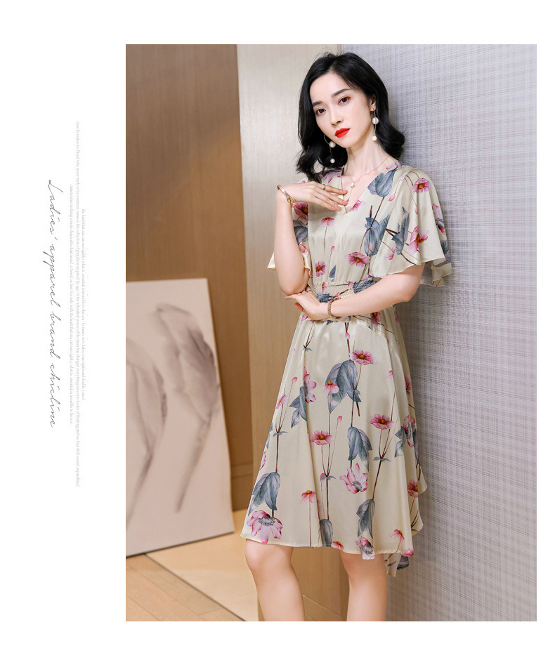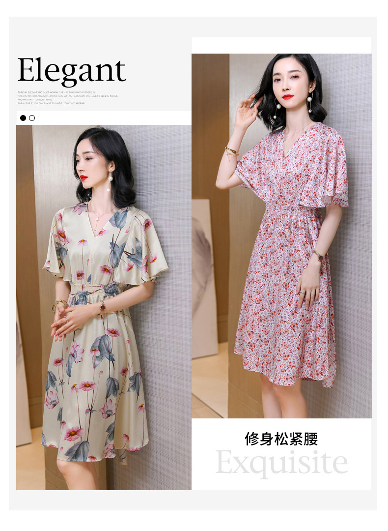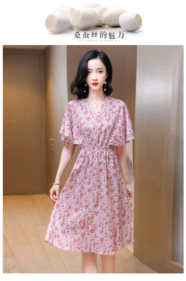 上海旗袍厂ASE-2305 V领印花知性真丝连衣裙桑蚕丝