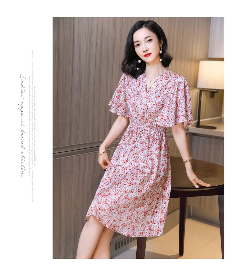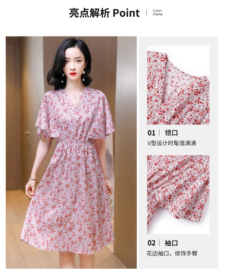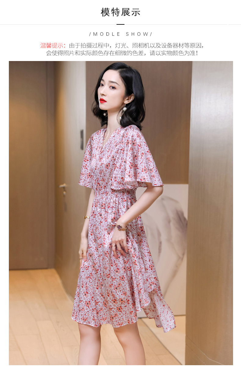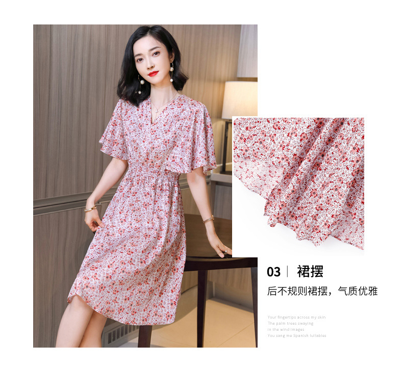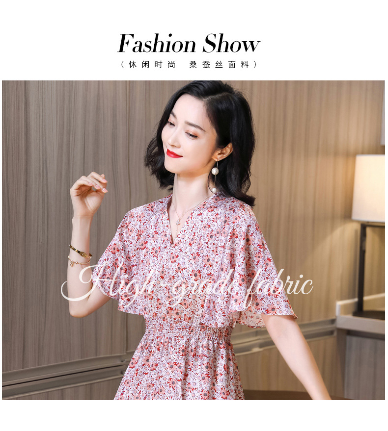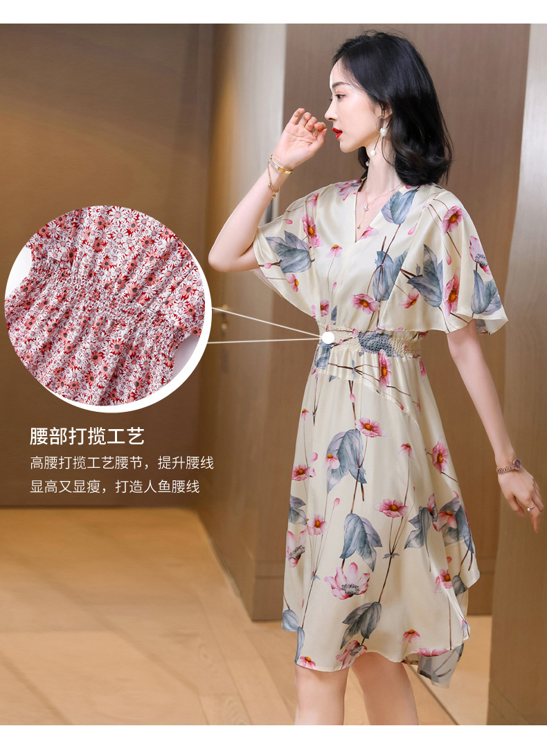 上海旗袍厂ASE-2305 V领印花知性真丝连衣裙桑蚕丝
