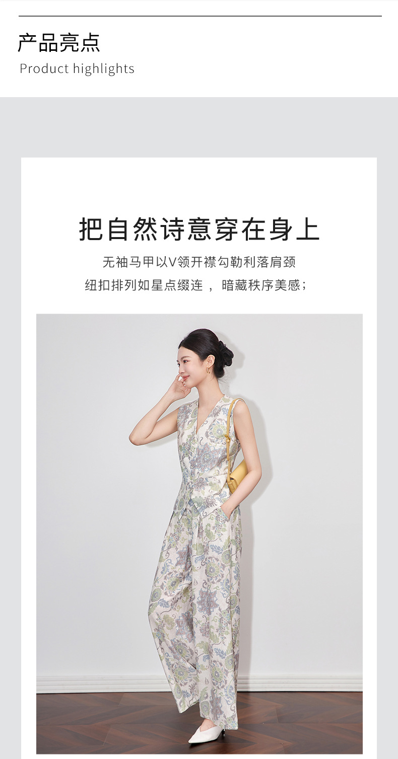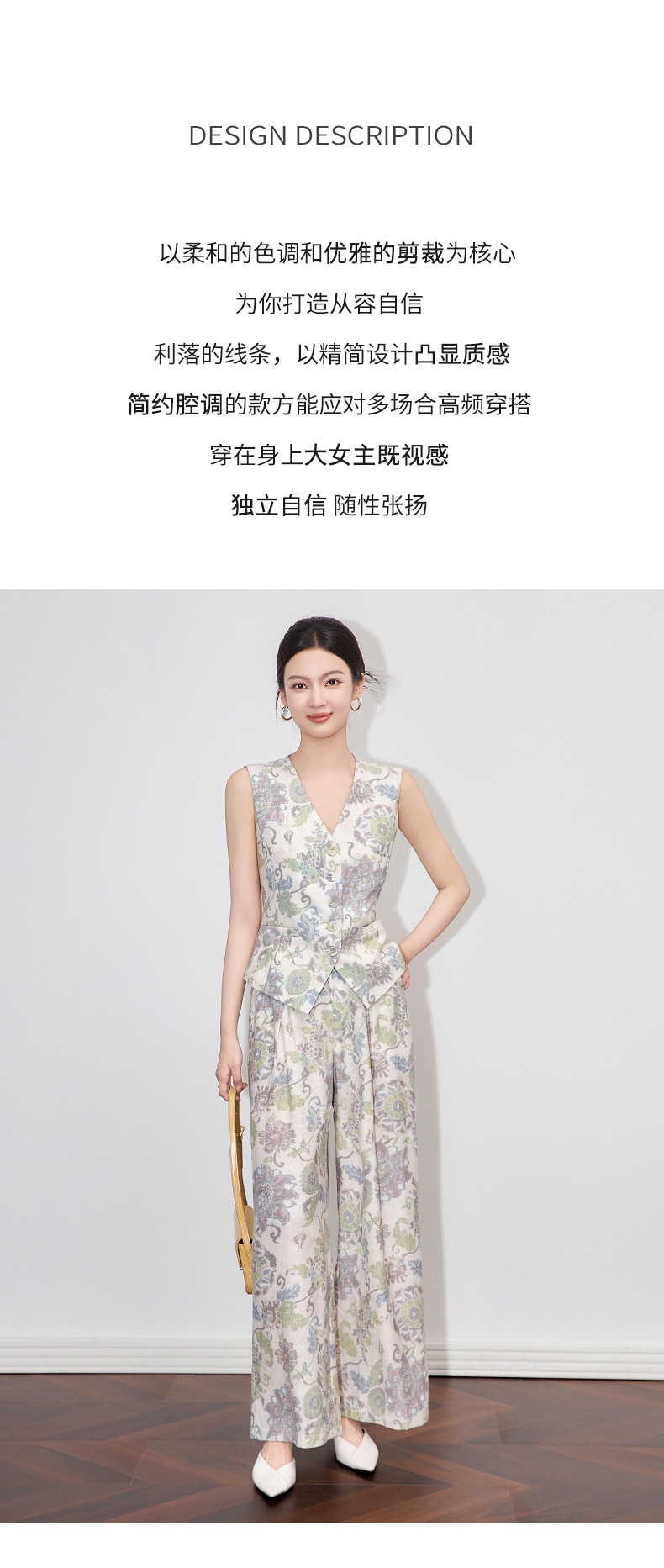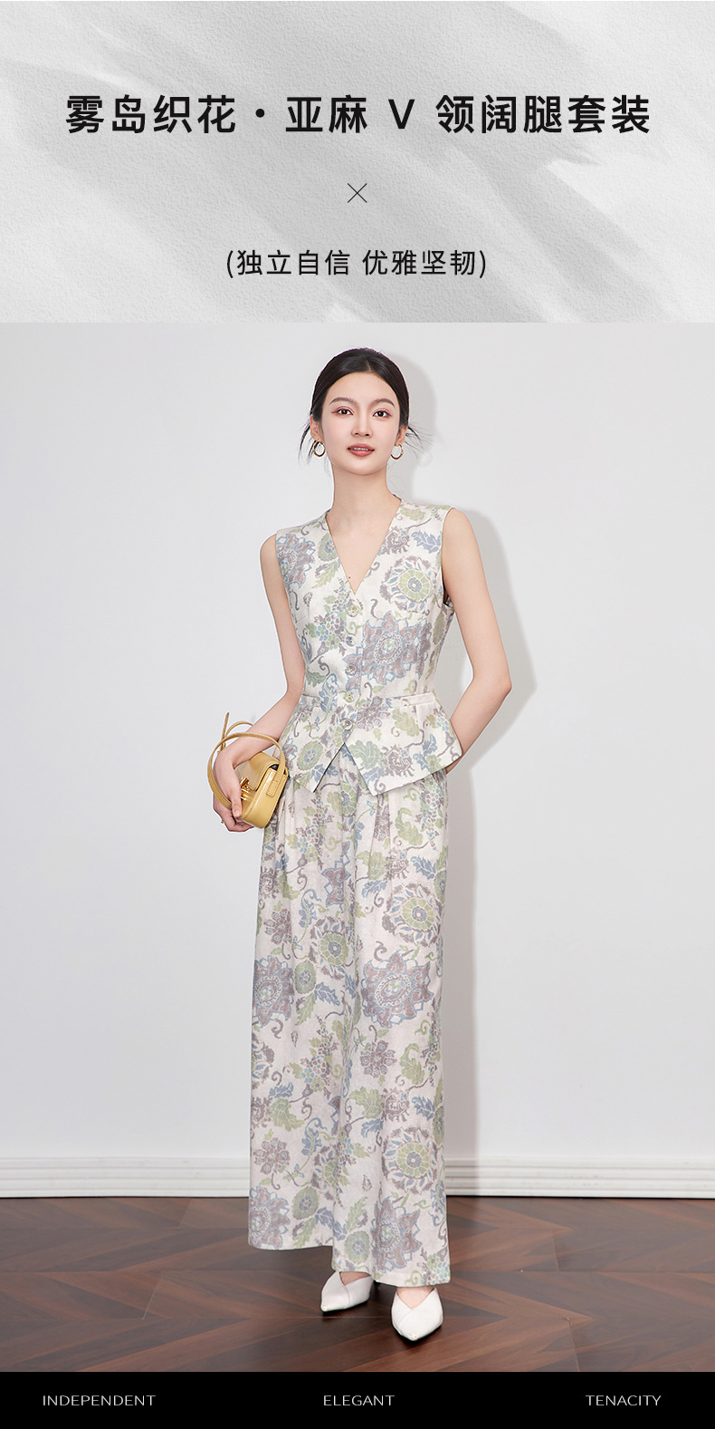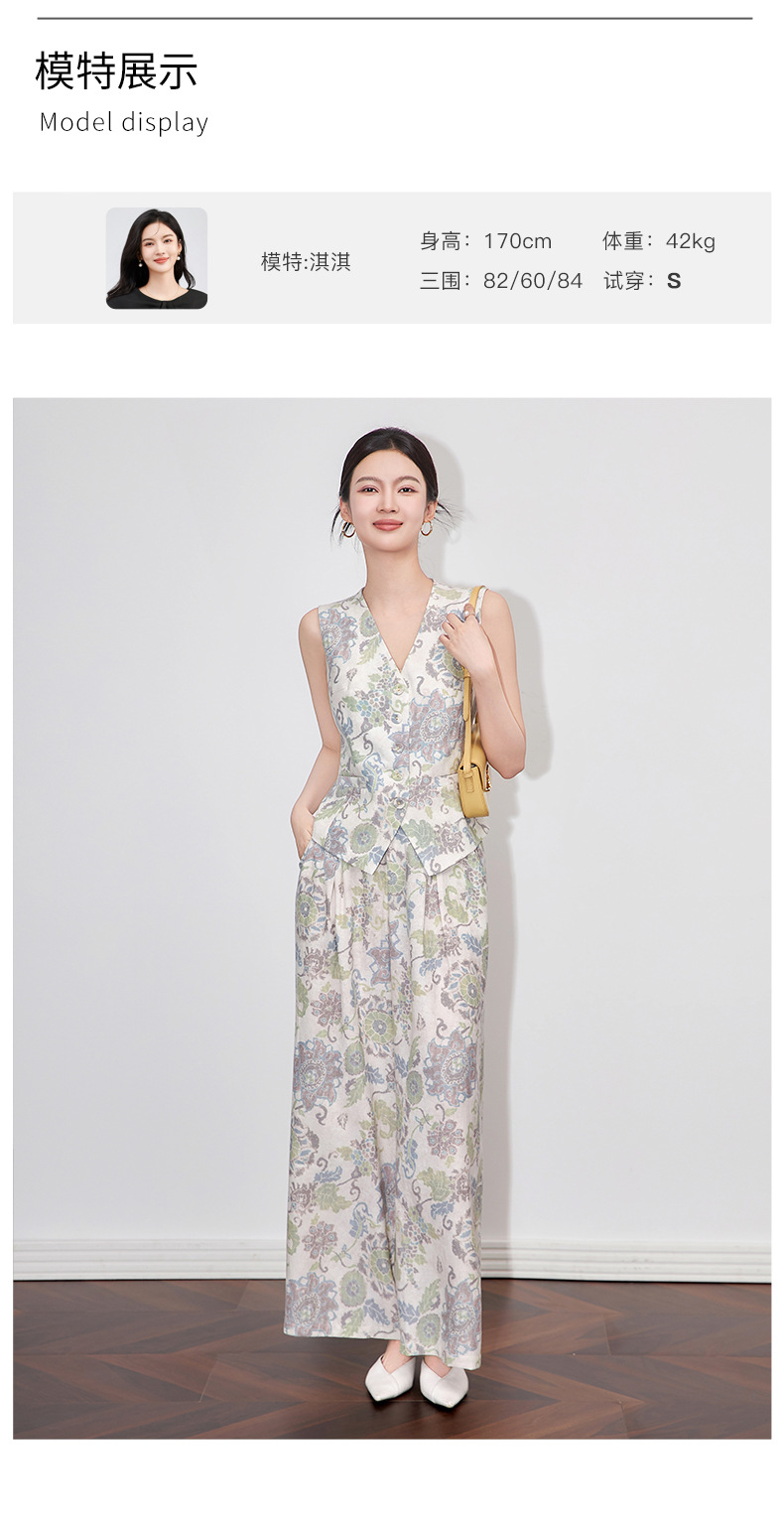 「高货wl」全新升级【铂金会员395/天猫529/差价134】(99634)洛诗琳夏季老钱风印花天丝麻马甲高腰通勤阔腿裤两件套女