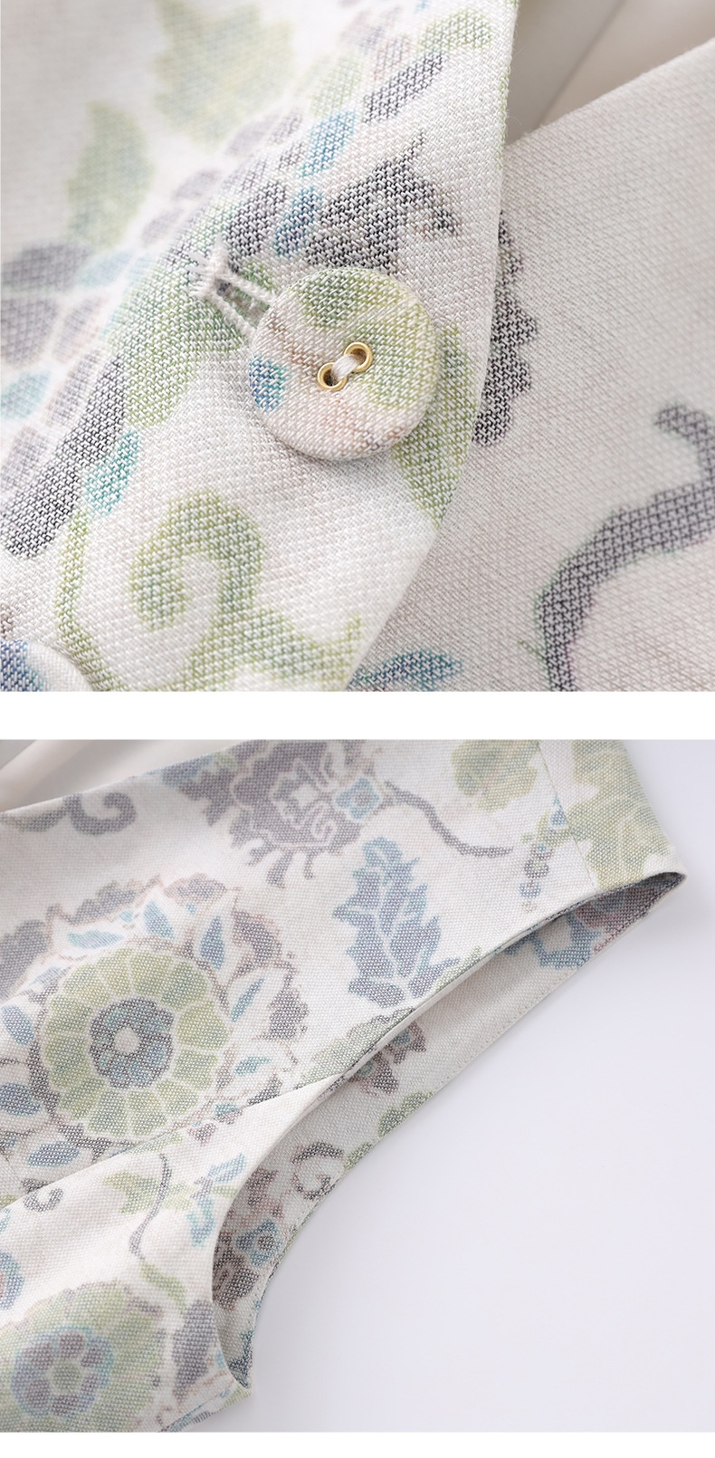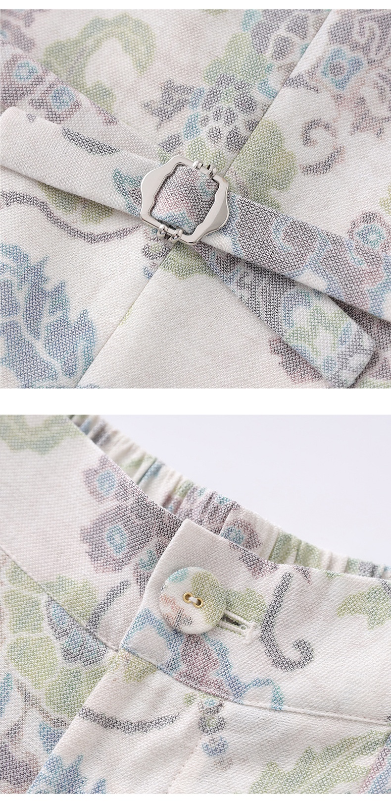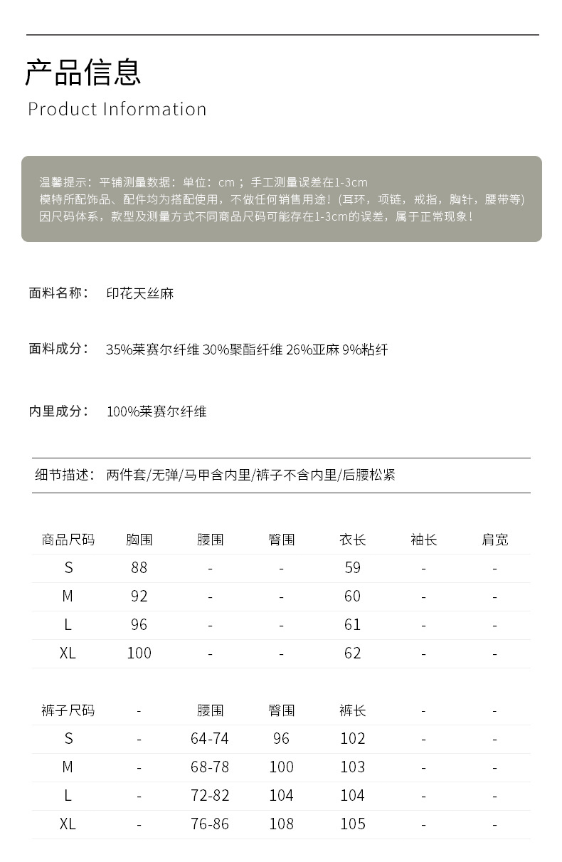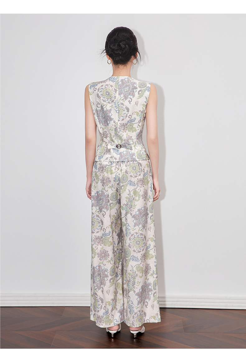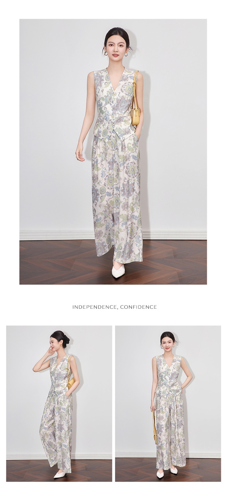 「高货wl」全新升级【铂金会员395/天猫529/差价134】(99634)洛诗琳夏季老钱风印花天丝麻马甲高腰通勤阔腿裤两件套女