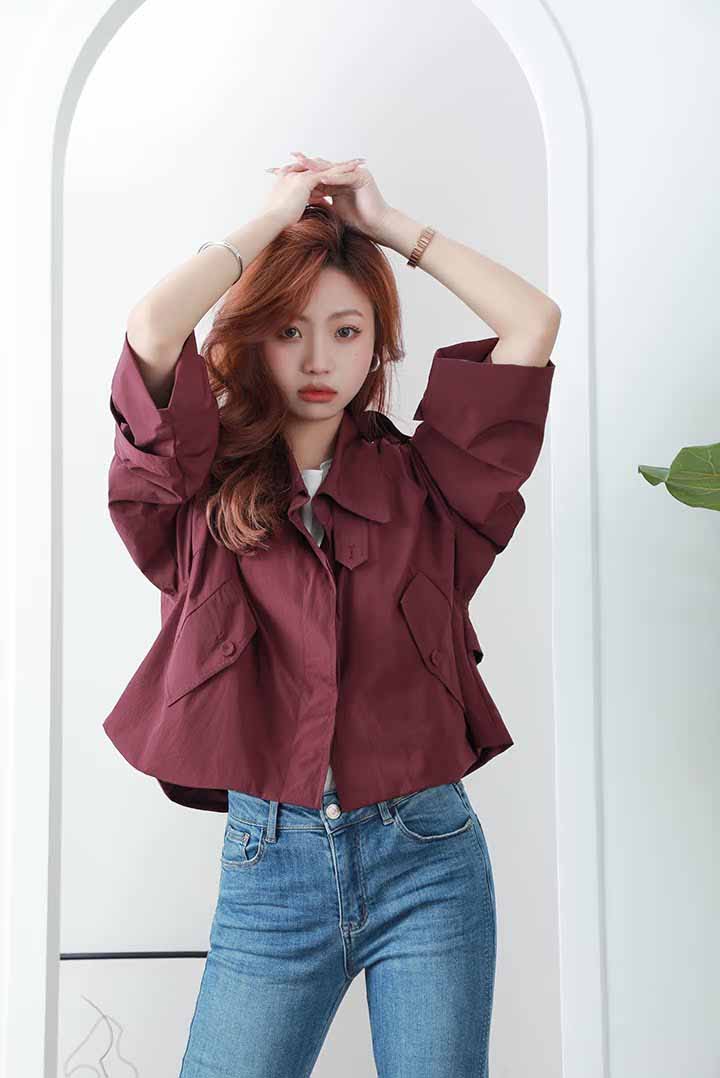 顺丰包邮洛诗琳34230显高显瘦翻领气质百搭短款风衣20211123