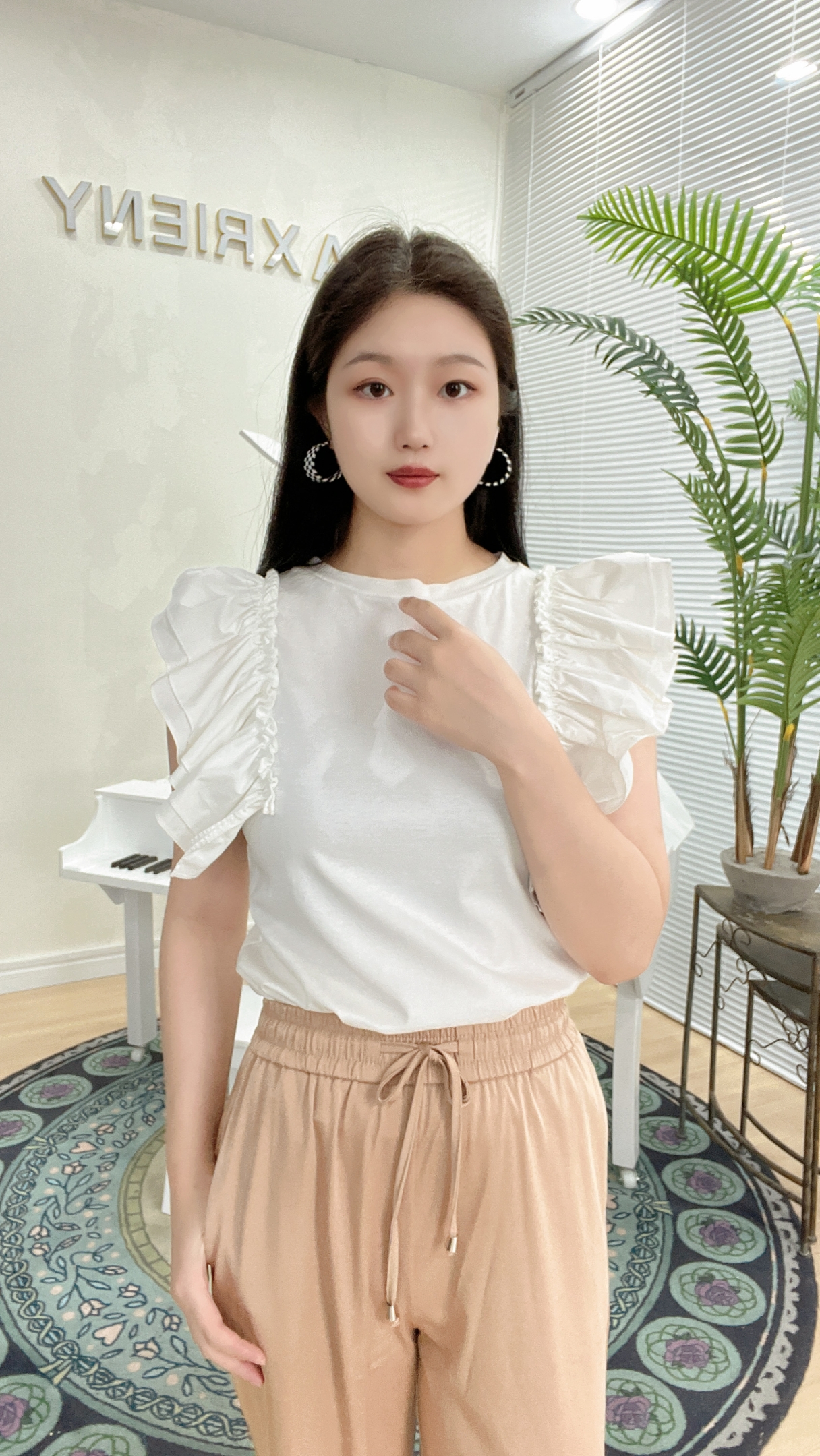 臣禾荷叶边无袖衬衣K212050806