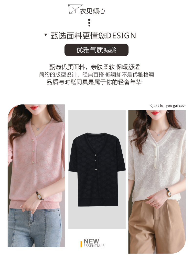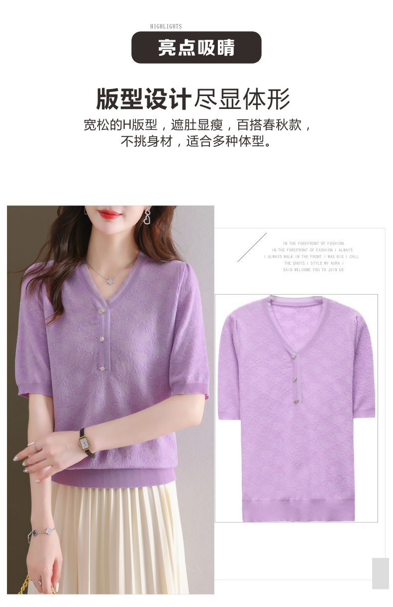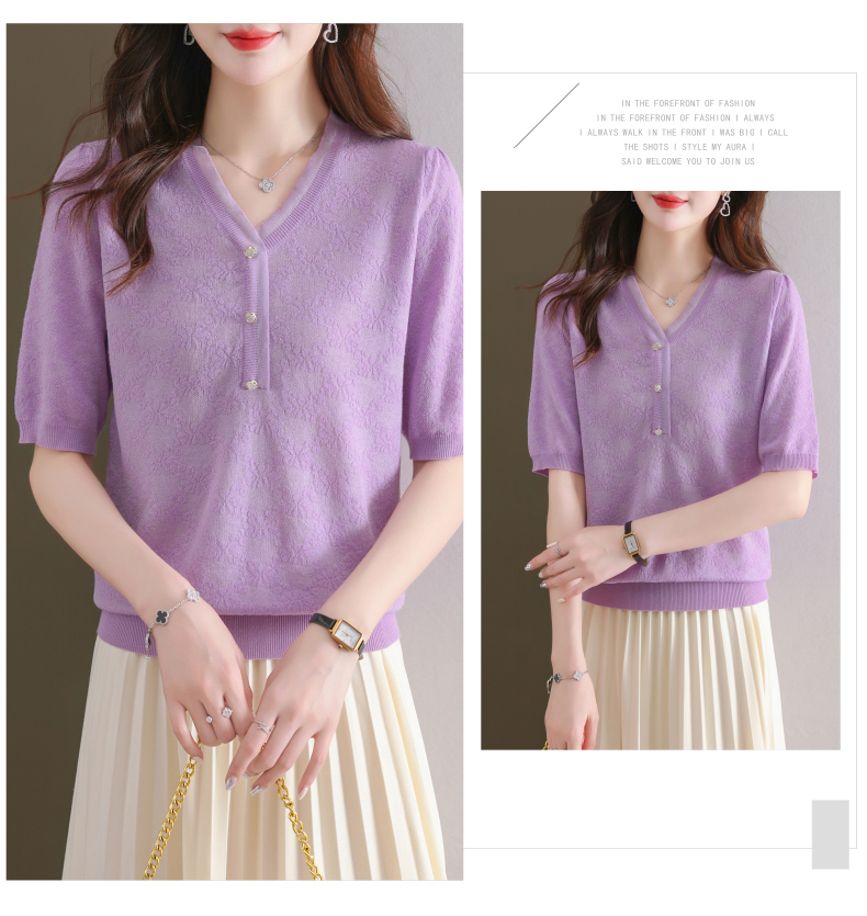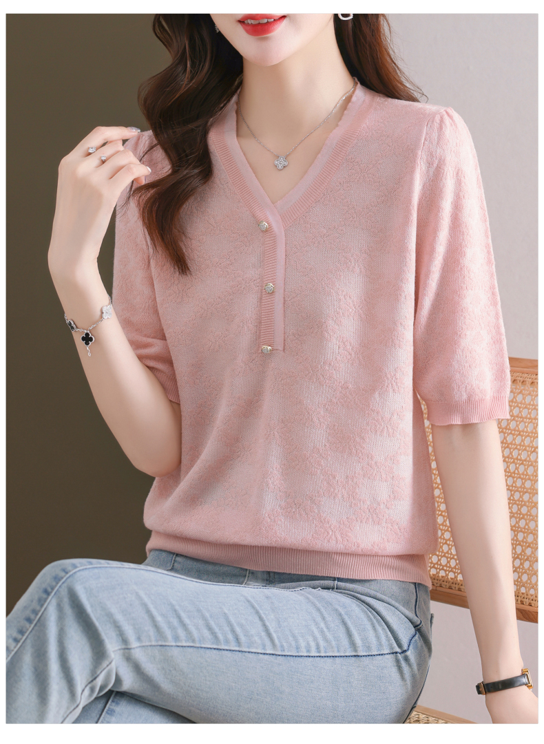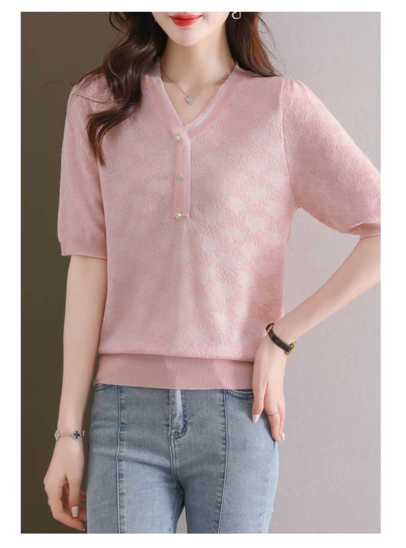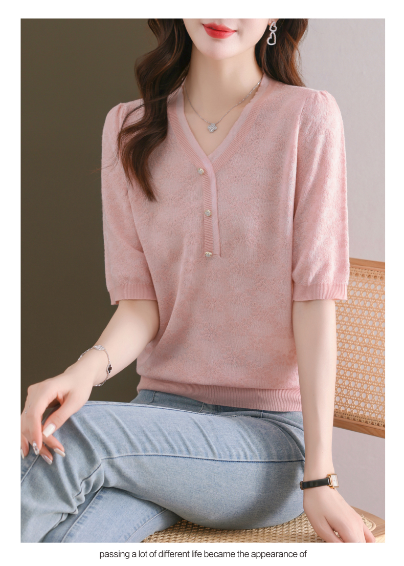 年轻妈妈夏装含桑蚕丝薄款针织衫蕾丝上衣CC-23073