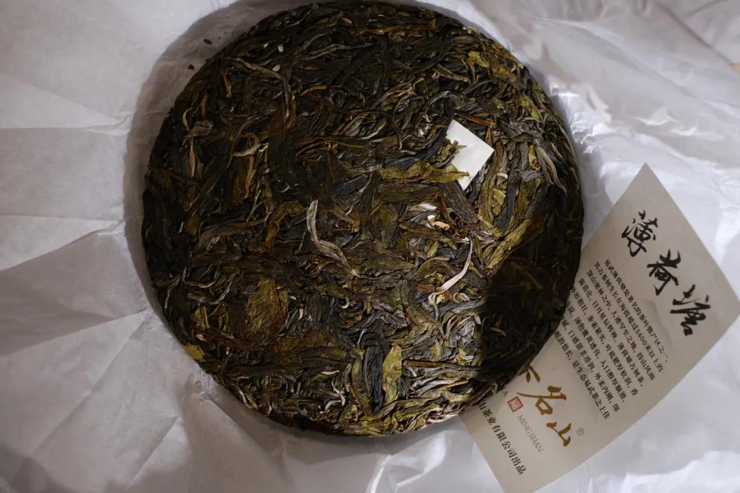 天下名山薄荷塘茶饼饼型饱满周正,饼面黄绿长梗,条索粗壮,银白色芽头显著。隔着棉纸就能闻到馥郁的茶果香、甜香,清心怡人。