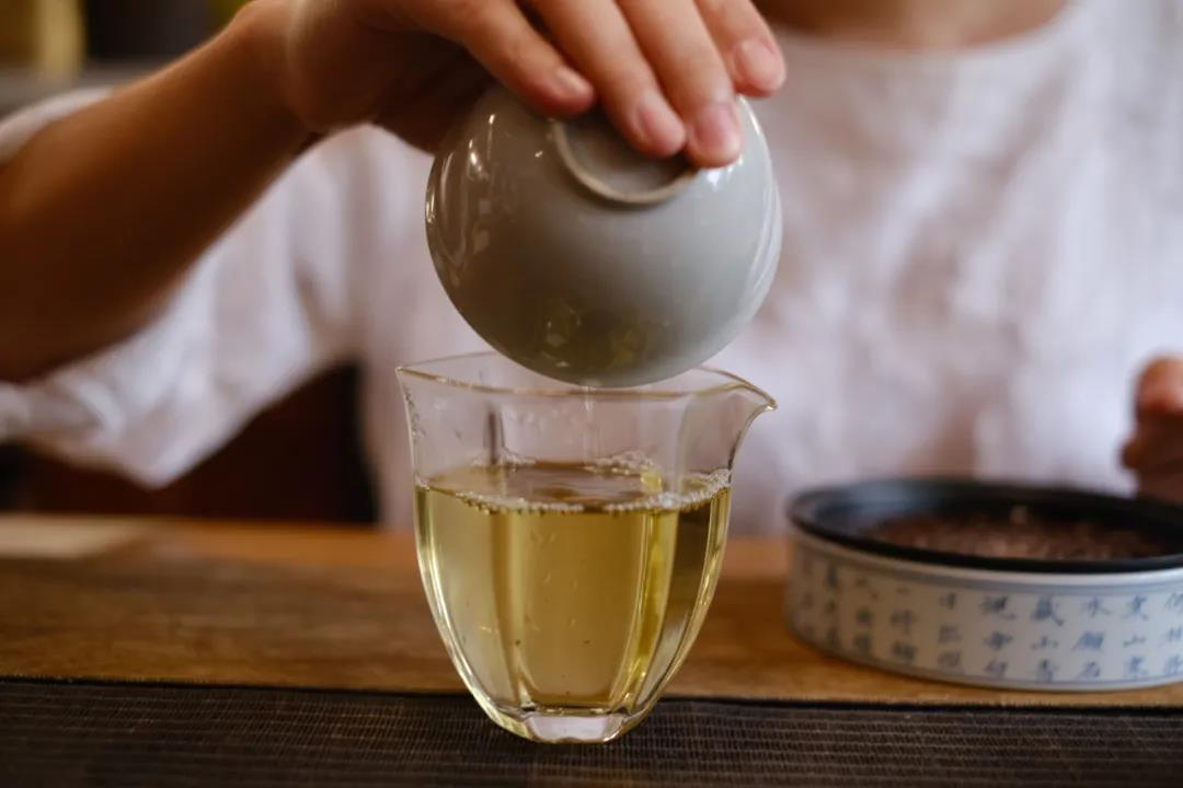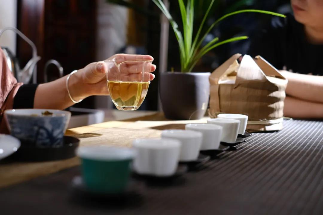 茶汤金黄通透,水路细腻稠滑,香气融于茶汤中,回甘生津,喉韵明显持久,是一款非常内敛的易武生茶。