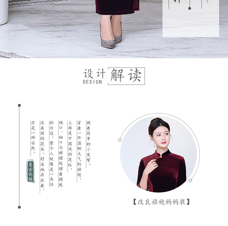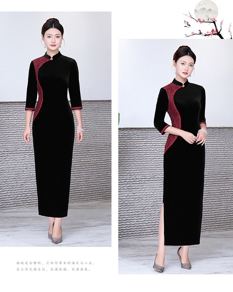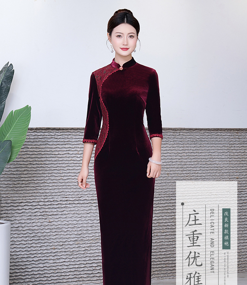 冬季新款,复古长款韩国绒拼蕾丝改良旗袍连衣裙敬酒服HYX-23-7823