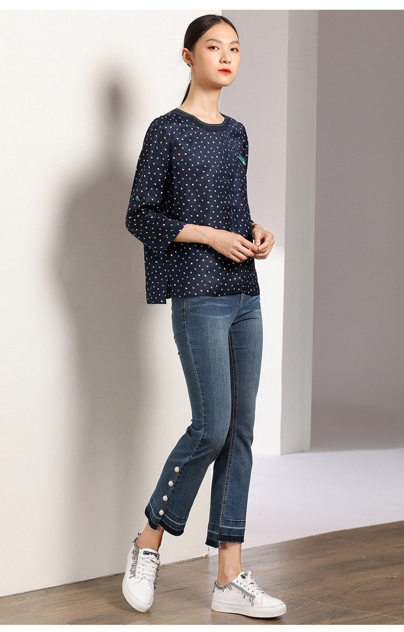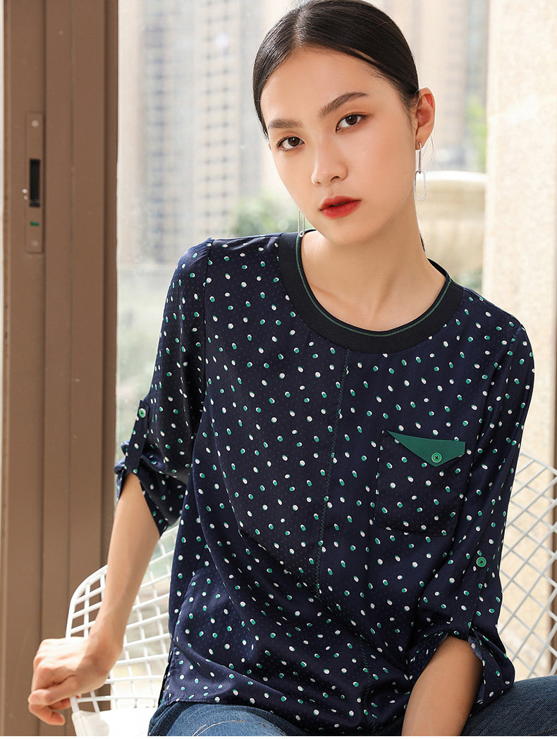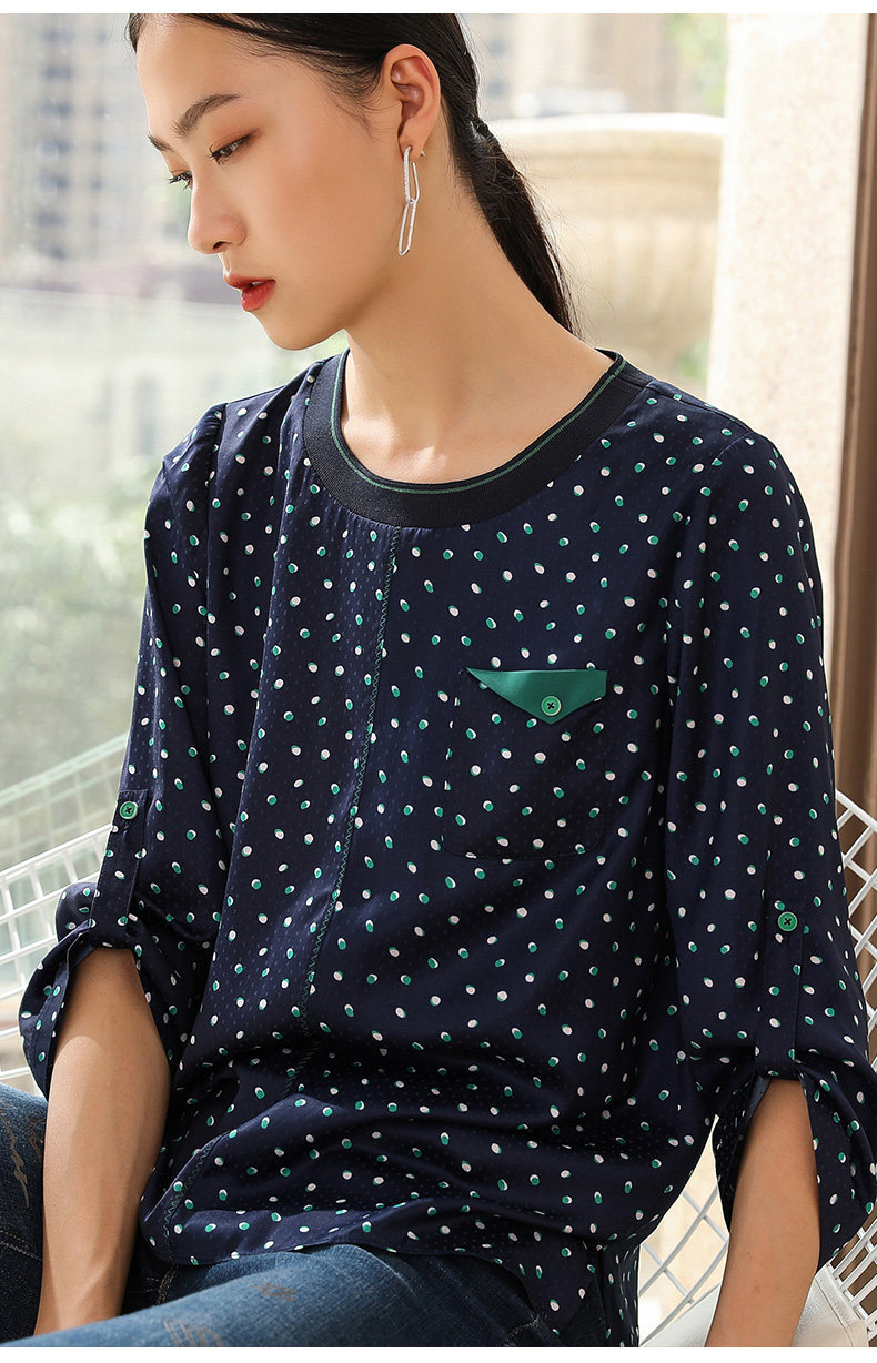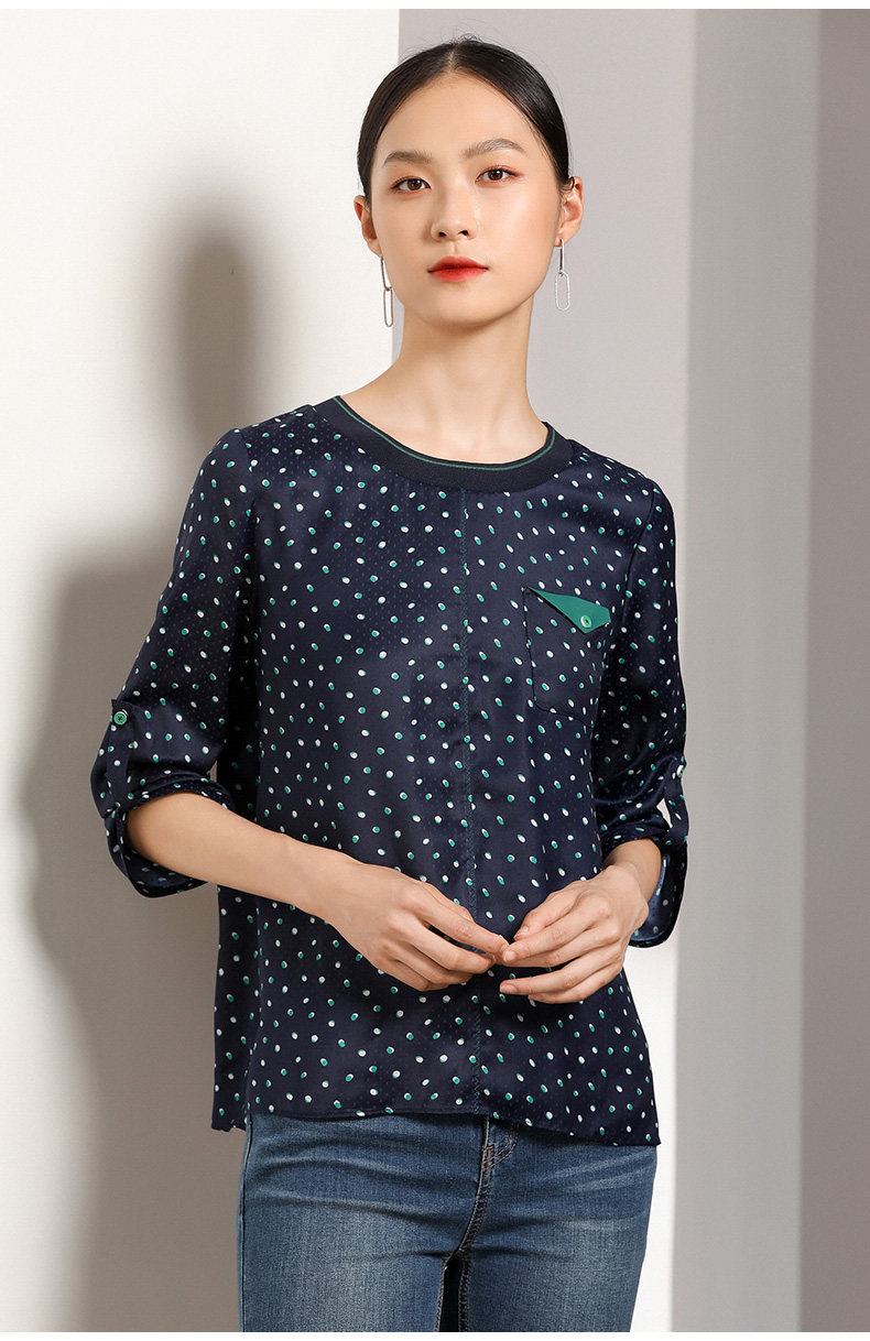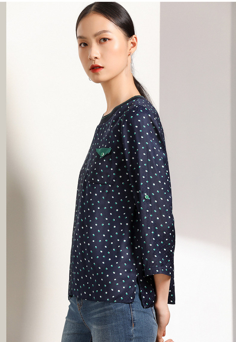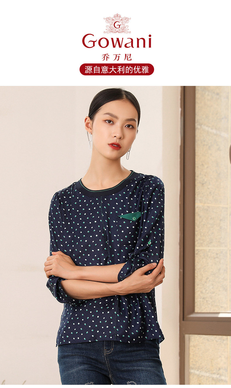 乔万尼秋装波点宽松直筒七分袖套头圆领衬衫春秋上衣EN3C359