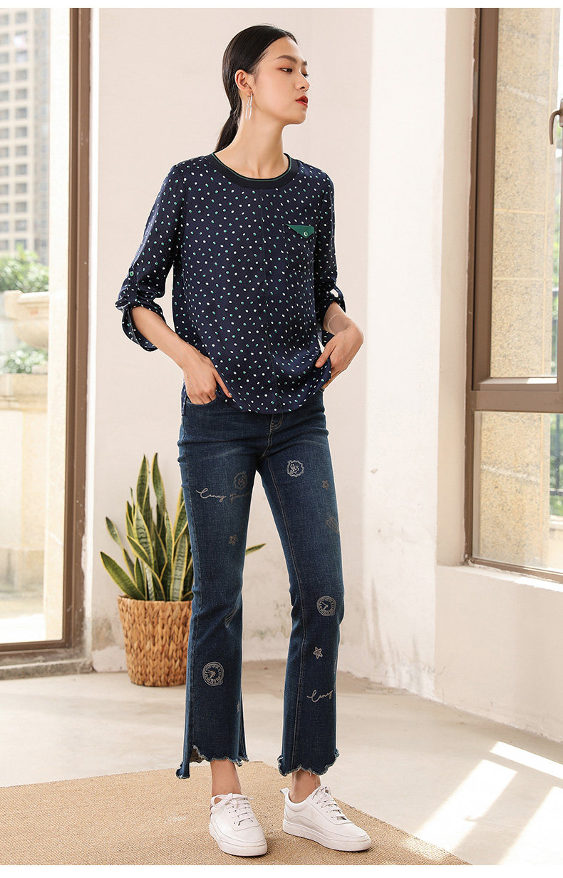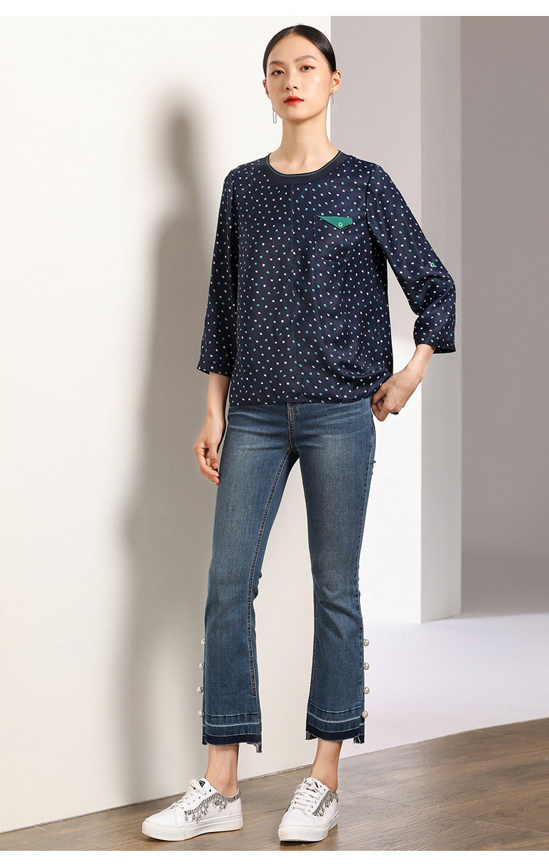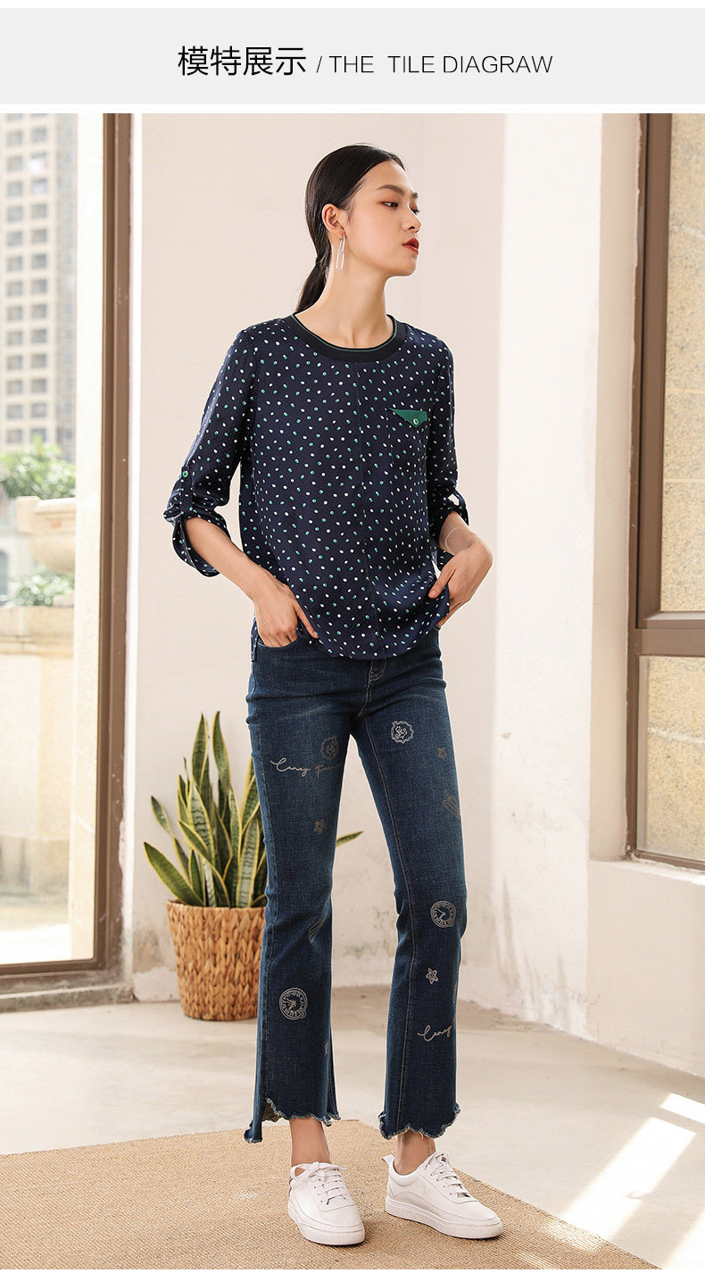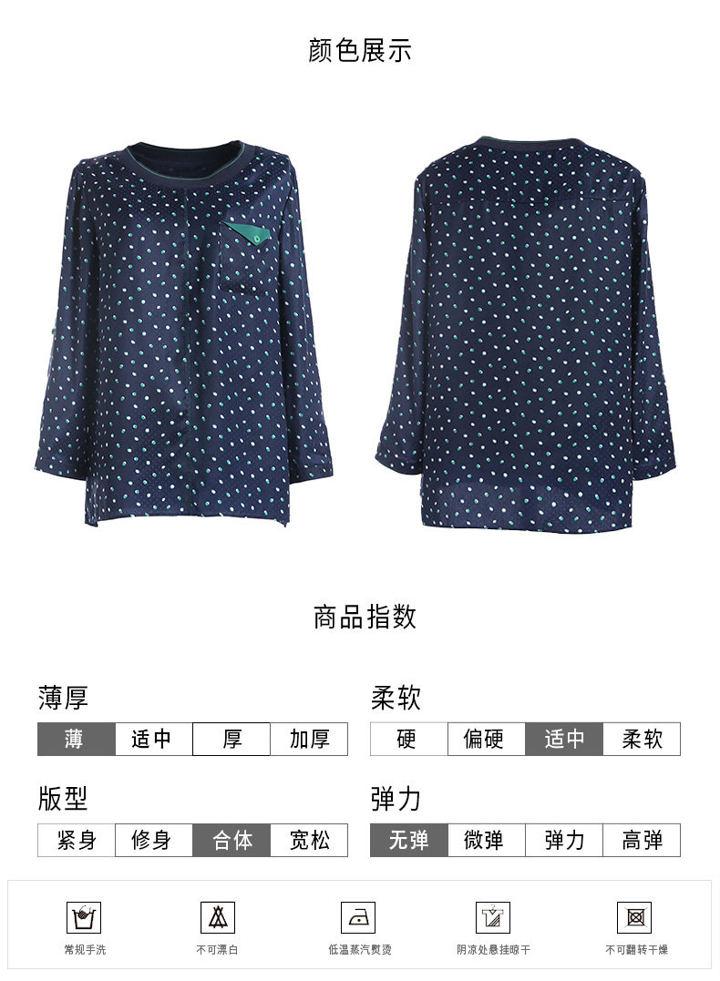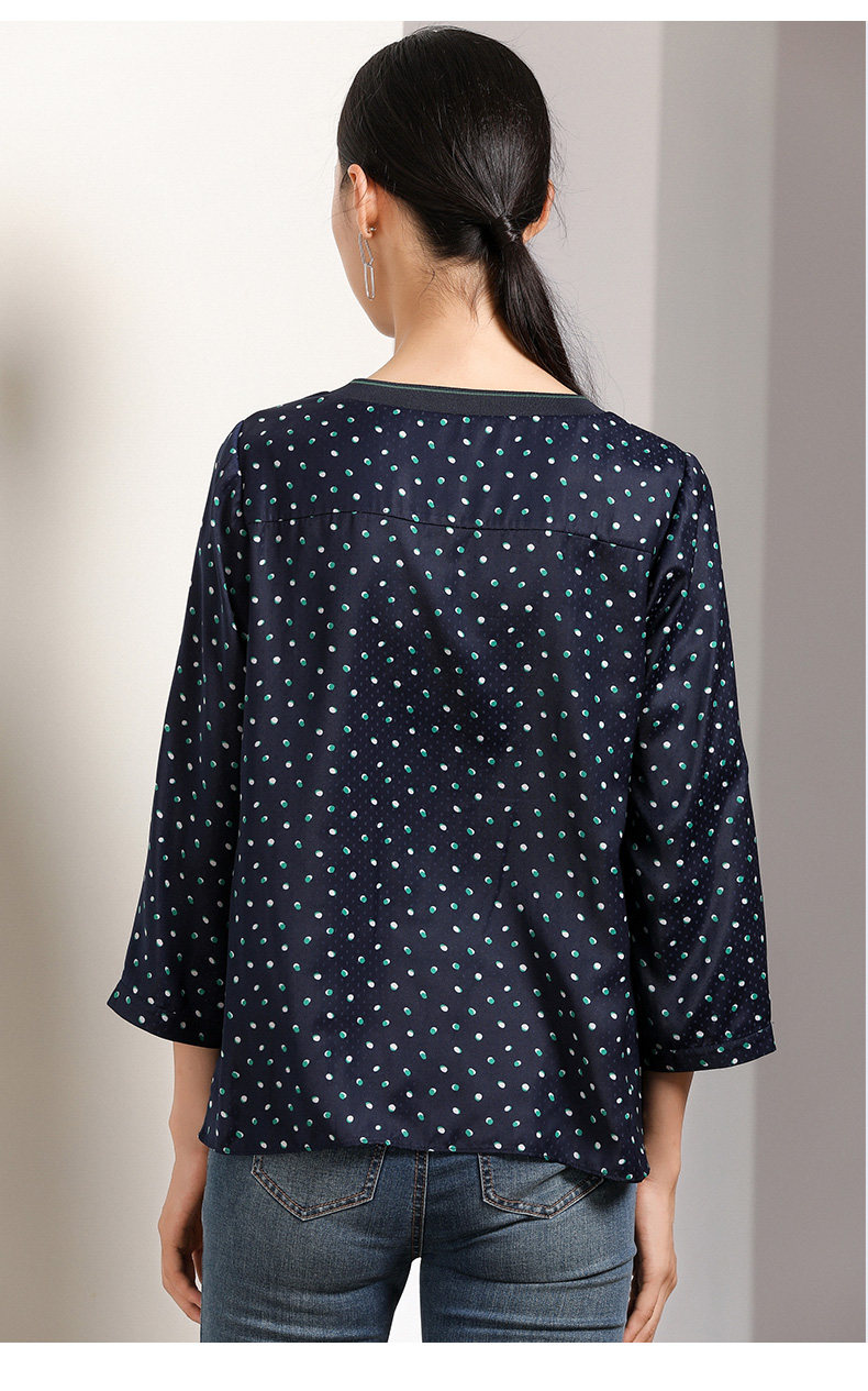 乔万尼秋装波点宽松直筒七分袖套头圆领衬衫春秋上衣EN3C359