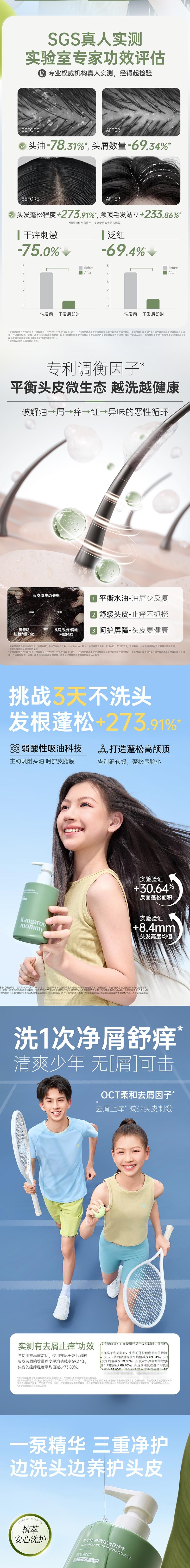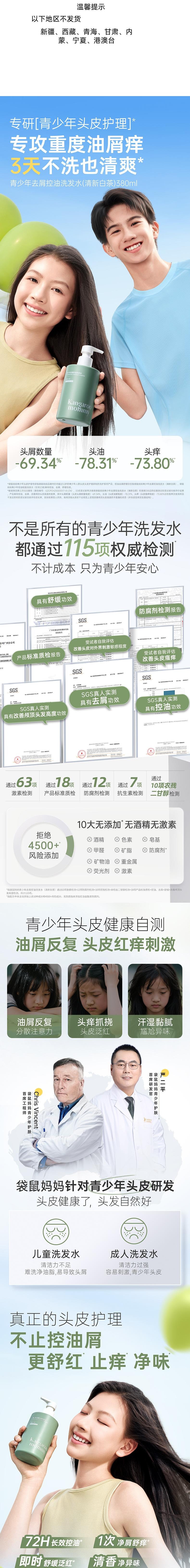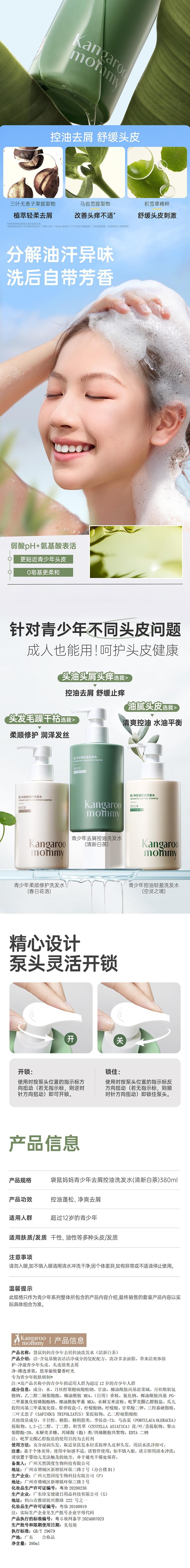 袋鼠妈妈 青少年去屑控油洗发水(清新白茶)380ml A100185505