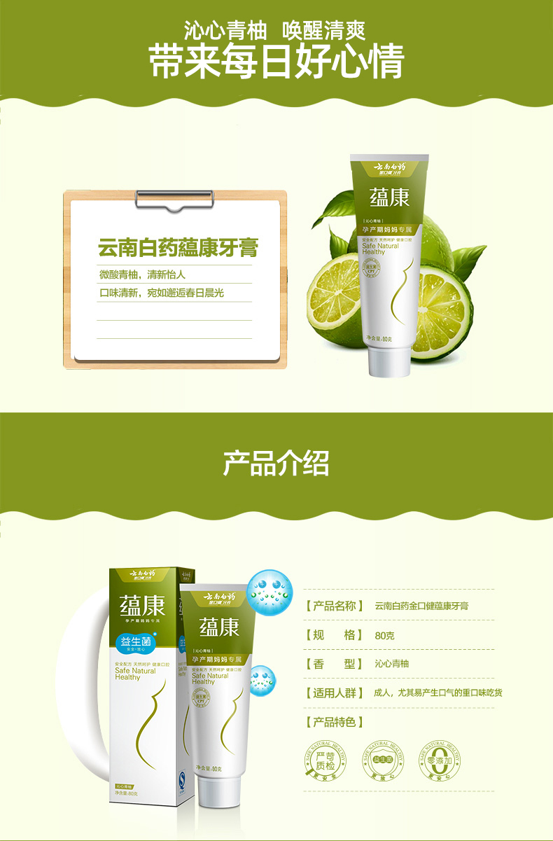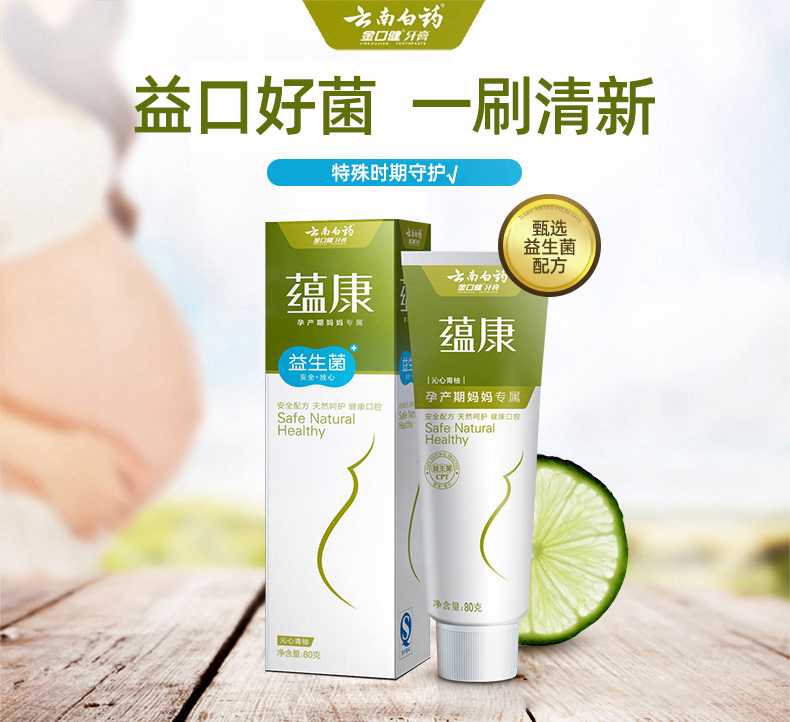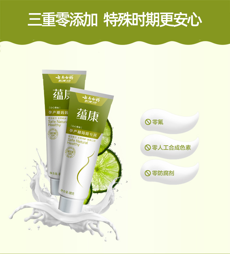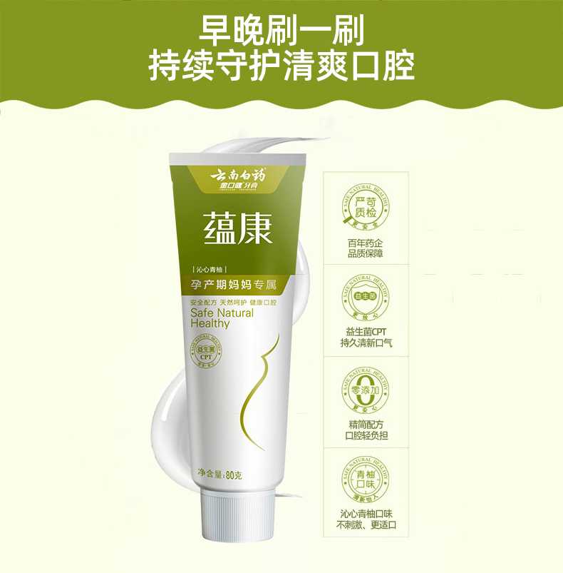 云南白药蕴康无氟牙膏 清新口气健齿护龈孕妇月子