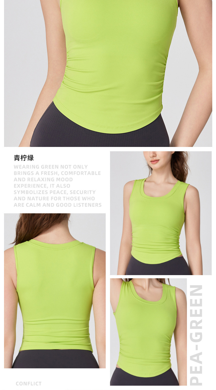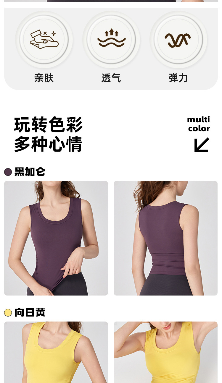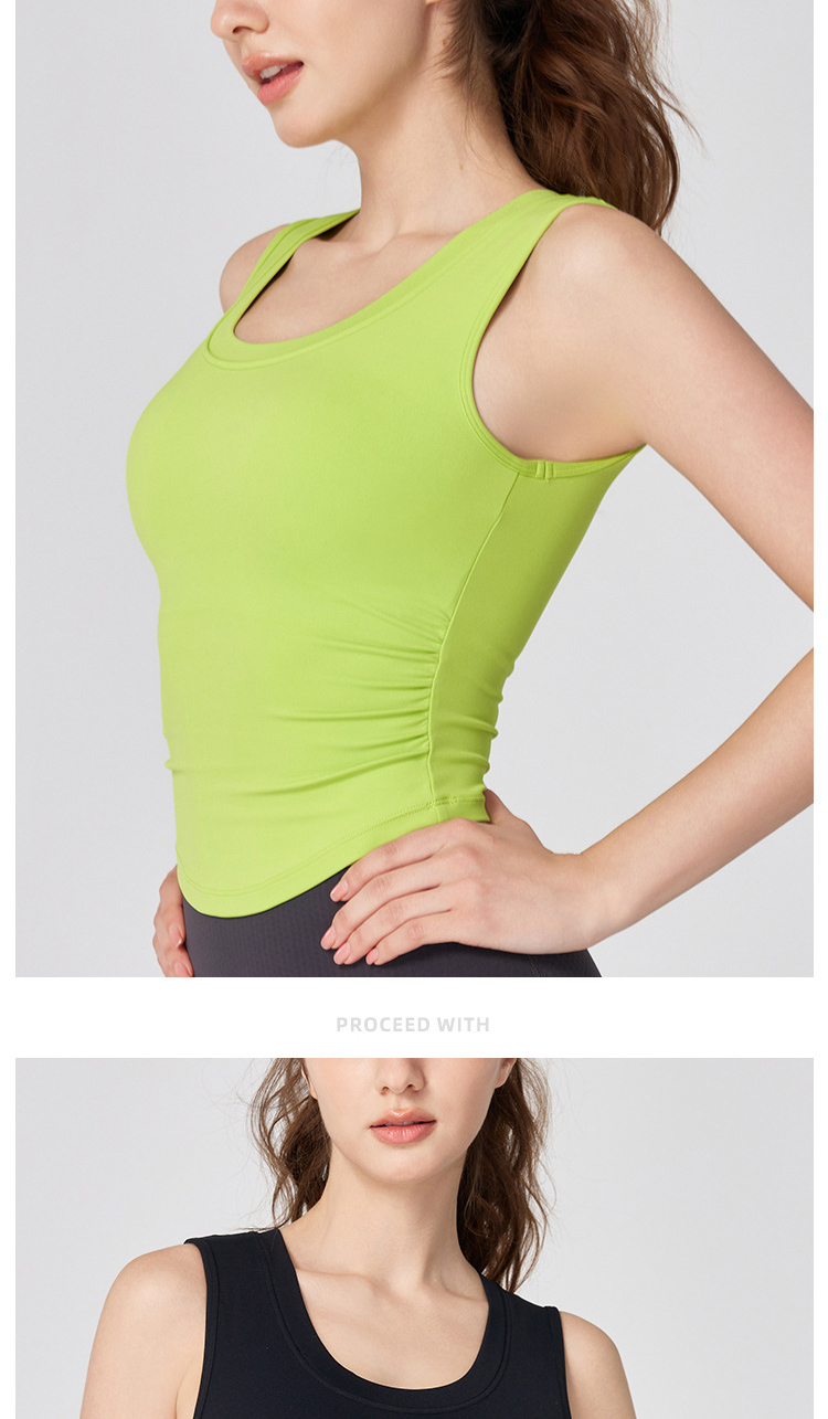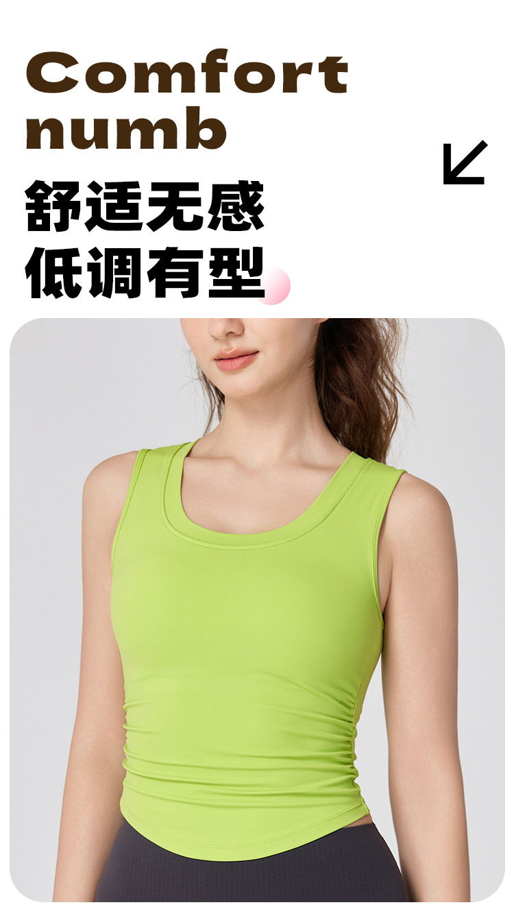 跃牌【海听系列】NULS带胸垫弧形下摆瑜伽服背心辣妹性感修身U领弹力运动上衣XC66