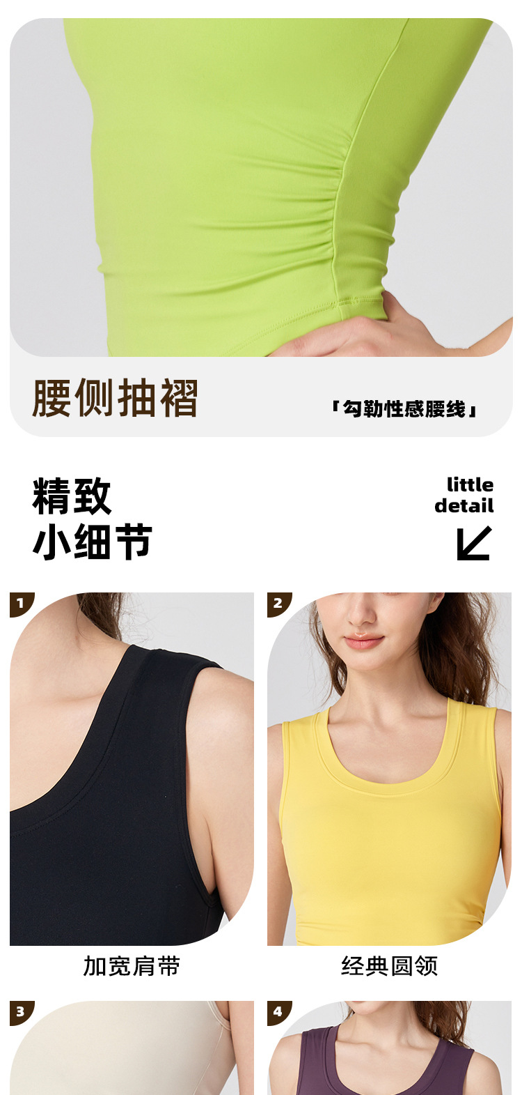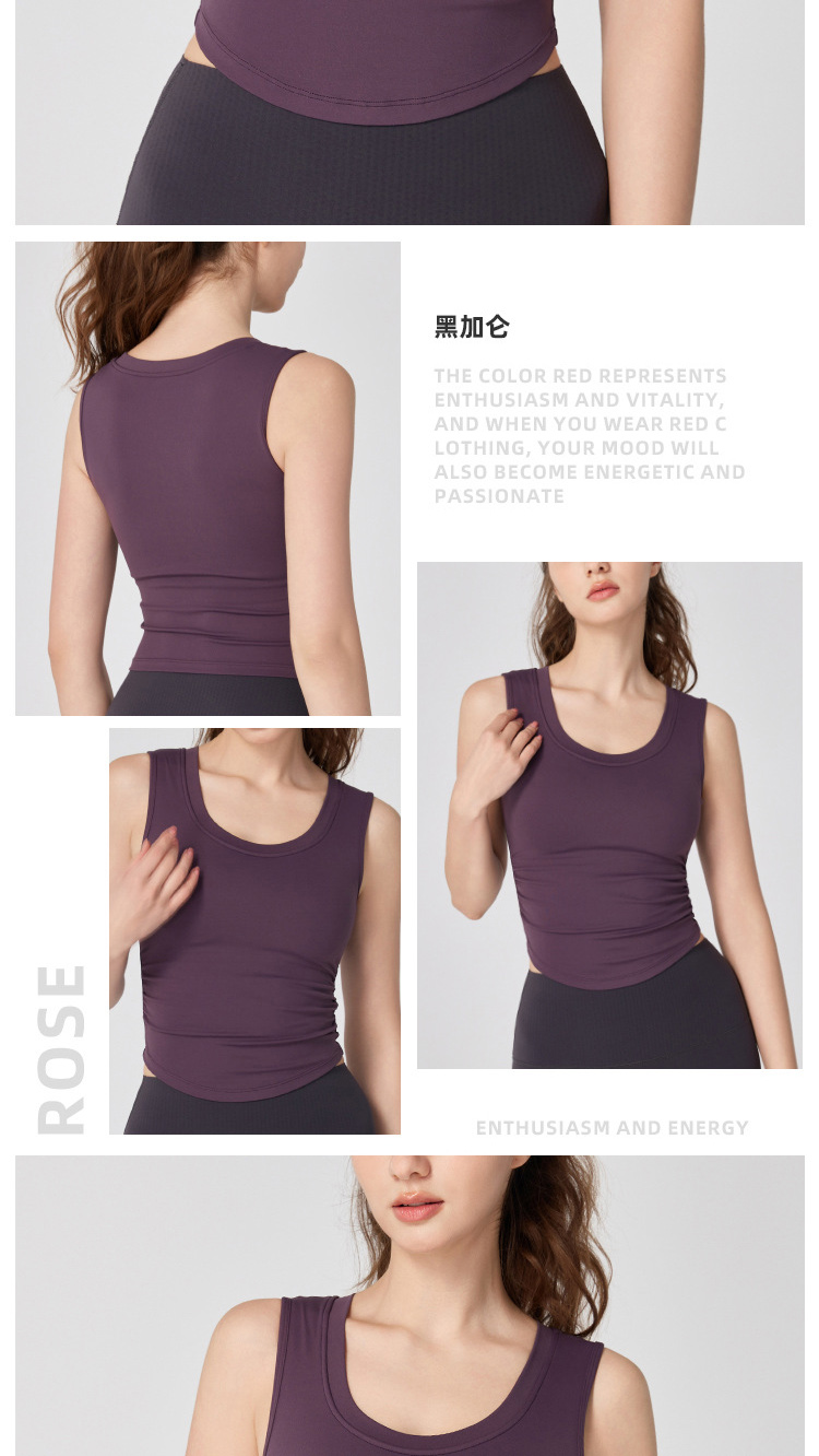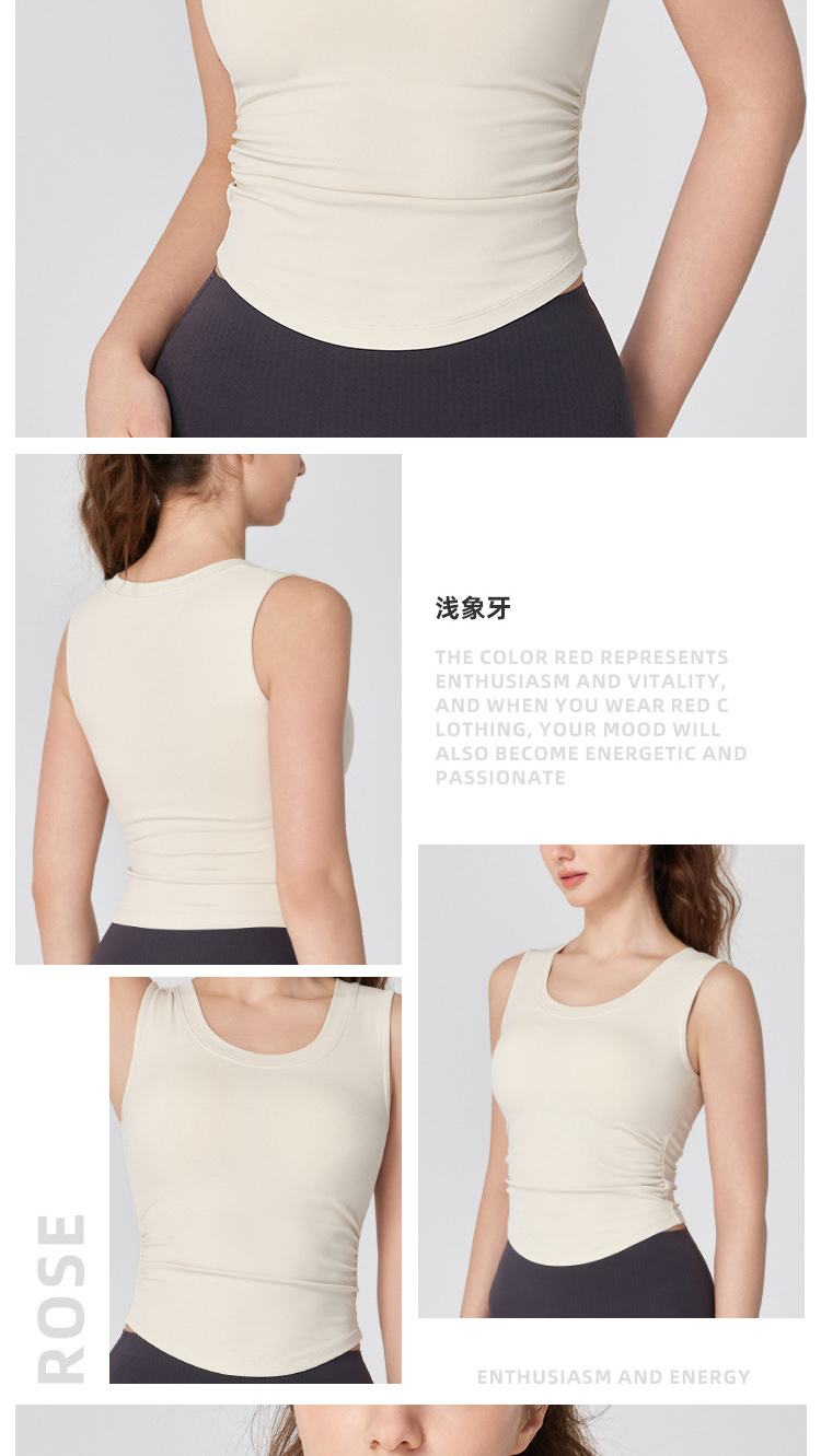 跃牌【海听系列】NULS带胸垫弧形下摆瑜伽服背心辣妹性感修身U领弹力运动上衣XC66