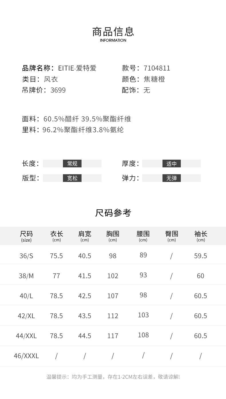 EITIE爱特爱秋季新款大气通勤百搭显瘦风衣外套女7104811