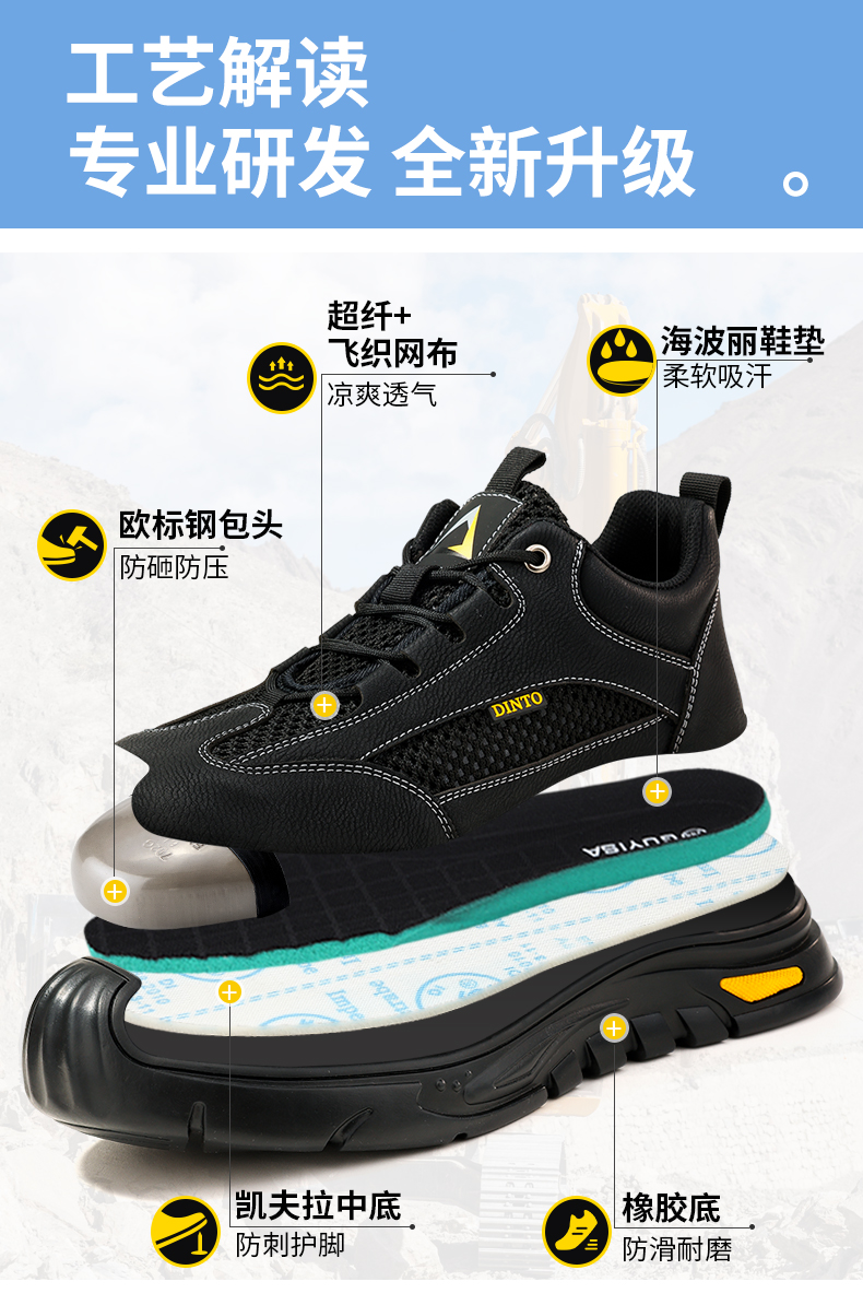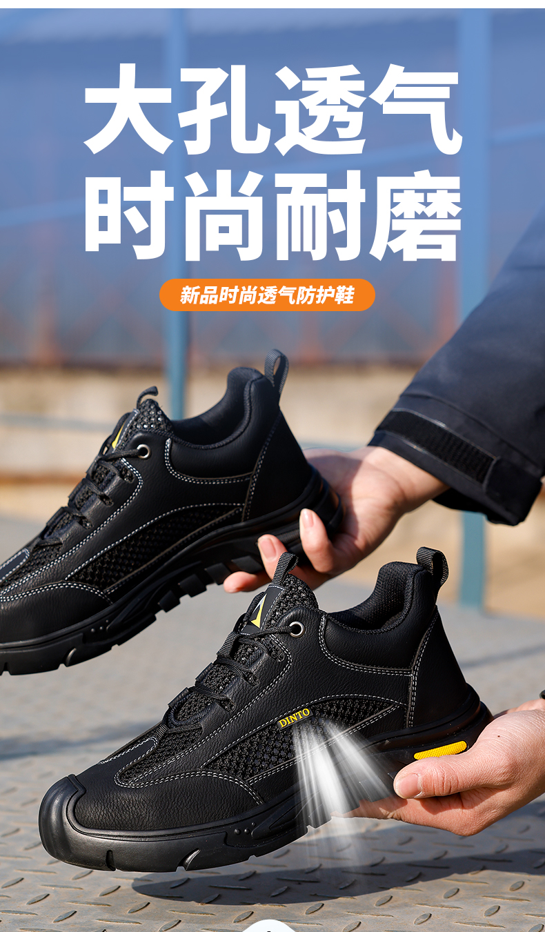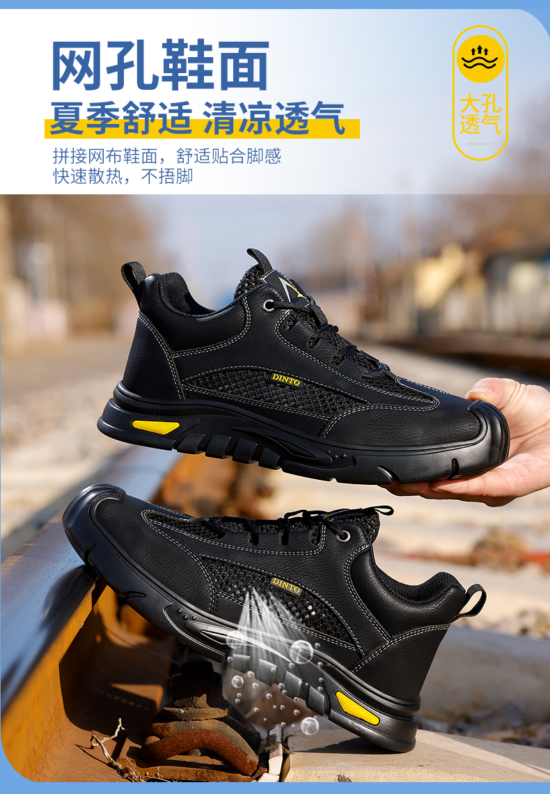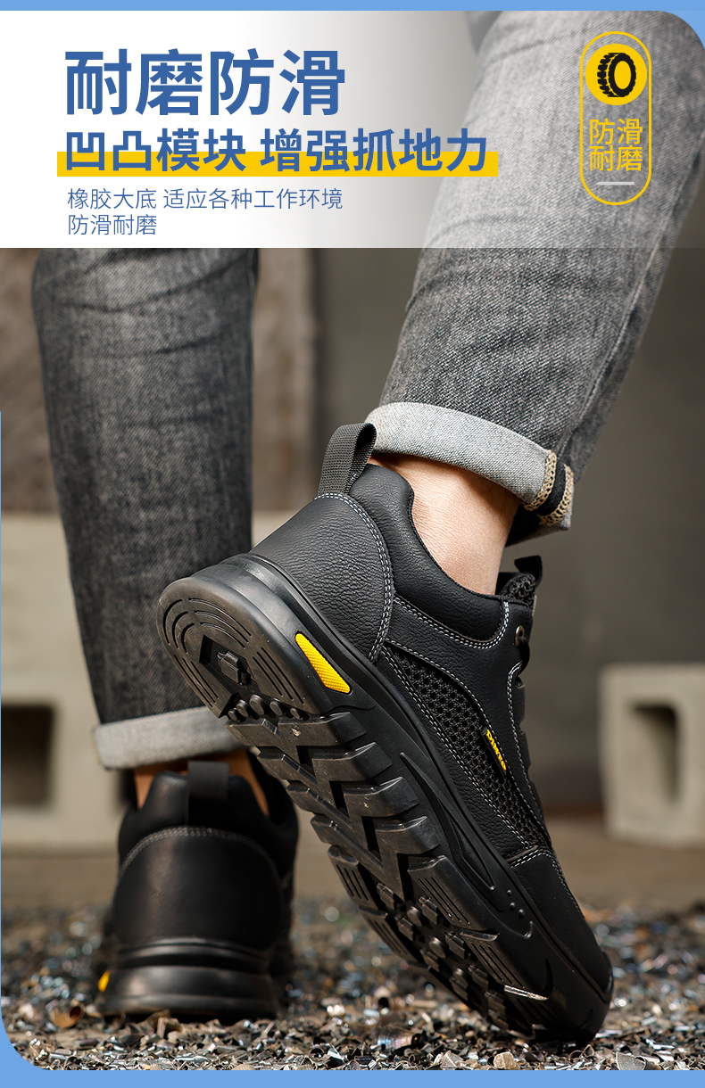 夏季透气款黑色劳保鞋男网布透气防砸防刺工地安全鞋