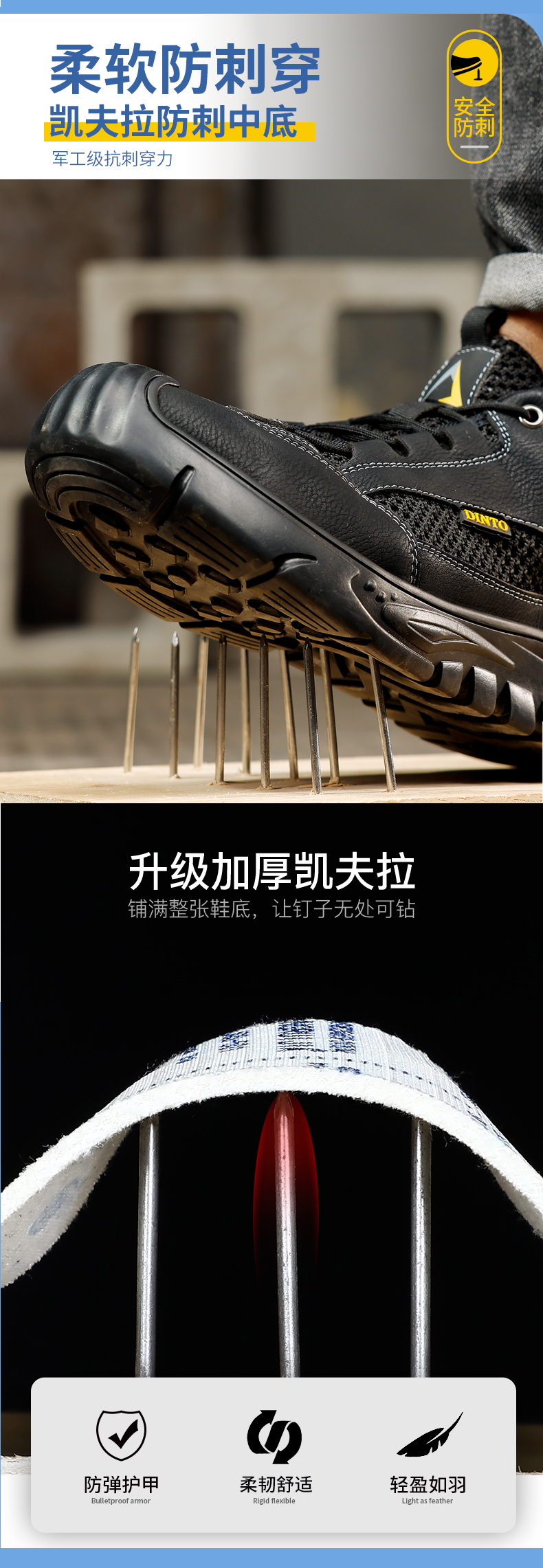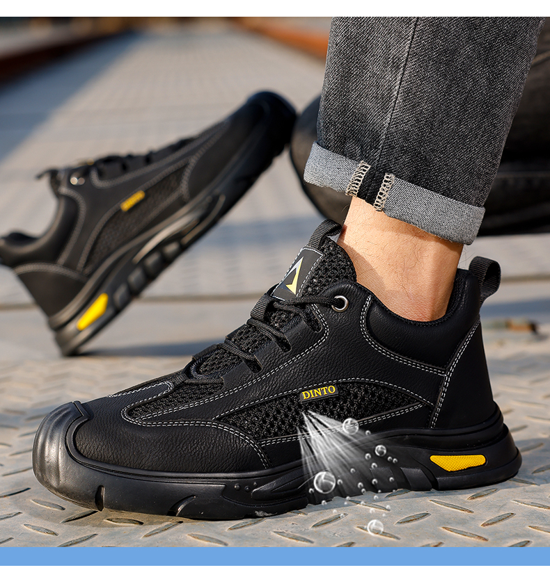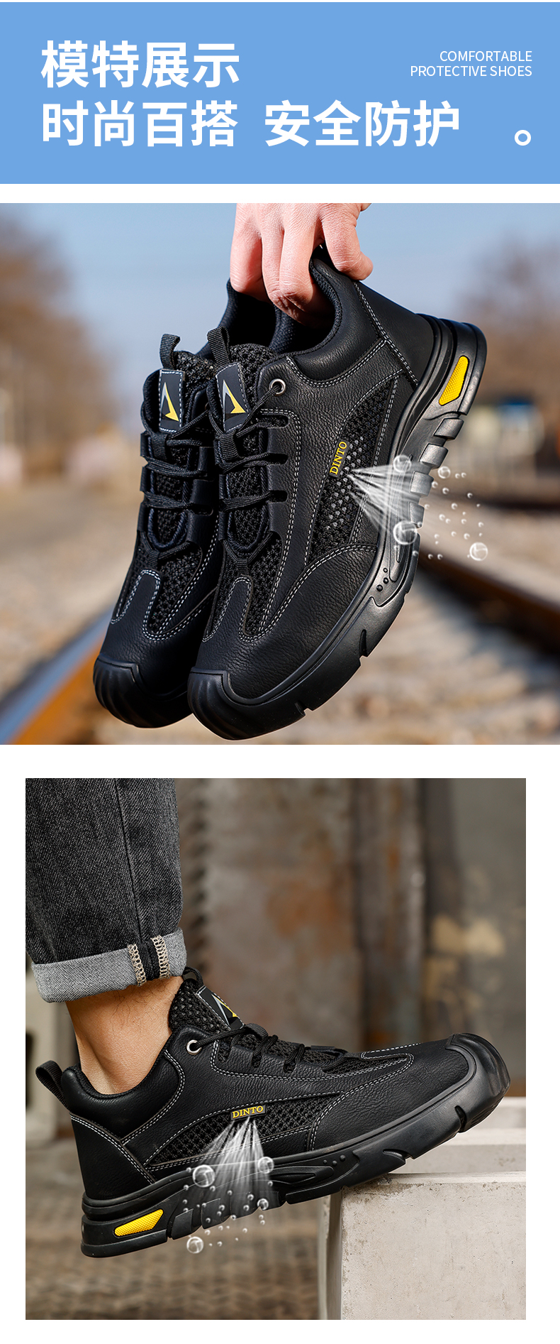 夏季透气款黑色劳保鞋男网布透气防砸防刺工地安全鞋