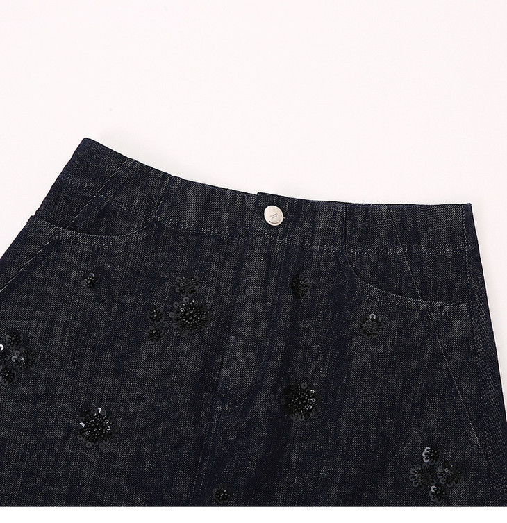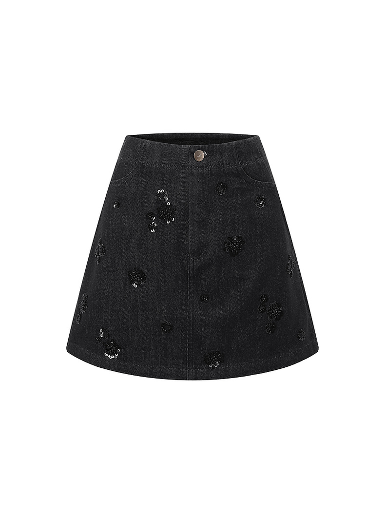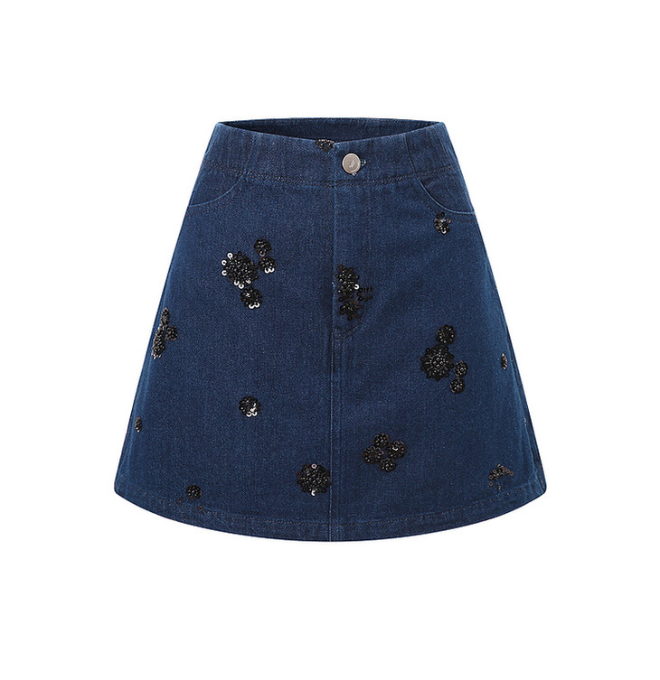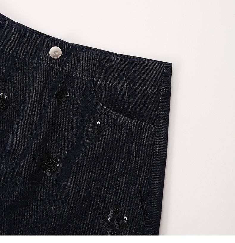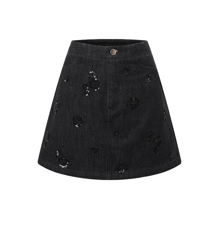 天猫同步【精致氛围感】拉夏贝尔/La Chapelle亮片花朵牛仔裙裤女设计感小众百搭通勤显瘦显高时髦短裤