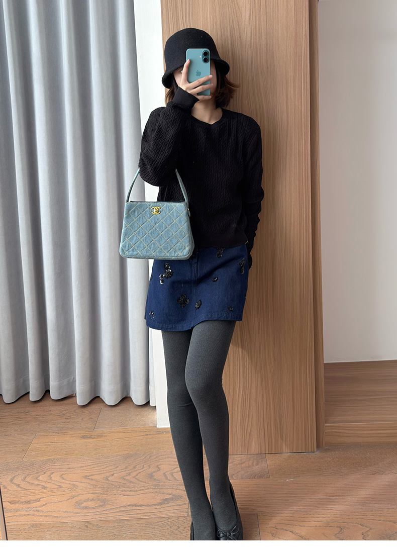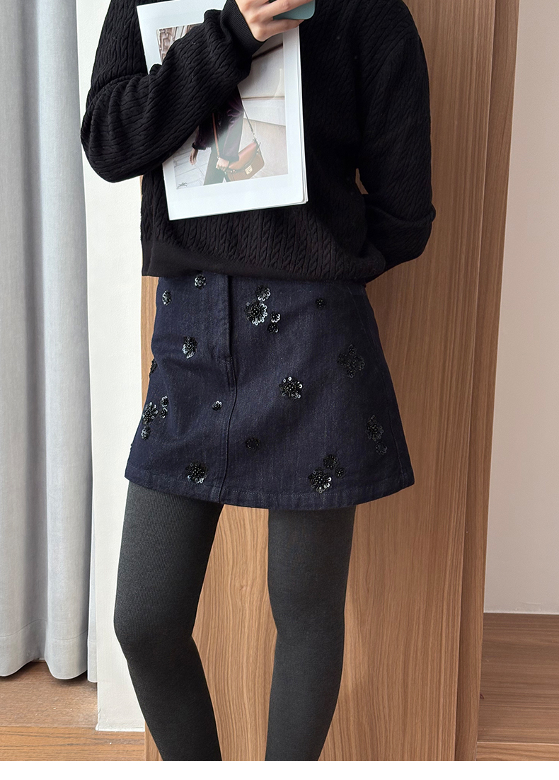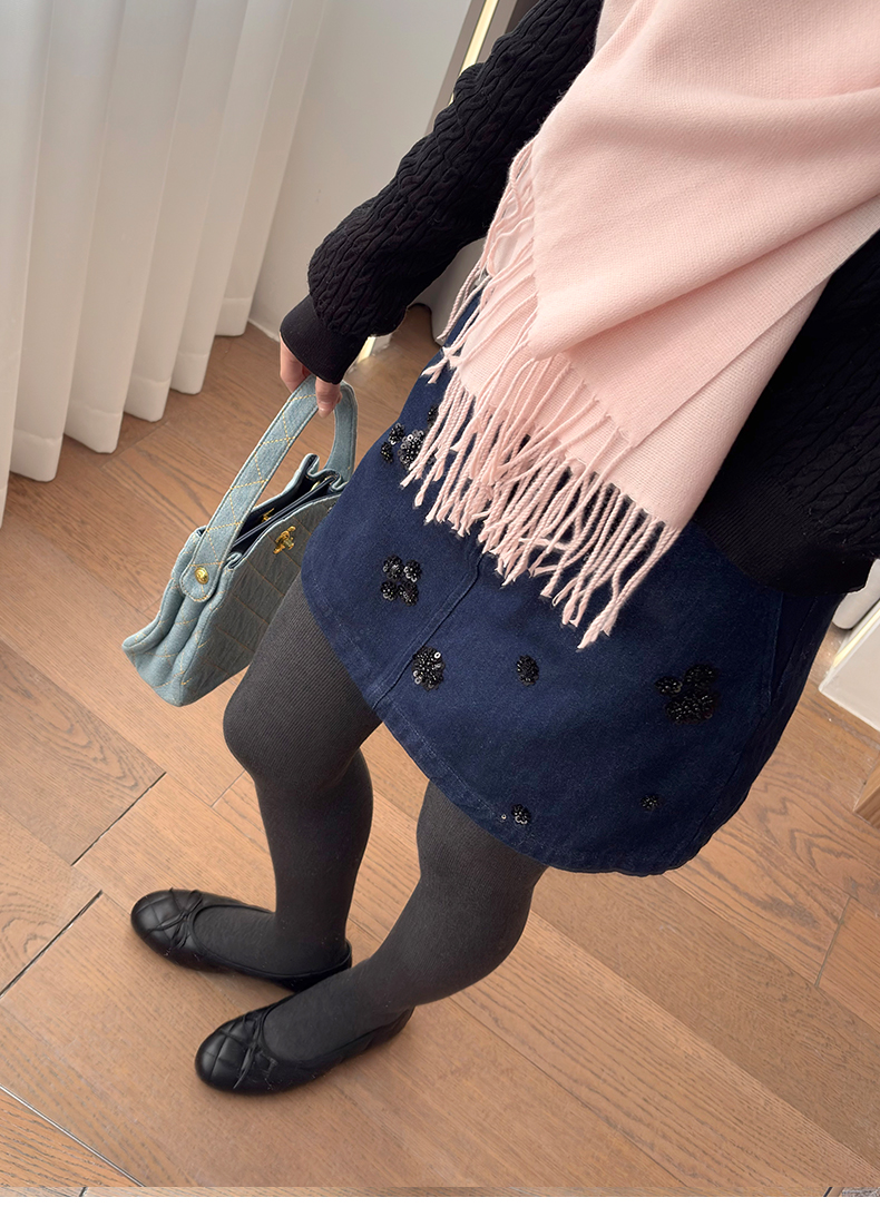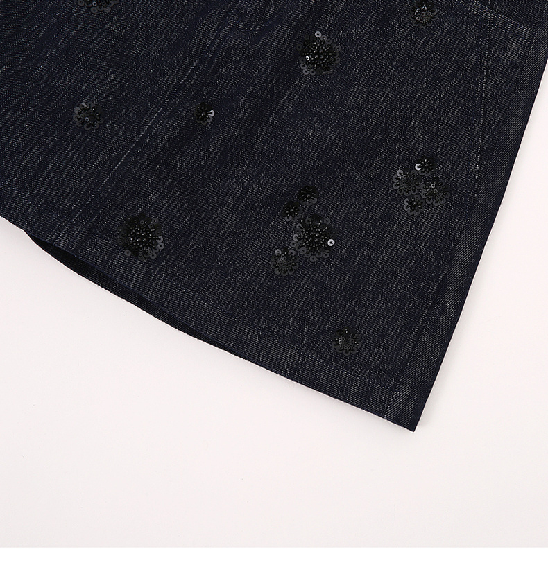 天猫同步【精致氛围感】拉夏贝尔/La Chapelle亮片花朵牛仔裙裤女设计感小众百搭通勤显瘦显高时髦短裤