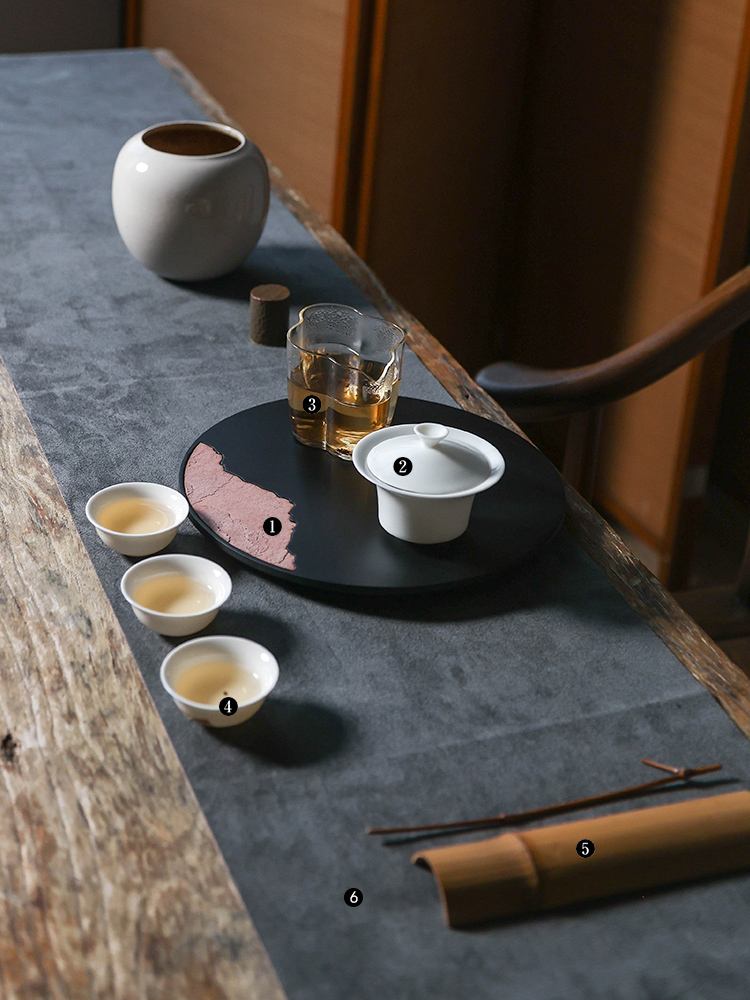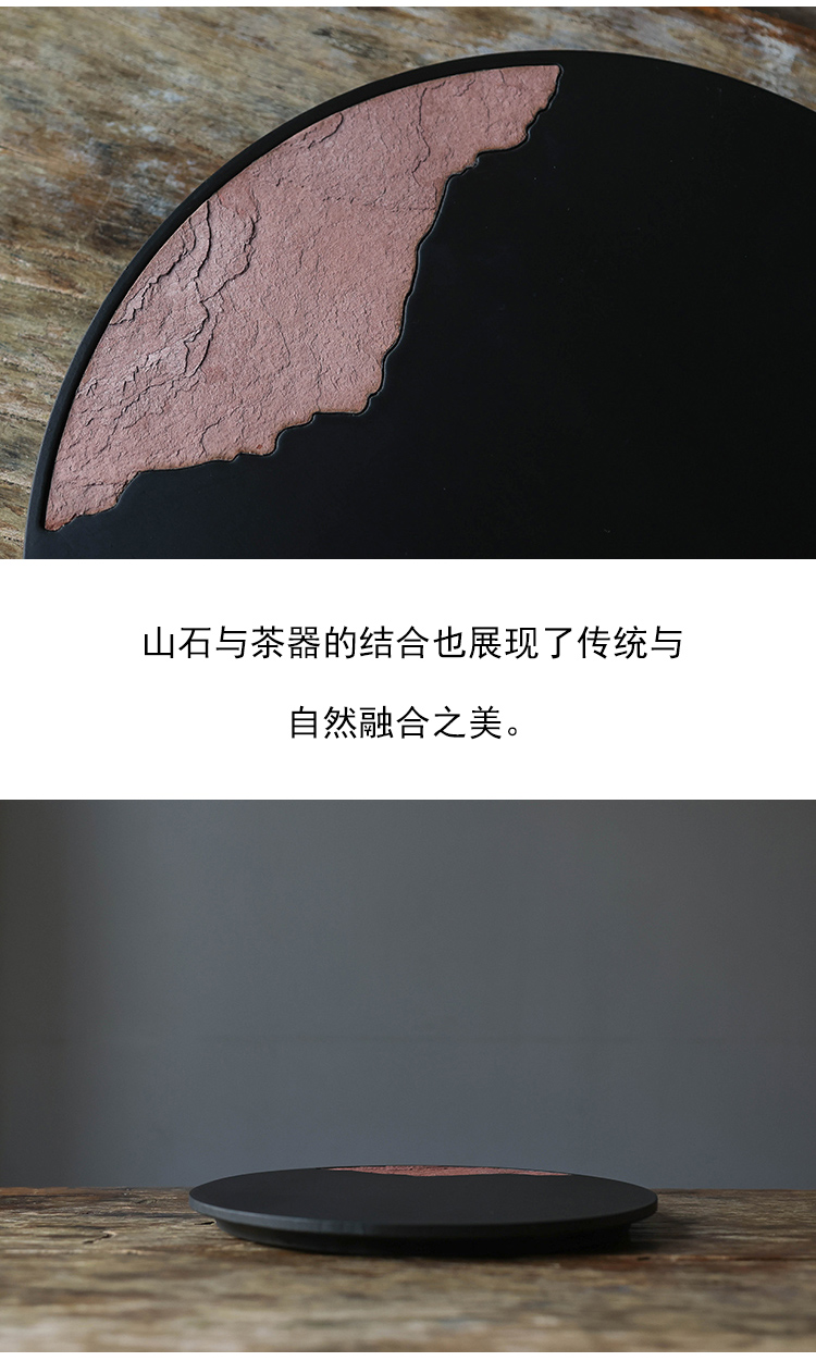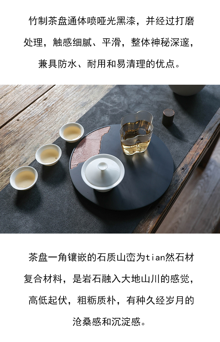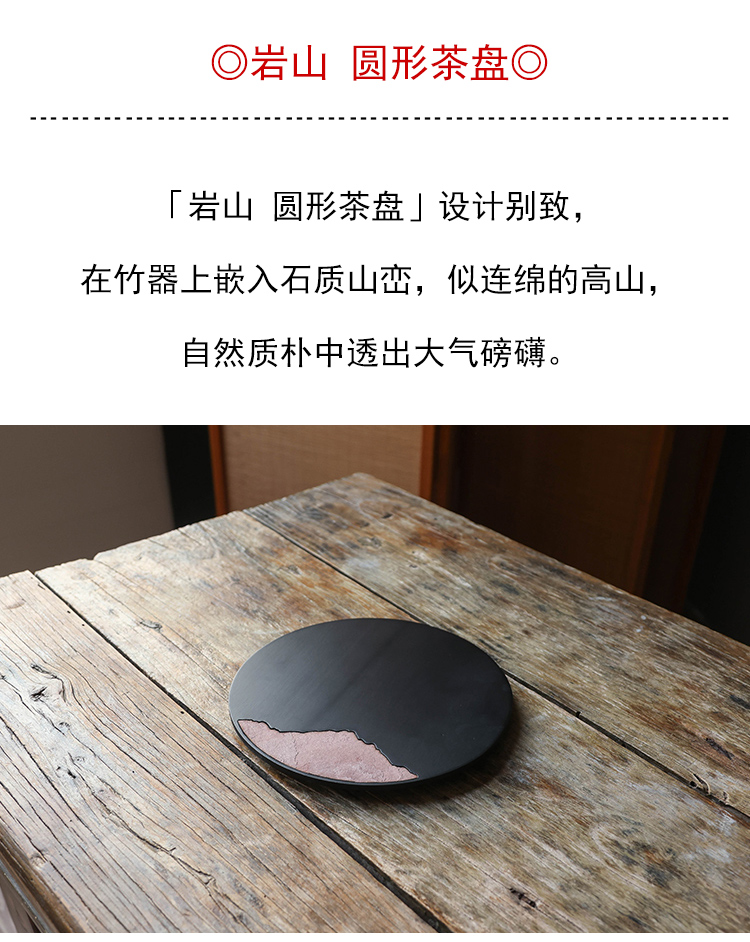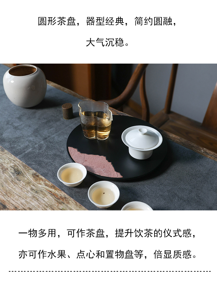 茶香记 岩山圆形茶盘茶道配件中式复古山水干泡台壶承托盘置物盘