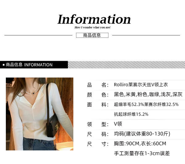 【E】超细羊毛❗️莱赛尔天丝V领上衣(均码合适90-130斤左右)