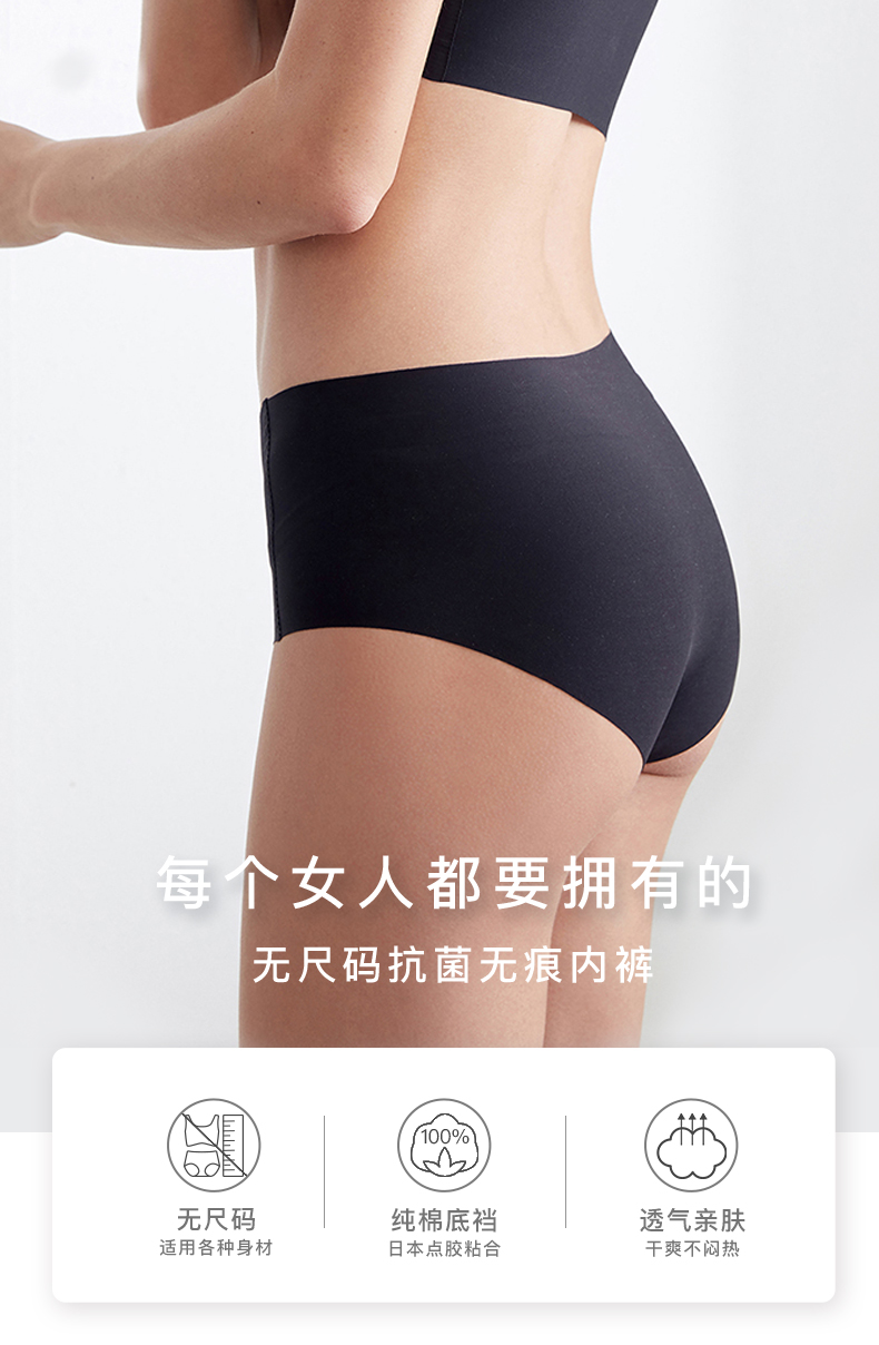 Ubras无尺码抗菌无痕内裤中腰内裤女纯棉底裆三角裤女士内裤