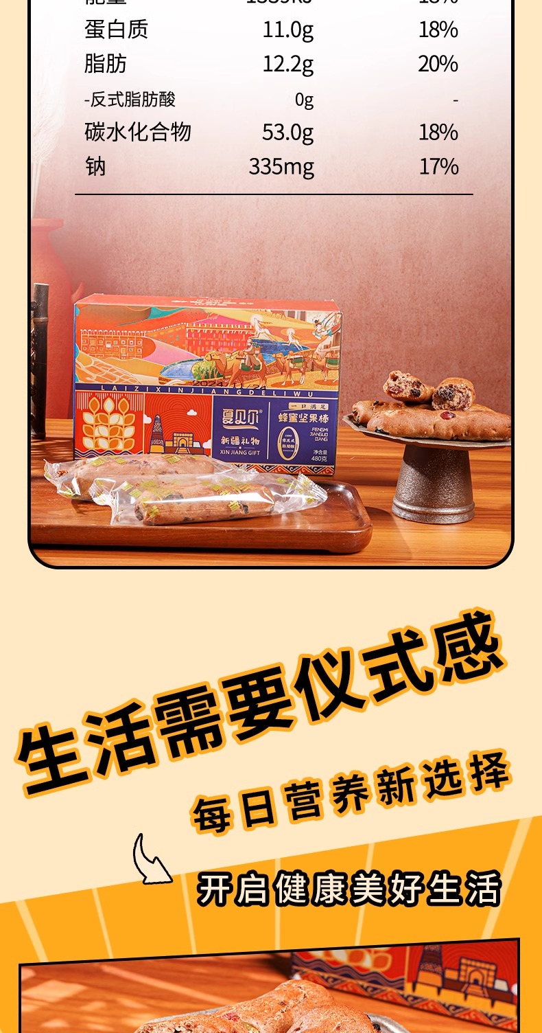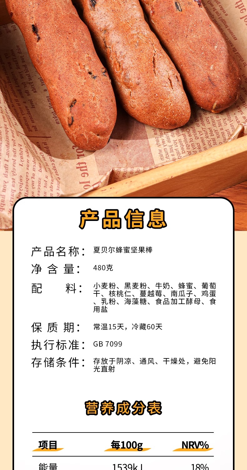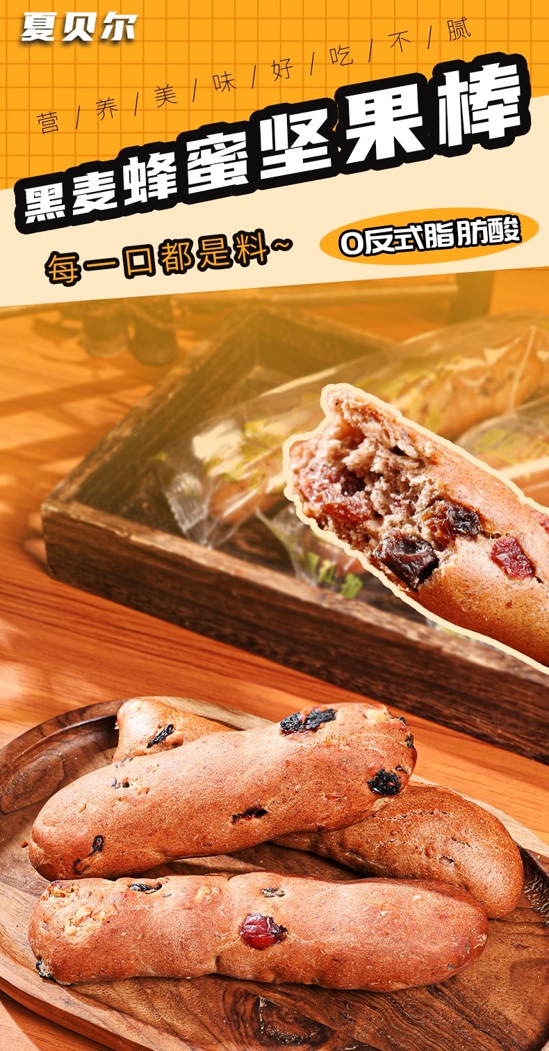 夏贝尔·黑麦蜂蜜坚果棒 480g 麦香、奶香、坚果香 三重口感