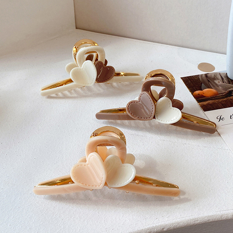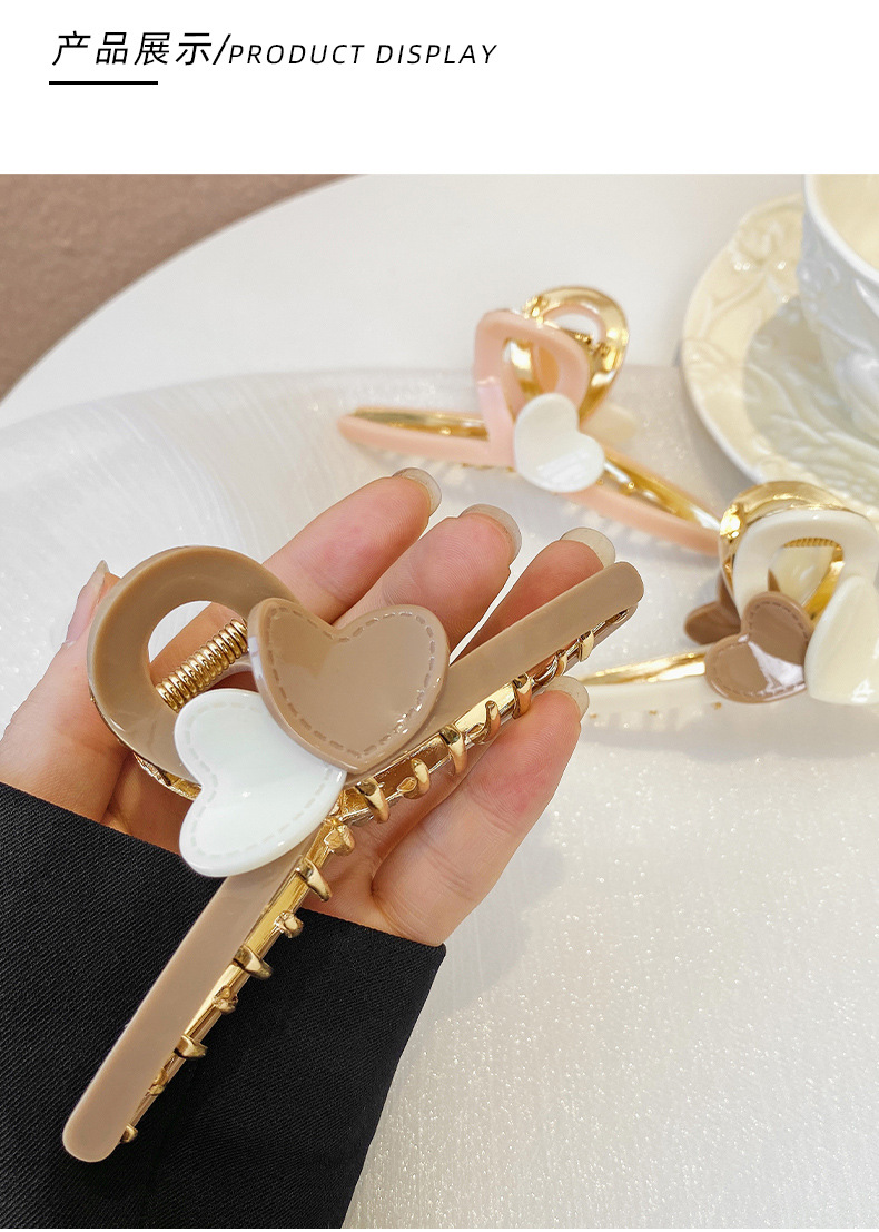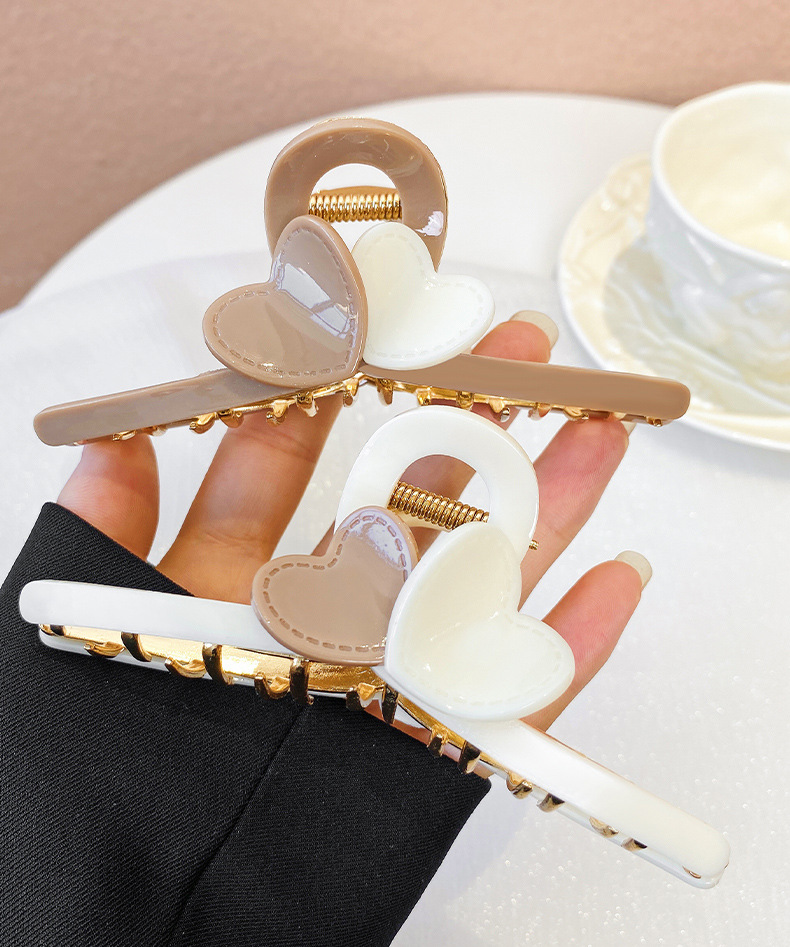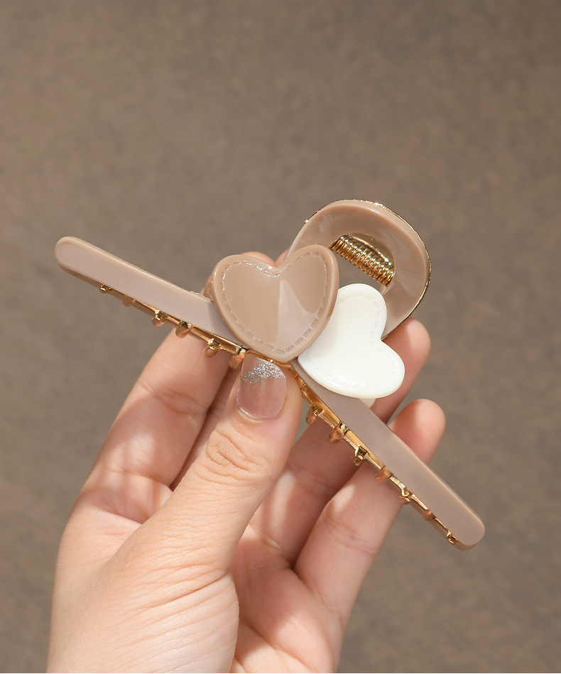 LBE-dz589韩版奶茶咖色爱心发夹后脑勺抓夹鲨鱼夹感网红甜美女头饰