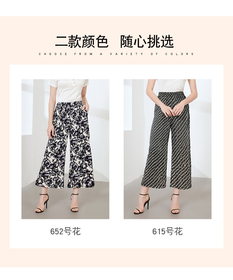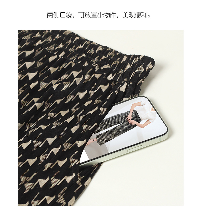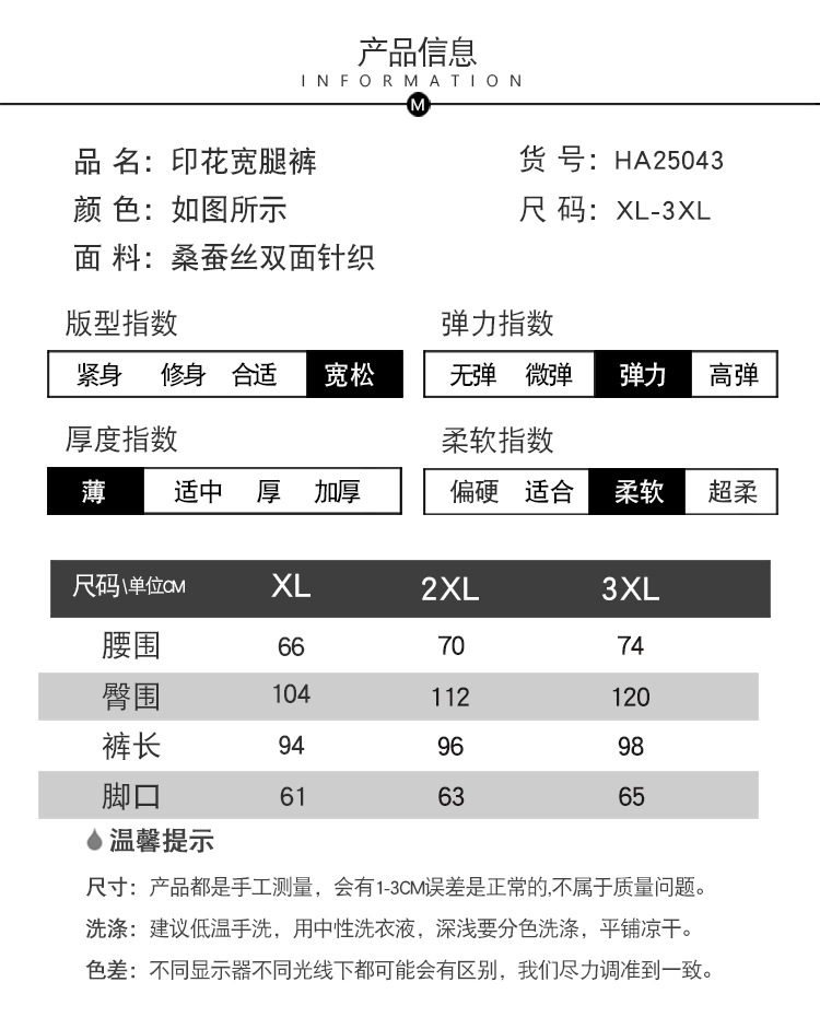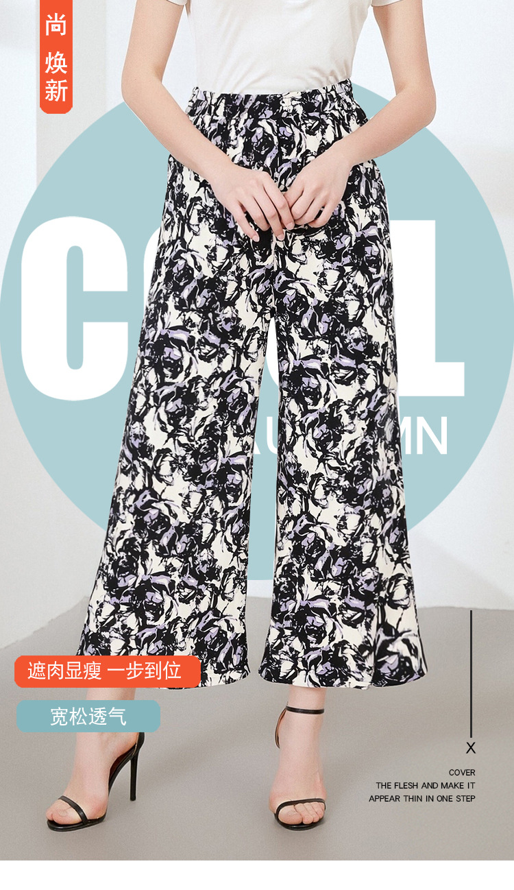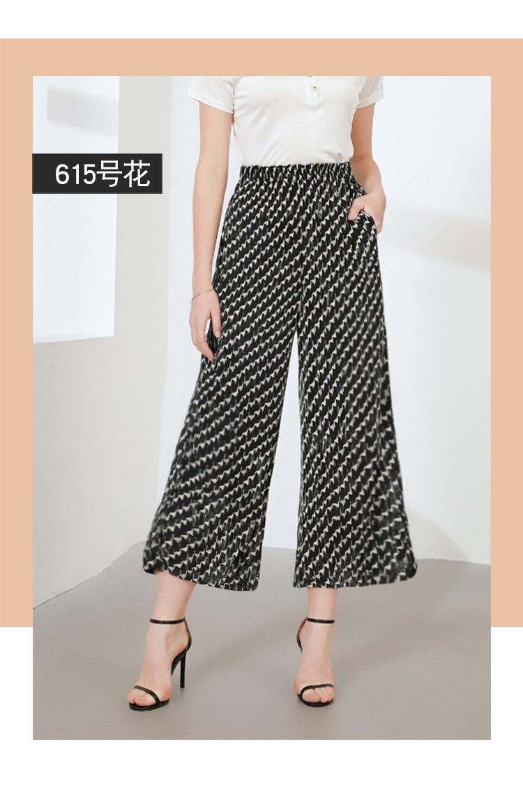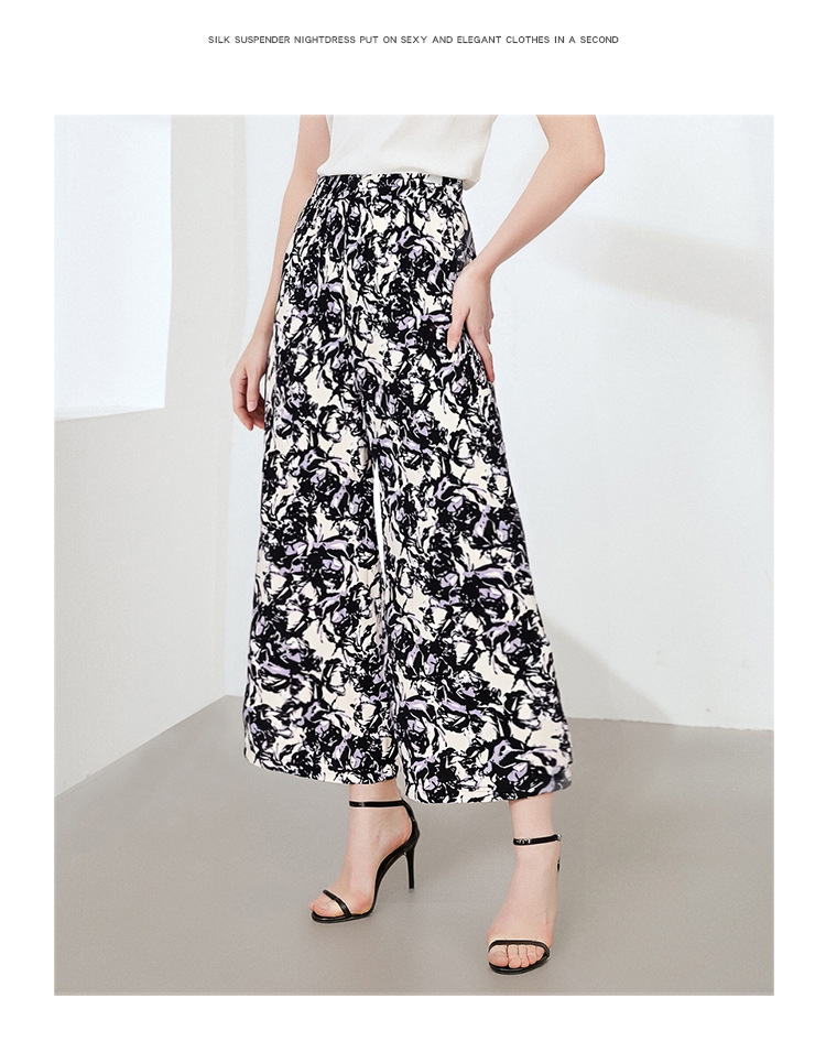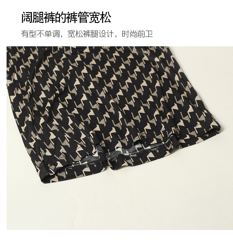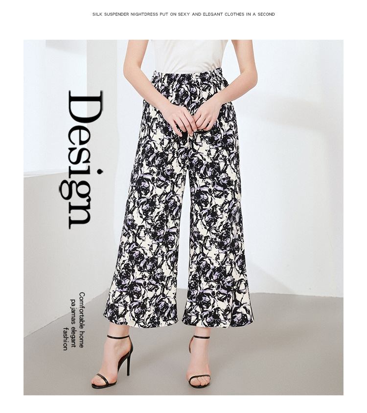 丁摩 真丝印花休闲裤桑蚕丝针织宽松阔腿裤HA25043