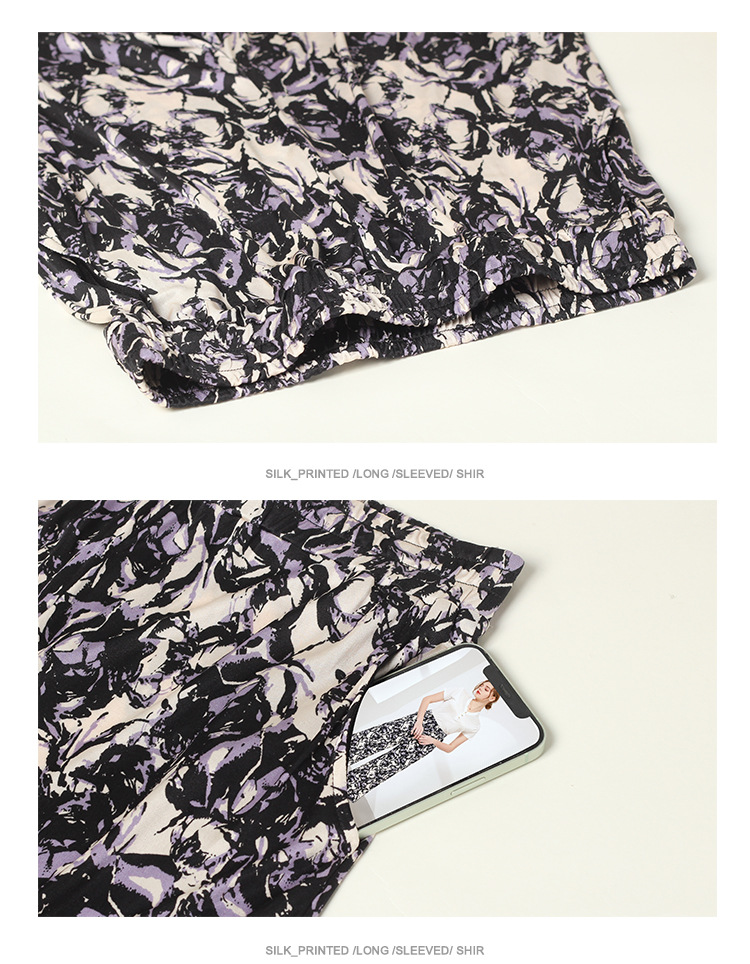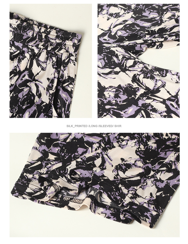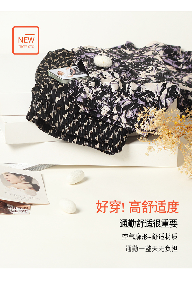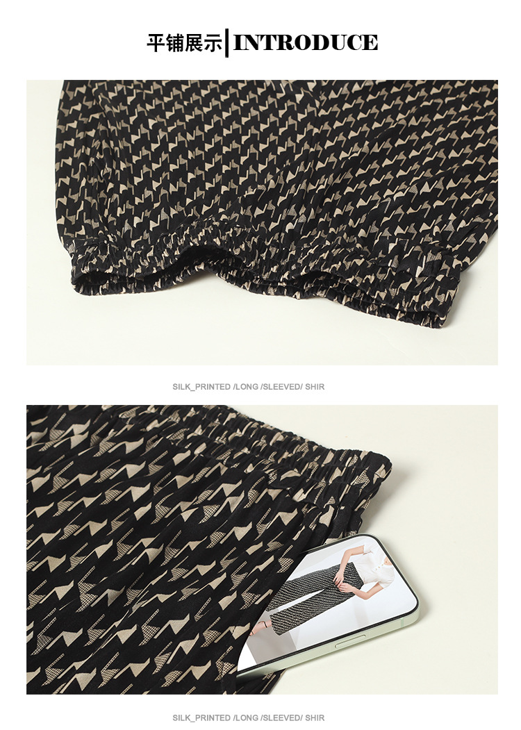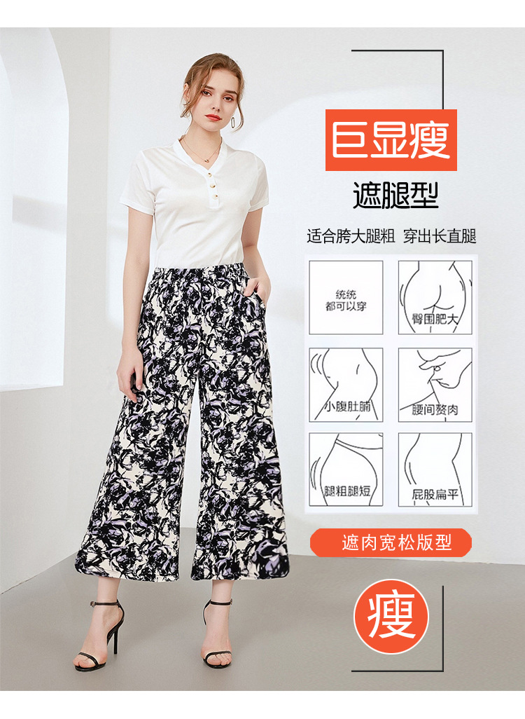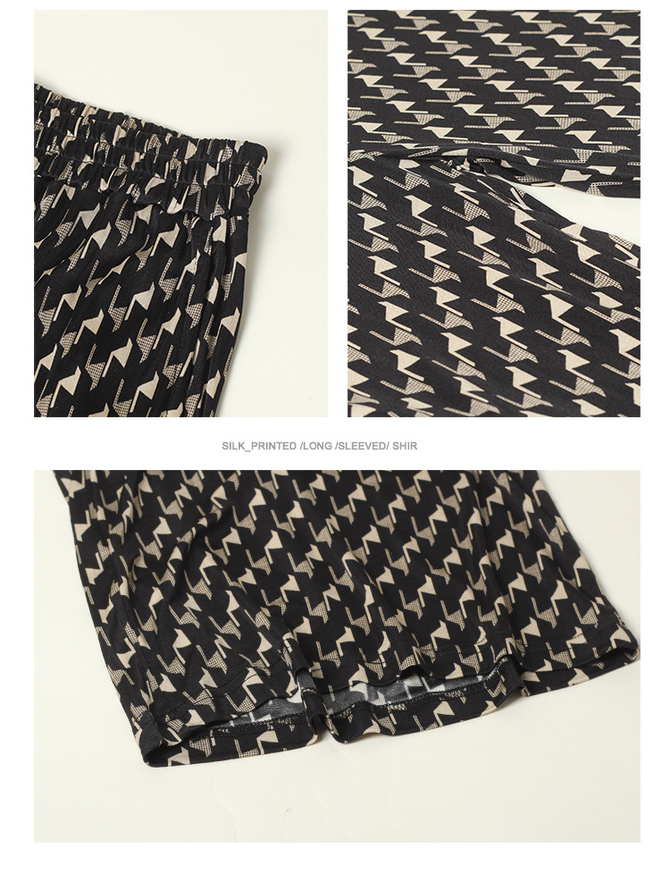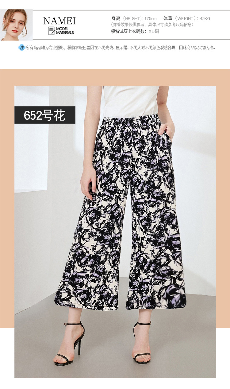 丁摩 真丝印花休闲裤桑蚕丝针织宽松阔腿裤HA25043