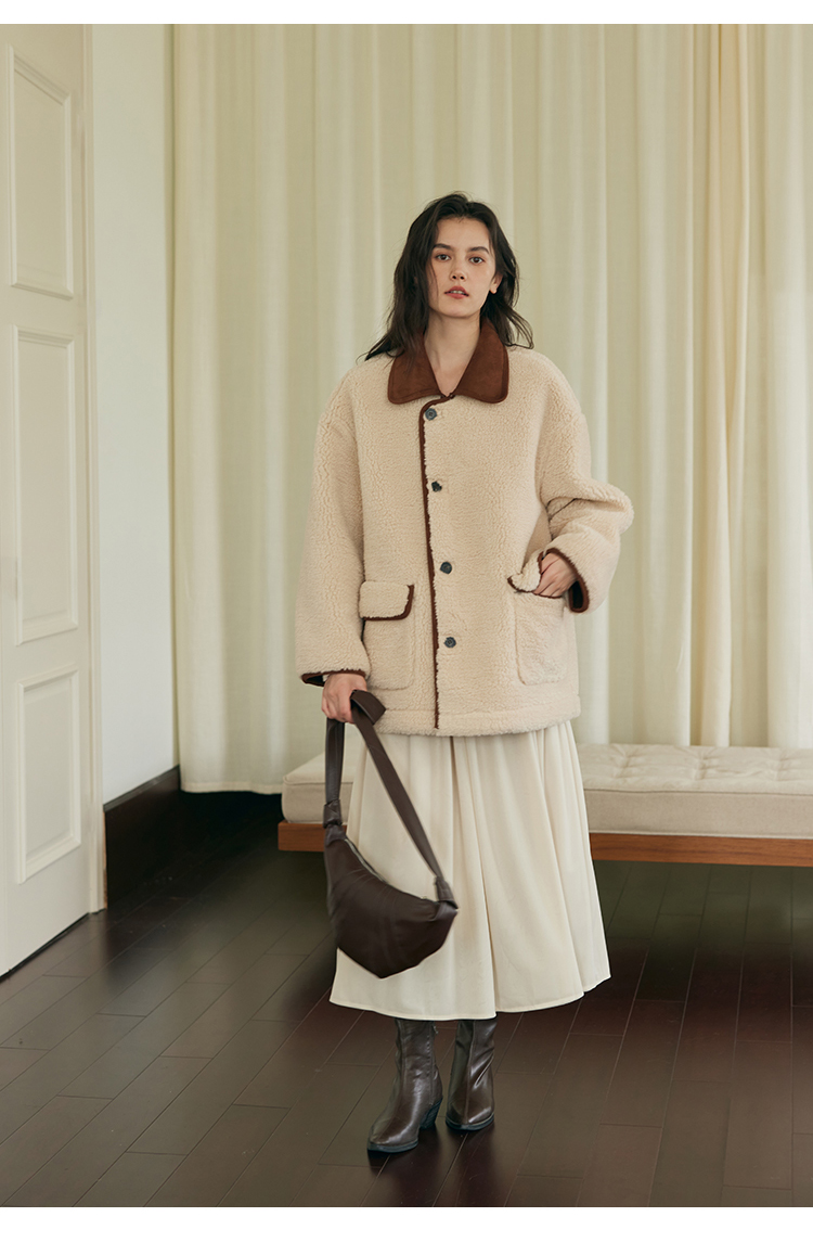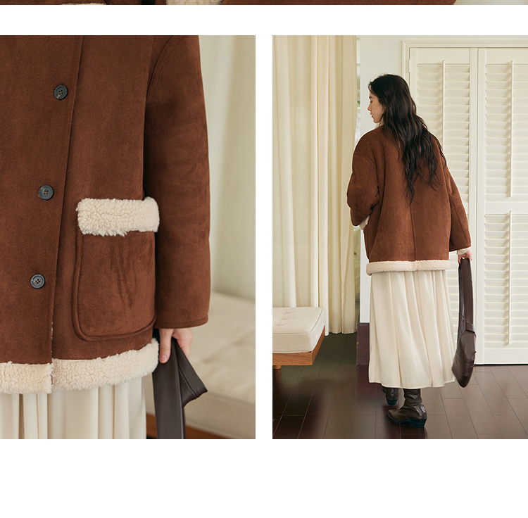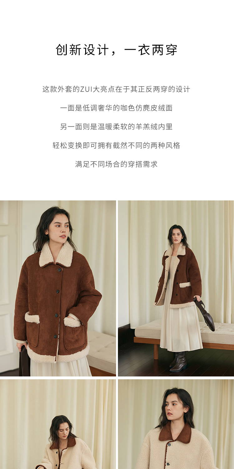 (小眠专属)HeyDress翻领皮毛一体外套女冬季复古两面穿羊羔绒加厚皮草大衣