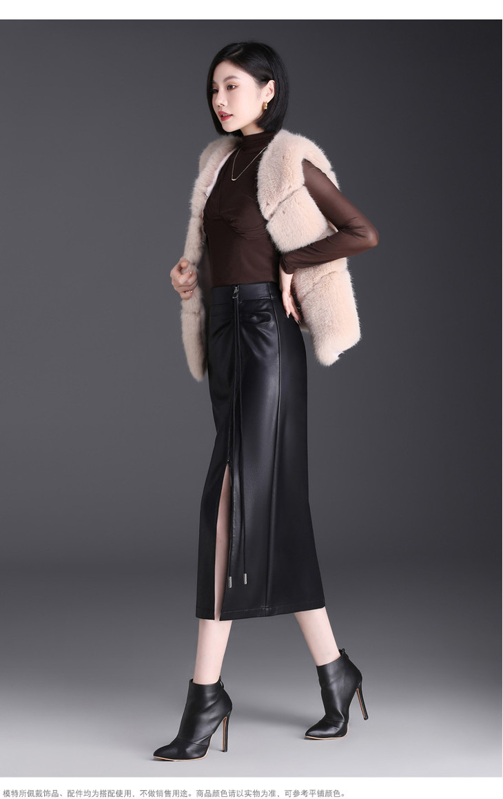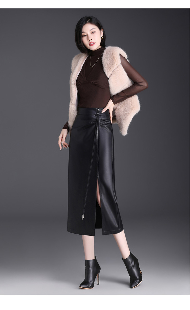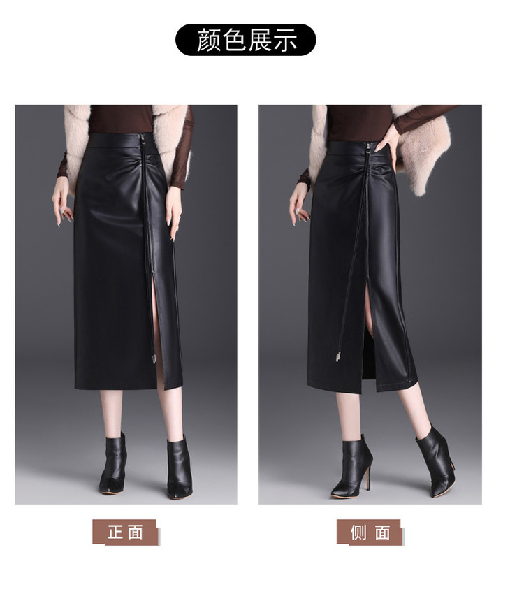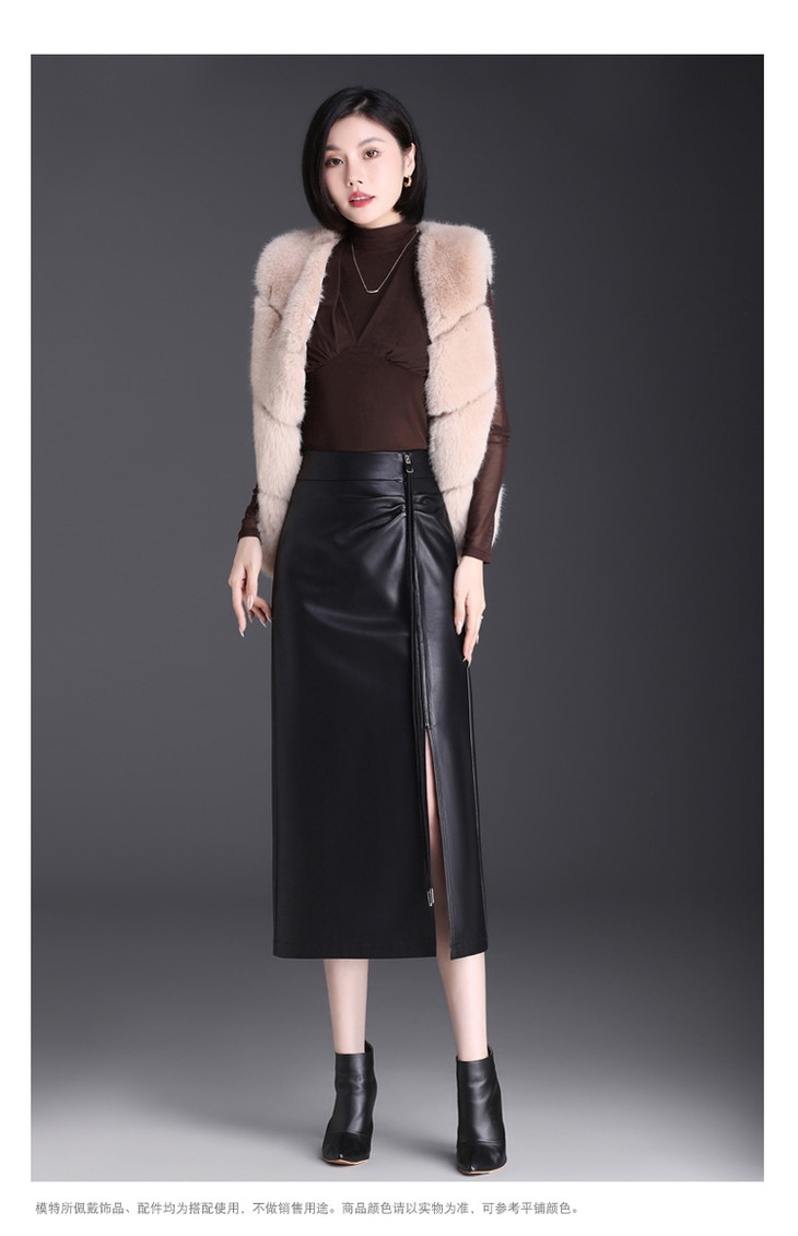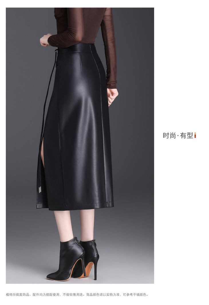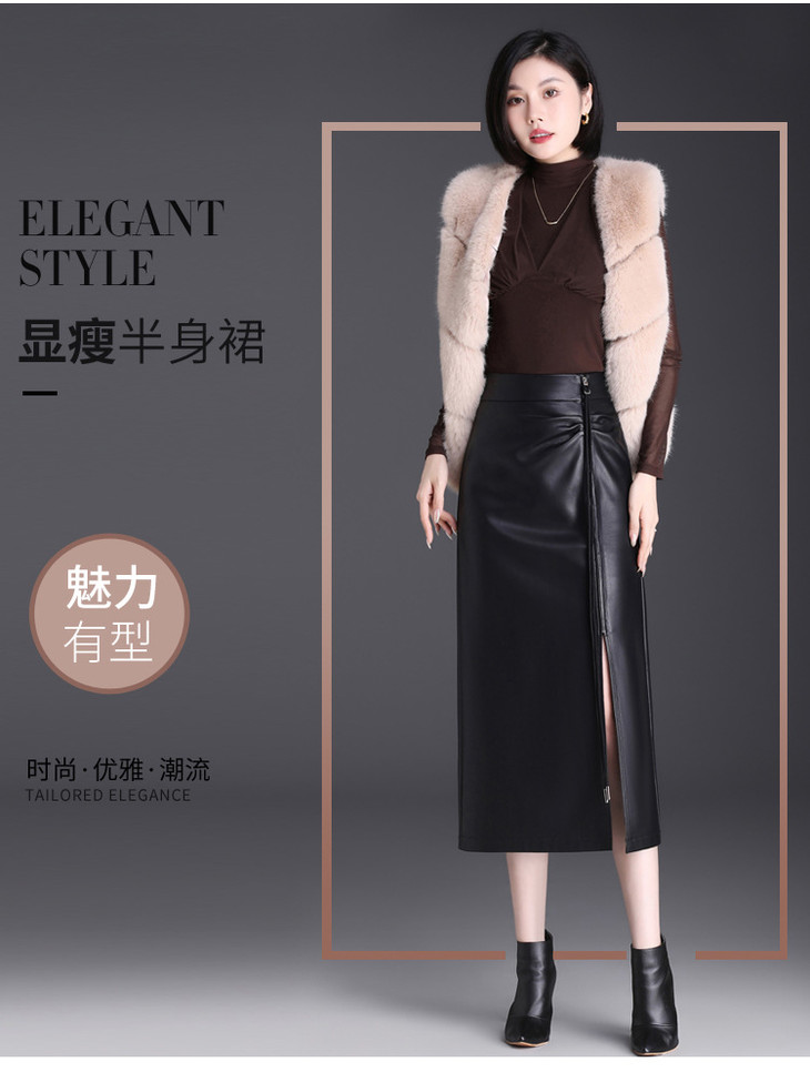 秋冬长款修身时尚包臀皮裙,高腰通勤气质侧开叉时髦半身裙MYX-99651