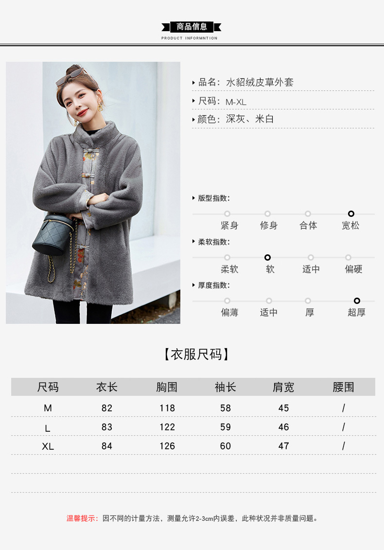 高贵妈妈冬装新款,中年女士水貂绒大衣短款中老年秋冬皮外套HR-ARE3398