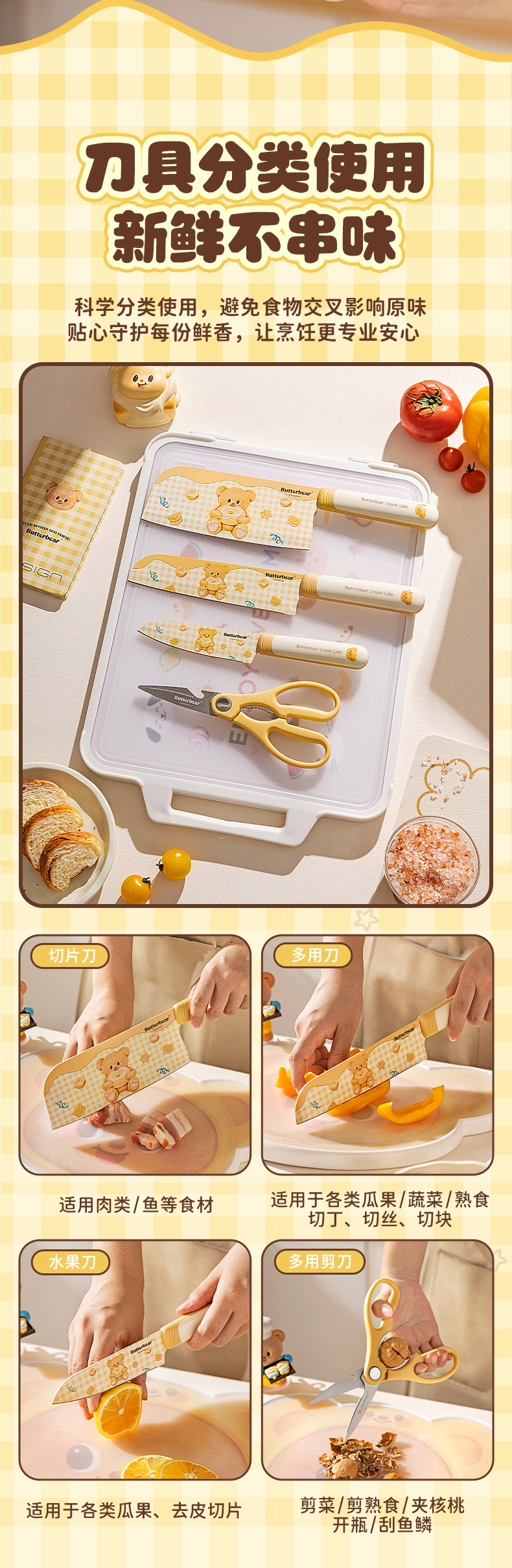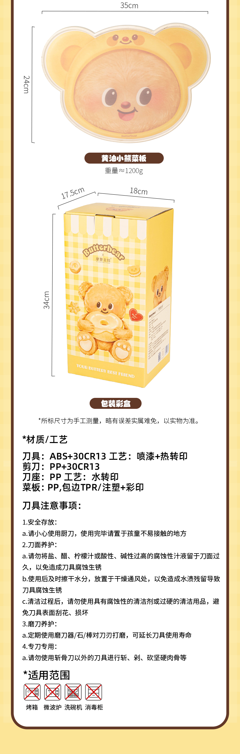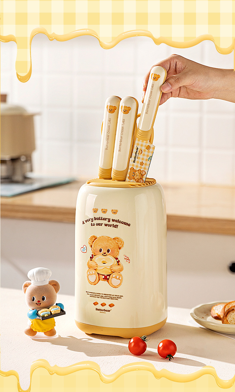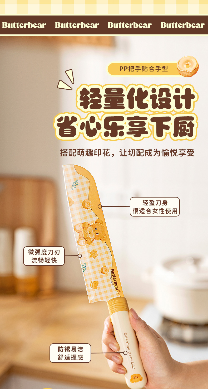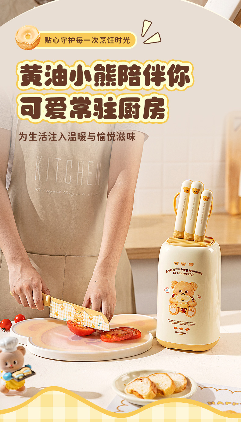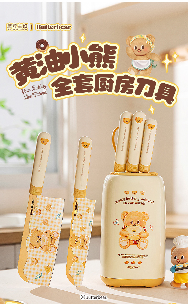 摩登主妇&黄油小熊 刀具厨房套装组合菜刀菜板二合一全套厨具