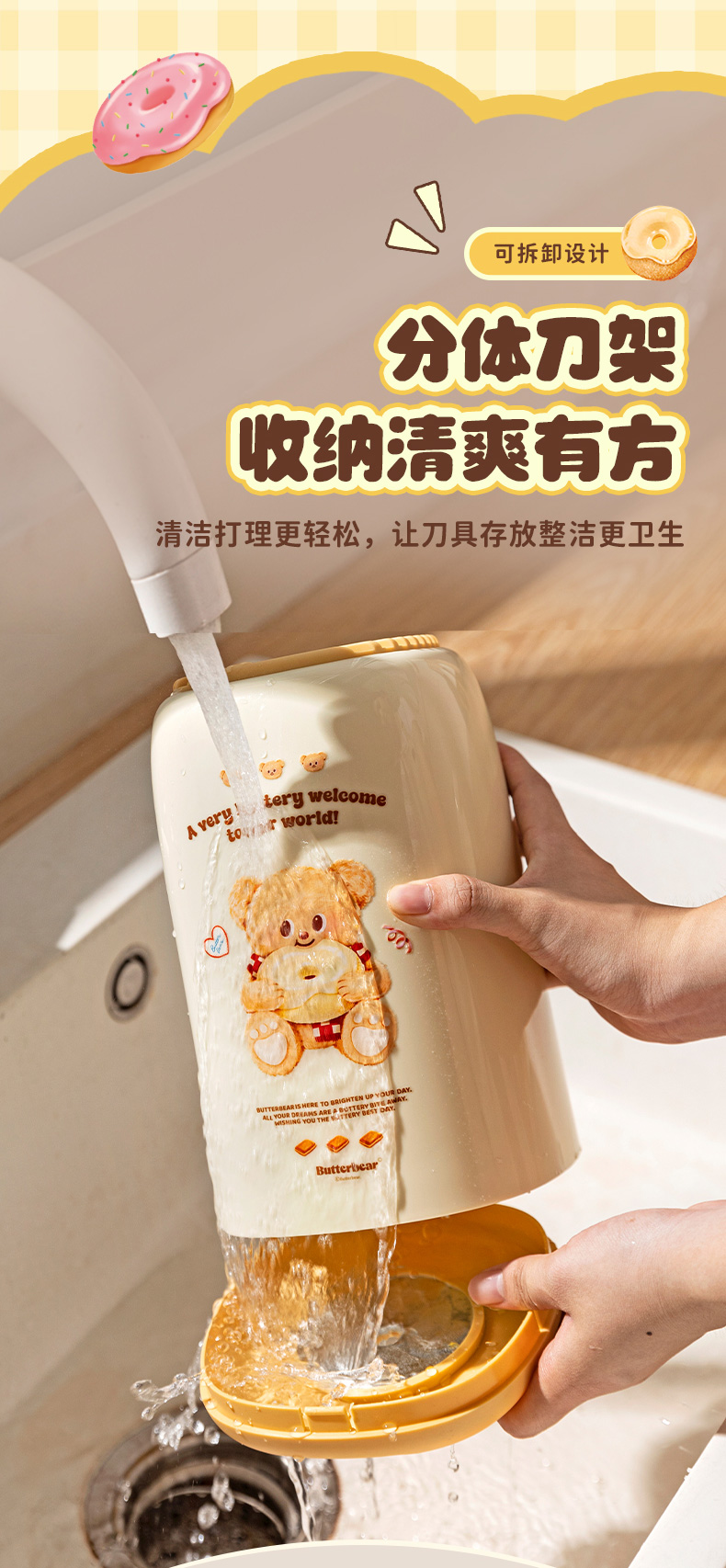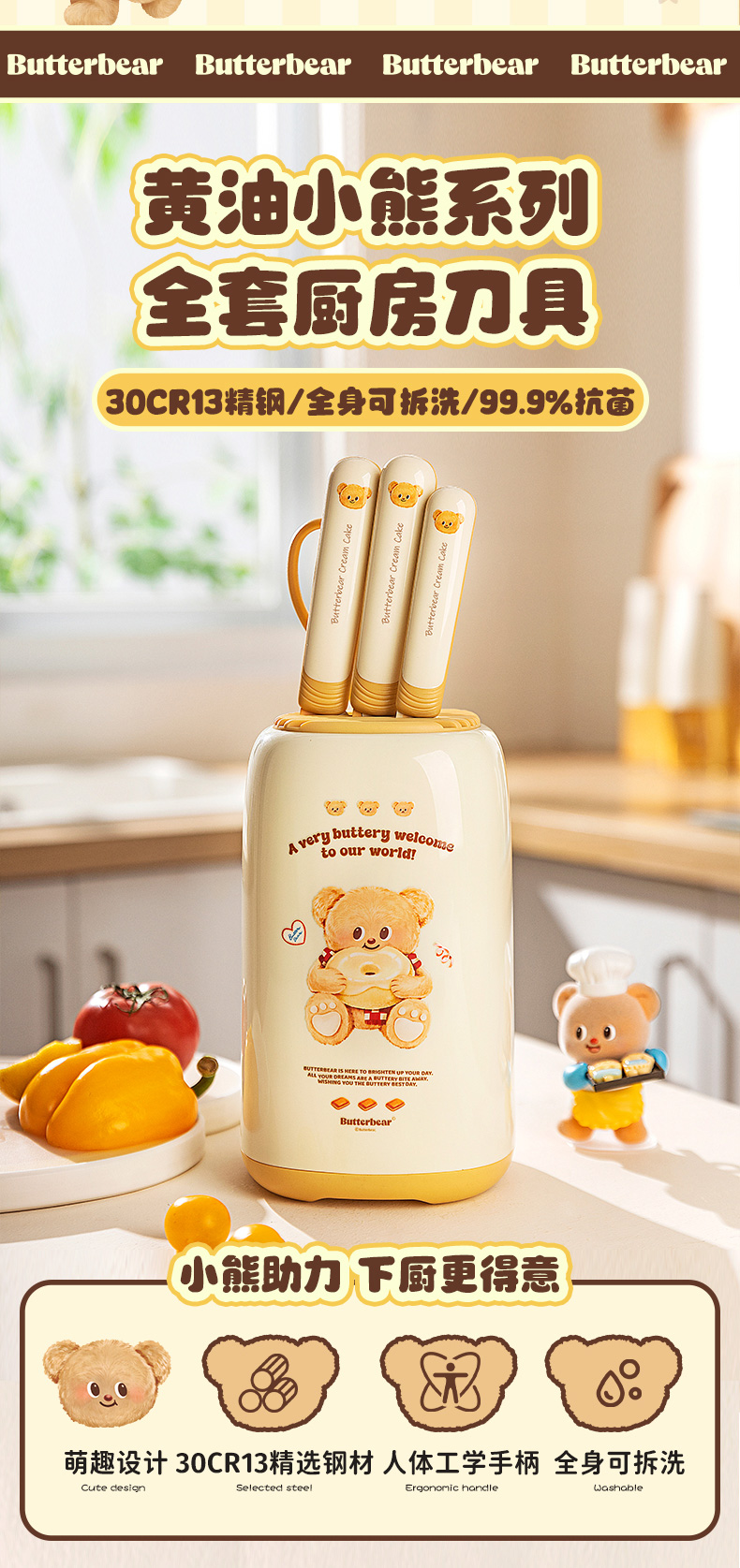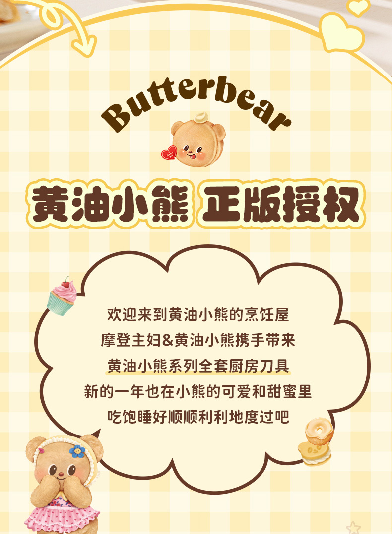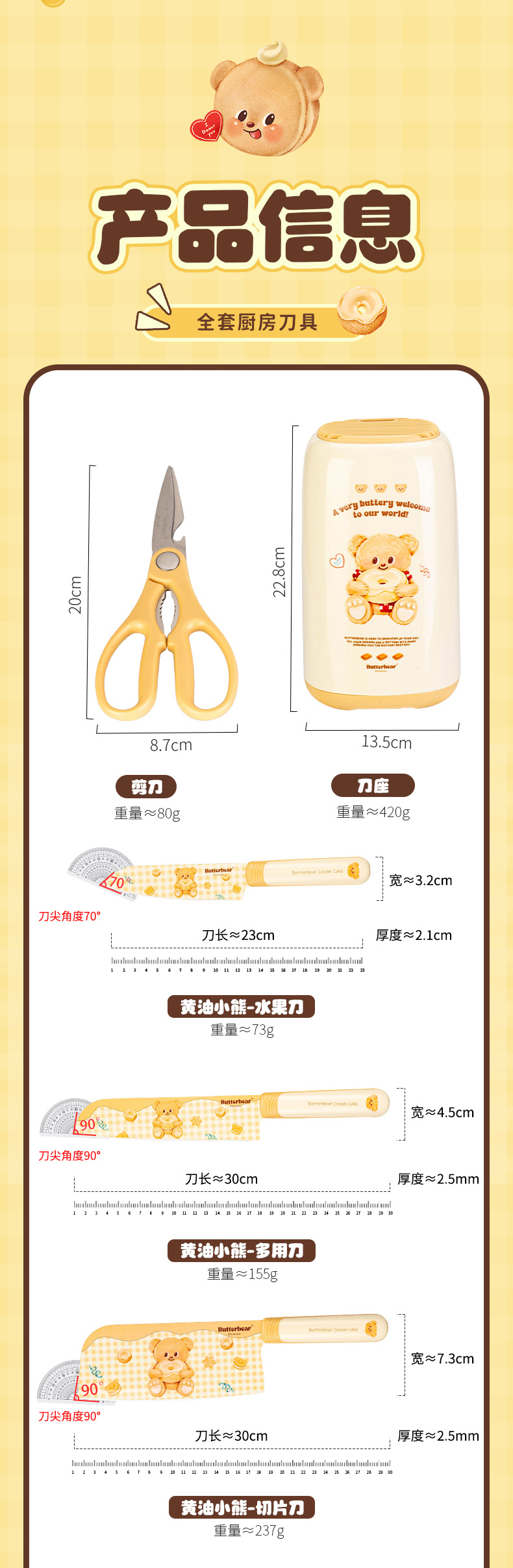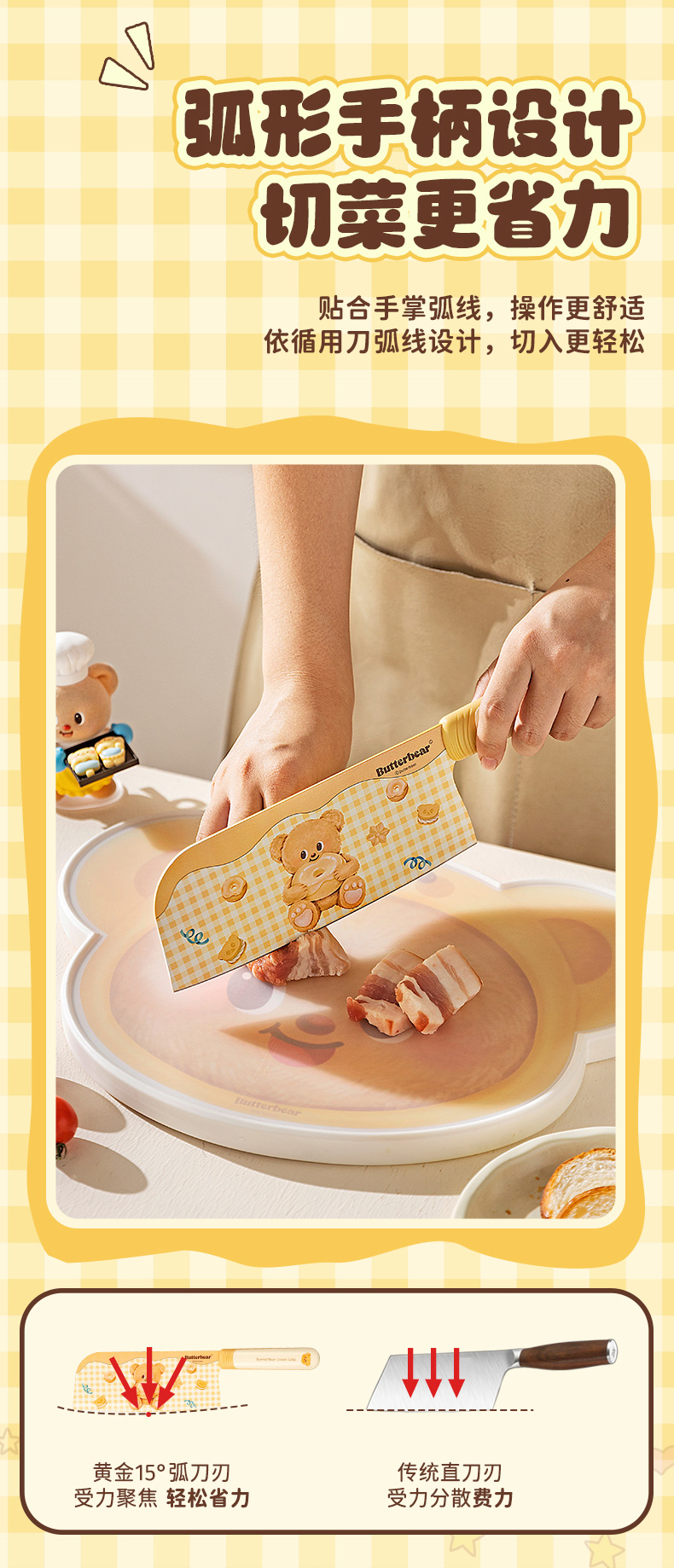 摩登主妇&黄油小熊 刀具厨房套装组合菜刀菜板二合一全套厨具