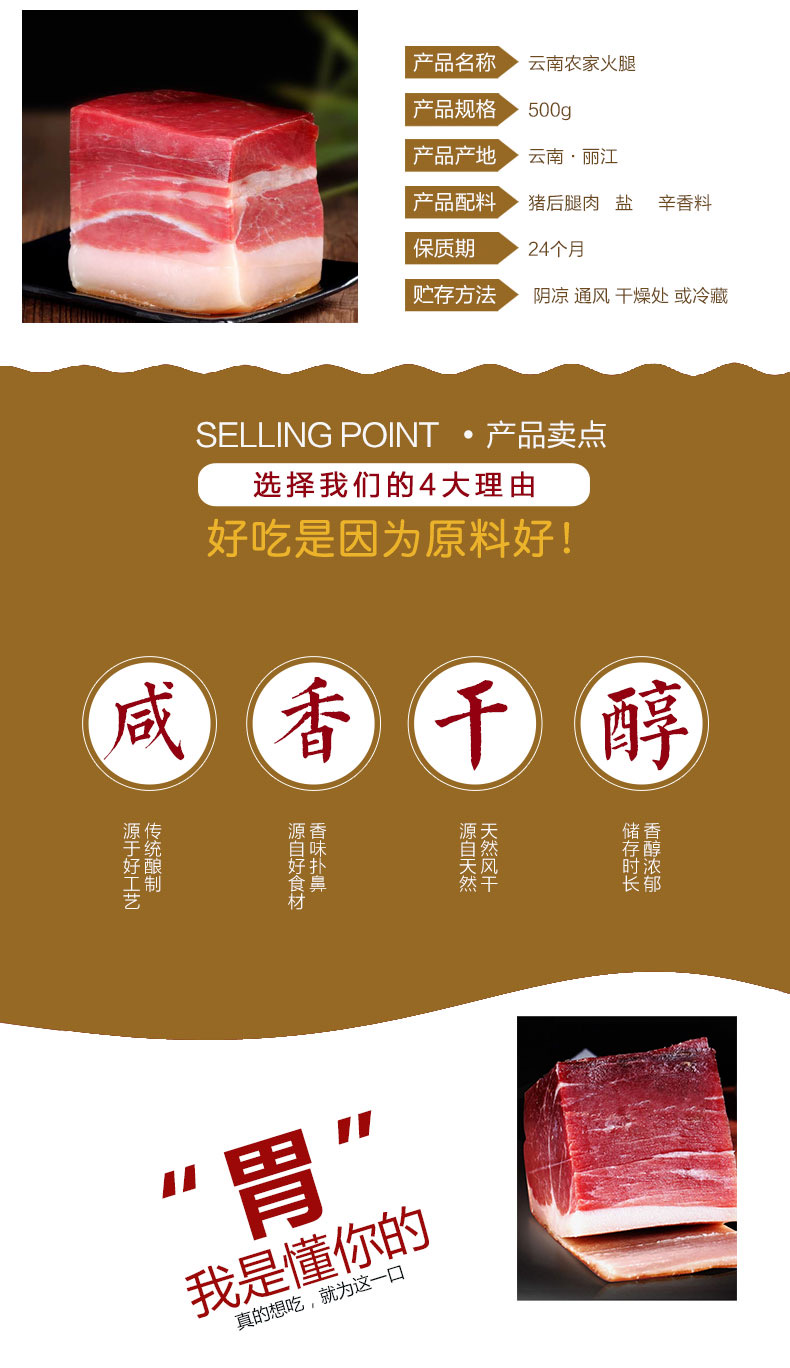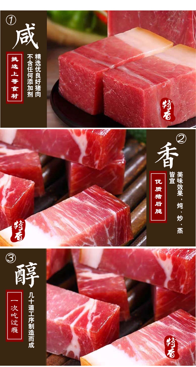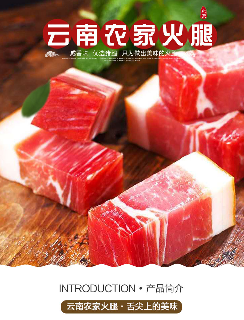 【云南正宗火腿】咸香美味 精选优质猪后腿腌制 清炒煲汤 500g/袋 2种规格任选