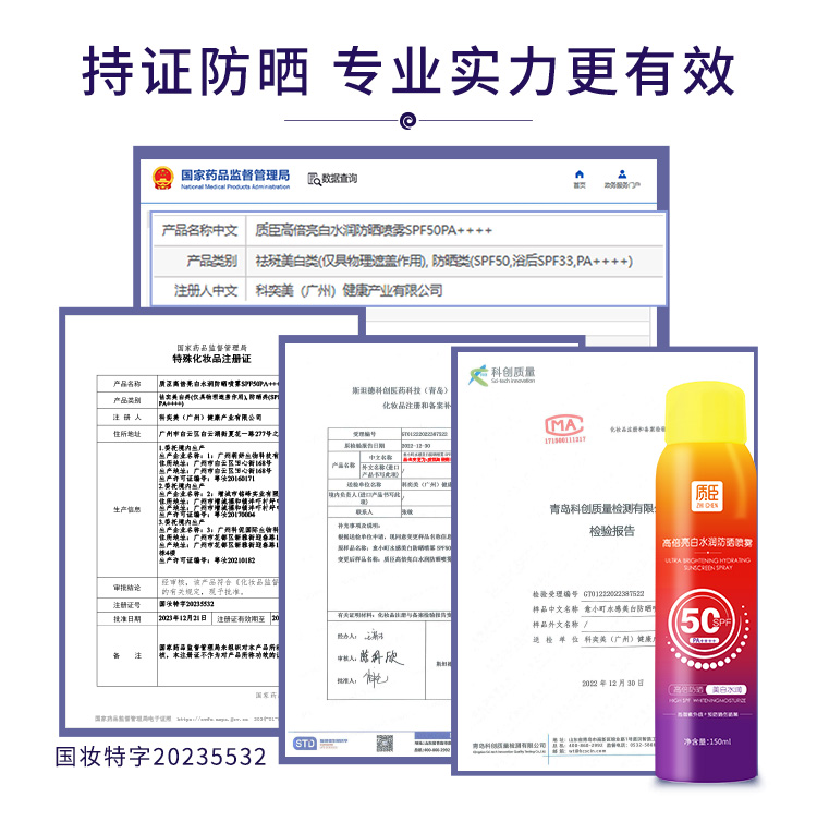 【2送1】质臣高倍亮白水润防晒喷雾SPF50PA++++【60】