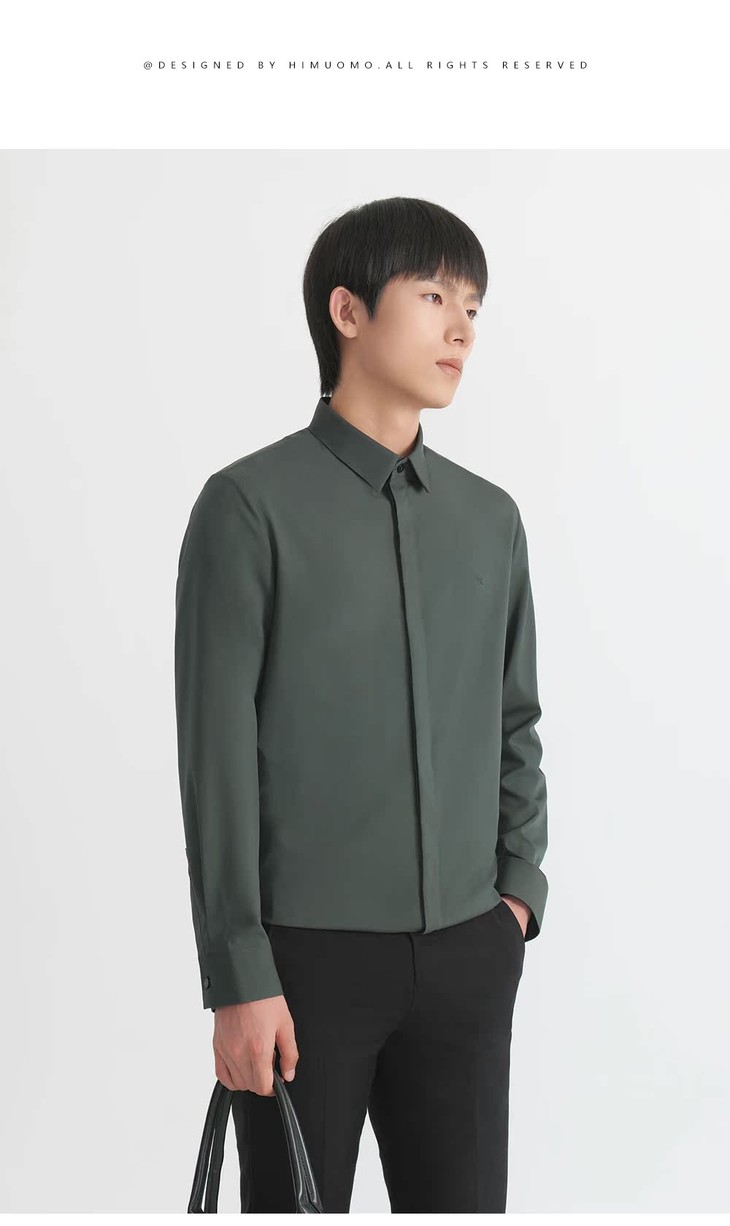 HIM漢崇 斯文方领纯色衬衫男通勤上班商务正装长袖衬衣 2025春季