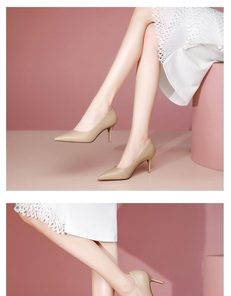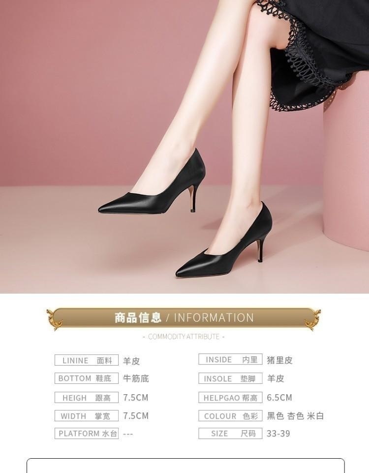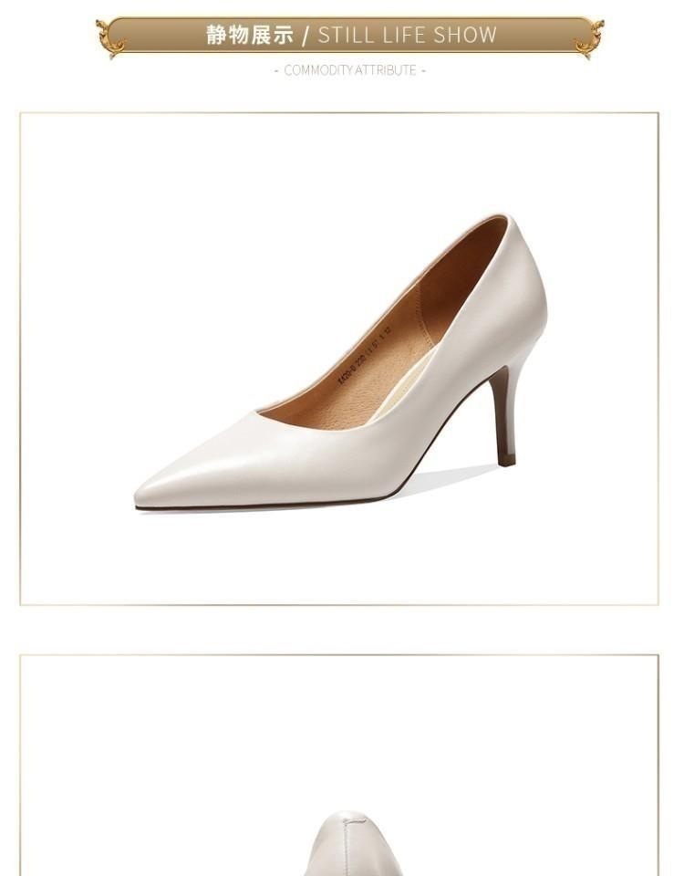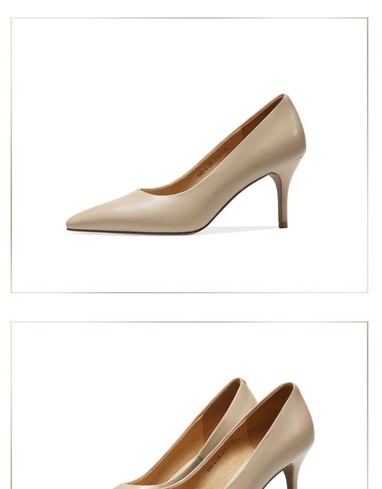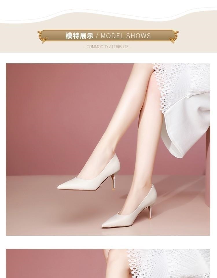 【预售5天】春季尖头单鞋女细跟浅口百搭高跟鞋米白色工作四季女鞋 OFSM&6310-Y