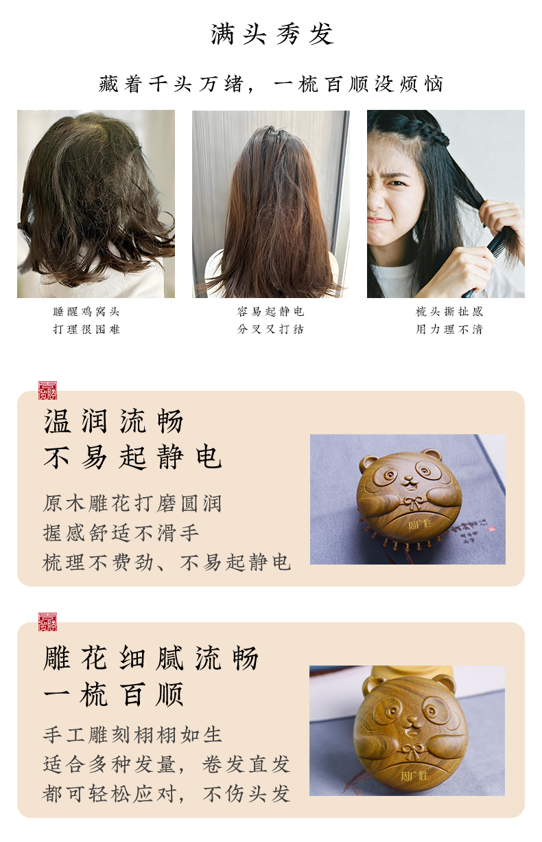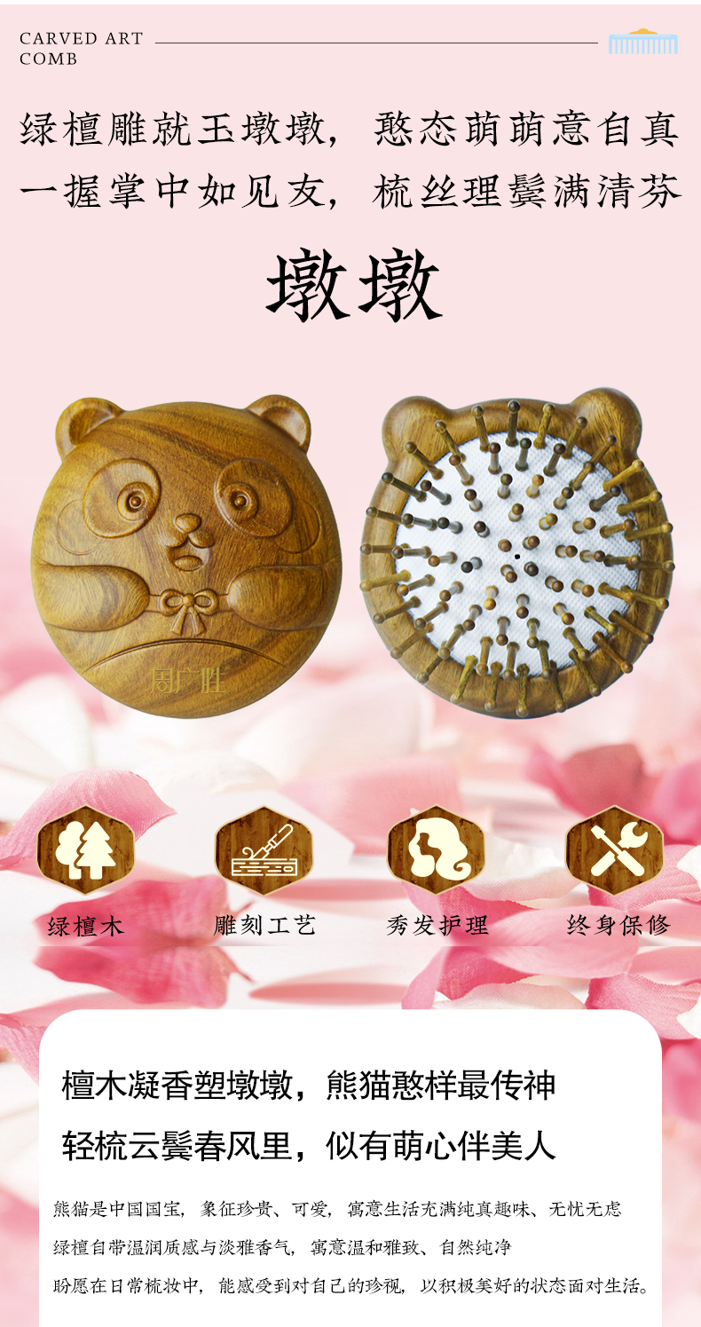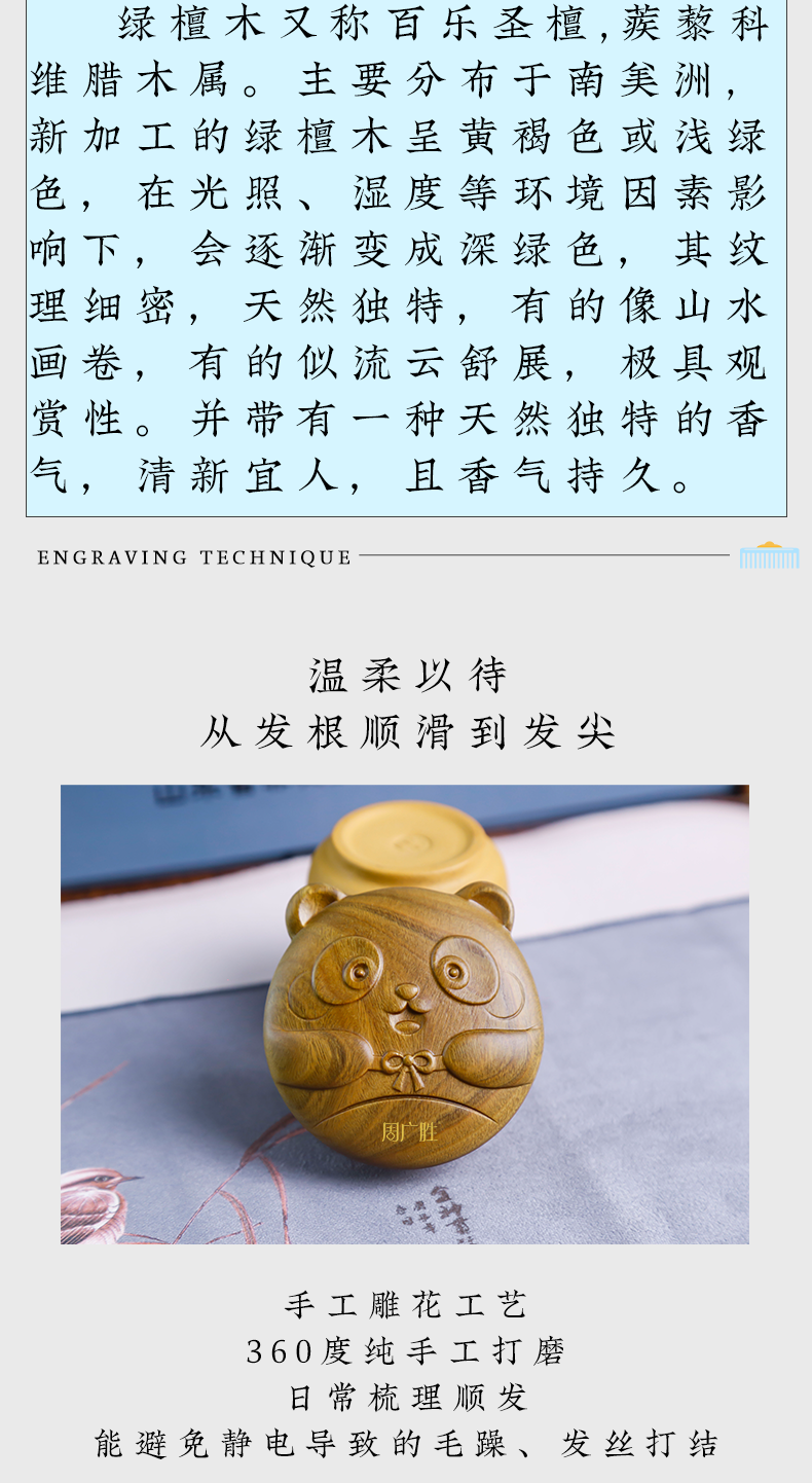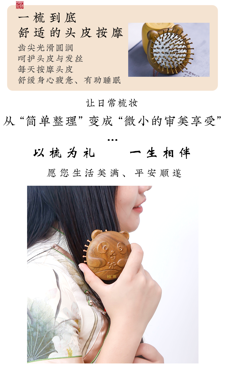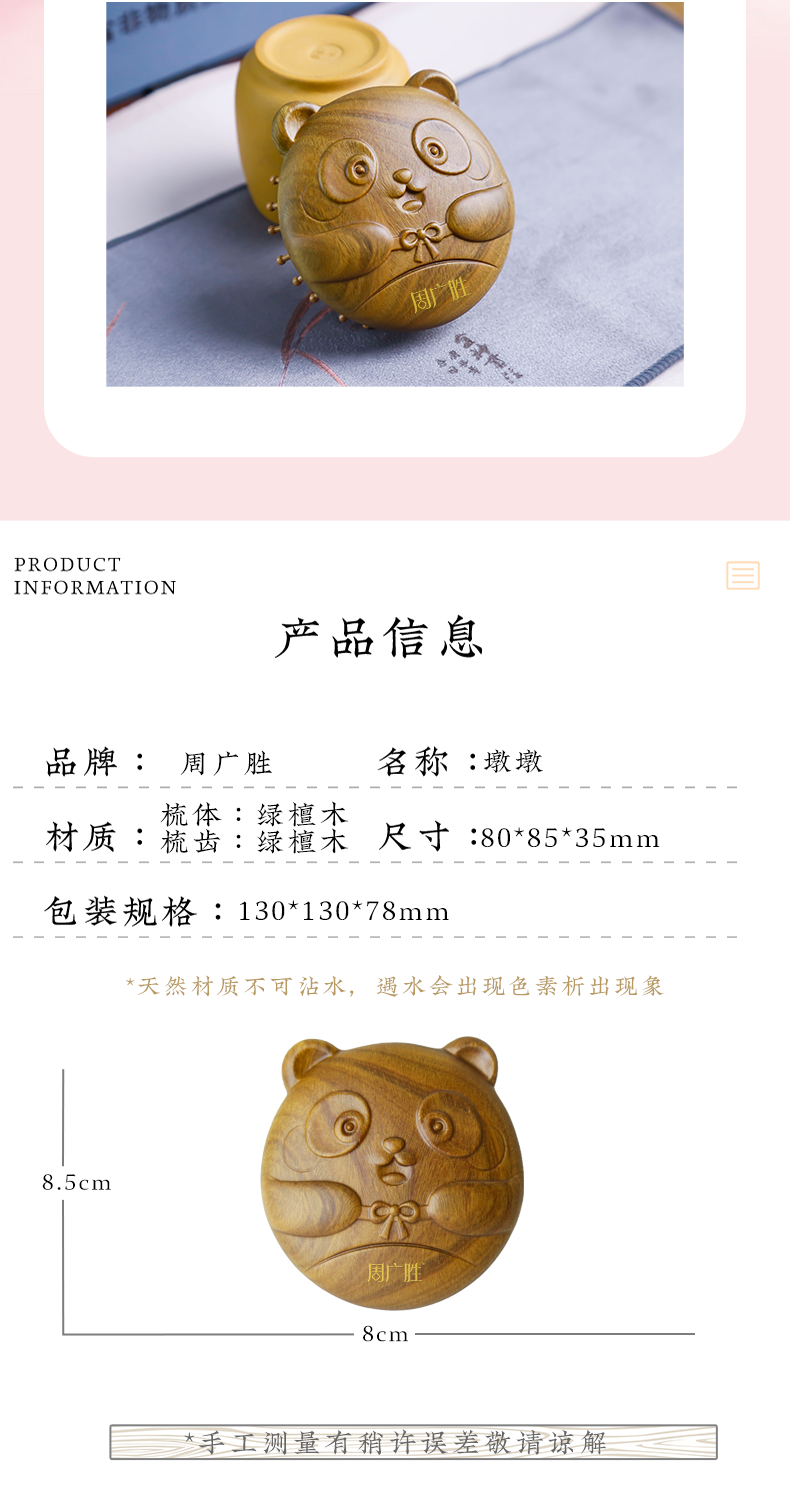 周广胜气垫按摩梳墩墩头皮经络按摩梳天然绿檀材质节日礼物