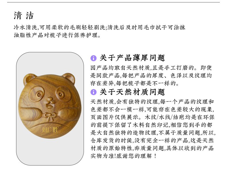 周广胜榫卯工艺合木梳个人清洁护理顺发护发女士专用头皮按摩梳